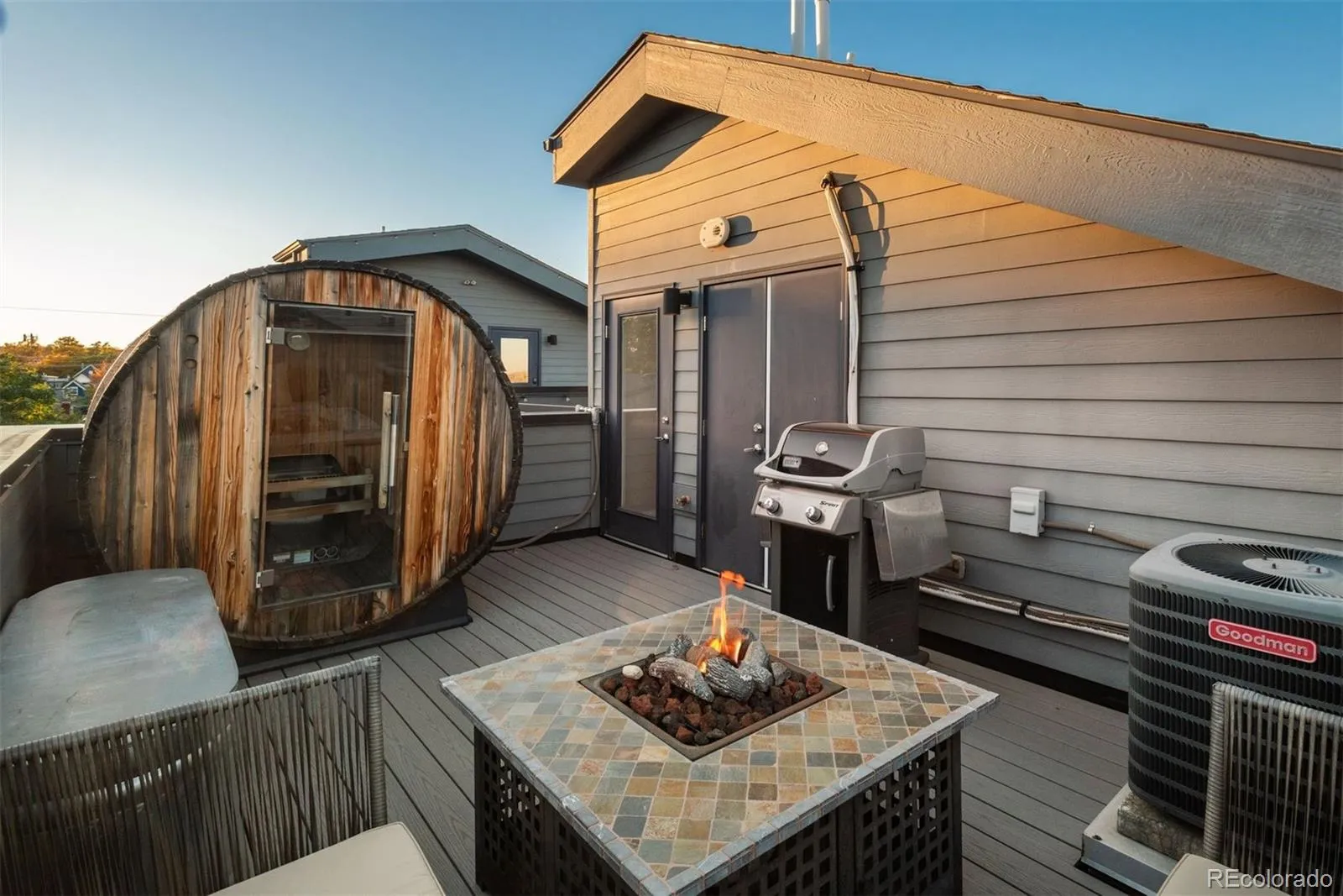 Discover Your Modern Urban Retreat in the Heart of LoHi with NO HOA! There is a party wall agreement with a monthly payment that varies, but is usually around $80 per month that covers water, trash, recycling, ground maintenance/landscaping! Welcome to this stunning, nearly new 2-bedroom, 2-bathroom townhome offering 1,197 sq. ft. of stylish living space with views of the Denver skyline and Colorado mountains! Perfectly situated in one of Denver’s most sought-after neighborhoods, this home combines modern comfort with the best of urban living. The entry-level bedroom or home office provides flexibility for guests or remote work, complete with en-suite bath. Upstairs, the open-concept main floor is an entertainer’s dream bathed in natural light and centered around a gourmet kitchen boasting quartz countertops, soft-close cabinetry, and premium stainless steel appliances (all included). The kitchen flows effortlessly into the dining and living areas, creating a bright and inviting space to relax or host. The primary suite offers a serene retreat with a spa-inspired en-suite bathroom, complete with quartz countertop, stylish tile, and a Euro-glass shower. From here, step up to the expansive Trex-Deck rooftop patio where you can take in panoramic city skyline views and enjoy Denver’s dazzling fireworks shows throughout the year. Custom rooftop sauna comes with the home! Patio features a dedicated gas line for your grill! This prime location puts you close to everything — Downtown Denver, Coors Field (1 mile), Ball Arena (1.5 miles), Empower Field (2 miles), top-rated restaurants, boutique shopping, and only a 30-minute drive to Denver International Airport. Ask listing agent about VA assumption option! Don’t miss your opportunity to own this chic, move-in-ready Highlands townhome — the perfect blend of sophistication, location, and low-maintenance living. Schedule your private showing today!