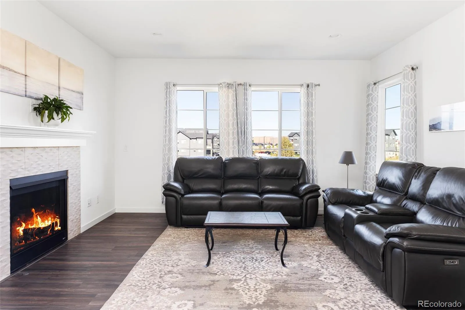 Offering enough space for the whole family, this 2019-built residence presents three distinct living areas and a coveted position backing to serene open space. Nestled at the end of a quiet cul-de-sac, the home blends modern comfort with thoughtful design. Inside, a wide foyer welcomes you into an airy open layout where new luxury laminate flooring extends throughout the main level. The living room, centered around a sleek gas fireplace, opens gracefully to a chef’s kitchen featuring a generous island, pantry, and double ovens — ideal for hosting gatherings or enjoying cozy nights in.