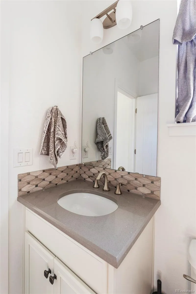 A tucked-away half bath and a large main-level office add convenience and versatility to the thoughtful floorplan. Step outside to the Trex deck — complete with patio furniture — where tranquil open space views set the stage for morning coffee or evening unwinding. Stairs lead to the fully fenced backyard and covered patio below, perfect for play or outdoor entertaining.