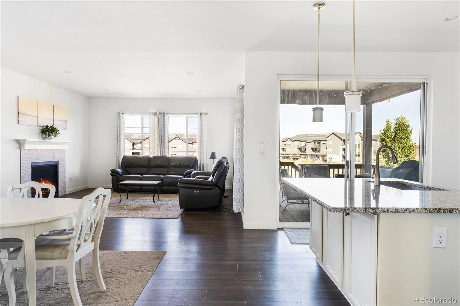 Designed with room for everyone, this 2019-built home offers three separate living spaces and an enviable setting backing directly to peaceful open space. Perfectly tucked at the end of a cul-de-sac, the property combines modern style with a layout tailored for comfortable, functional family living.A wide, welcoming foyer leads into the airy main level where new luxury laminate flooring flows throughout. The living room, anchored by a sleek gas fireplace, connects seamlessly to a chef’s kitchen equipped with a generous island, pantry, and double ovens – an ideal backdrop for family meals, holiday gatherings, and everyday moments. A tucked-away half bath and spacious main-level office amplify the home’s versatility.Step out onto the Trex deck – complete with included patio furniture – to take in calming views of the open space behind the home. Stairs lead down to the fully fenced backyard and covered patio, creating the perfect setup for playtime, outdoor dining, or relaxed evenings under Colorado skies.Upstairs, four bright bedrooms and three full bathrooms offer ample personal space, complemented by a large loft suited for homework, gaming, or a secondary lounge. A centrally located laundry room adds convenience to the day-to-day routine.The fully finished walkout basement expands the home’s possibilities even further with a conforming bedroom, full bath, and spacious recreation area – a true third living space ideal for guests, hobbies, fitness, or movie nights.Additional features include a three-car tandem garage, a newer roof installed in 2023, and owned solar panels for improved efficiency and long-term savings. Set in a secluded, no-through-traffic location yet minutes from Erie’s parks, trails, and vibrant amenities, this residence is the perfect blend of modern elegance, family-friendly design, and exceptional outdoor connectivity.