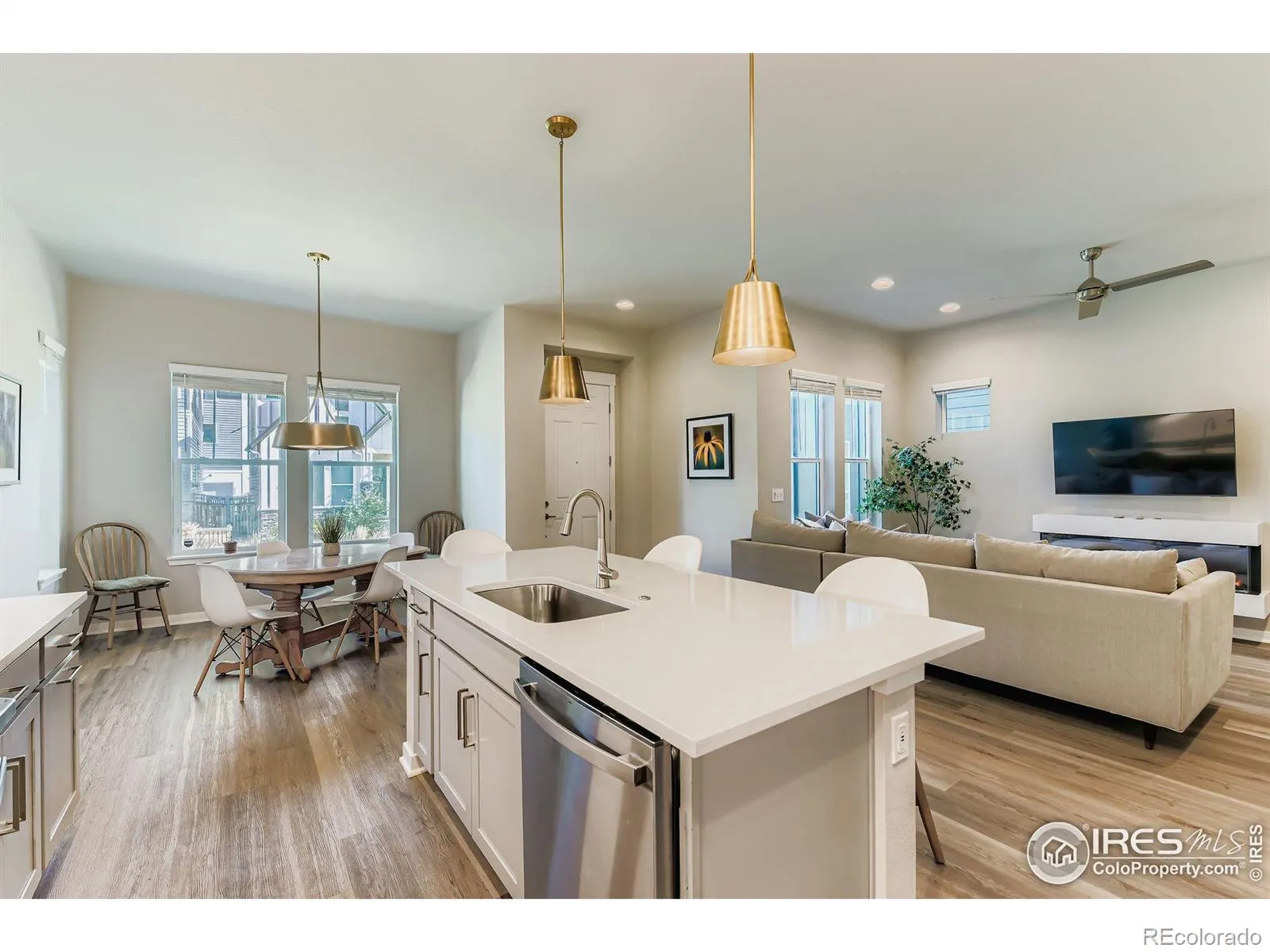 Receive up to $24,543 in Down Payment & Closing Costs Assistance! – Located in the vibrant, sustainability-focused Baseline community, this stunning 3-bedroom, 4-bathroom, 2-car attached garage – urban contemporary home offers the perfect blend of style, comfort, and functionality. Inside, you’ll find a bright and airy open-concept layout with soaring ceilings and luxury vinyl plank flooring throughout. The gourmet kitchen is a chef’s dream, featuring a gas range, quartz countertops, a spacious pantry, and a large island that flows seamlessly into the dining and living areas-perfect for entertaining or relaxing at home. A floating fireplace mantel adds a warm, modern touch. Upstairs, discover three spacious bedrooms with built-in closet shelving and a convenient laundry room. The primary suite offers a serene retreat with a rainfall showerhead, dual vanities, and abundant natural light. The second full bathroom also features dual vanities, while two additional half baths serve the main and upper levels for added convenience. The bonus room on the third floor opens to a private rooftop balcony-ideal for enjoying Colorado’s beautiful sunsets or creating a home office, gym, or guest suite tailored to your lifestyle. With energy-efficient design, pollinator-friendly landscaping, and a walkable layout, this home offers modern living with a conscience. Plus, easy access to Denver, Boulder, DIA, and top-rated local schools. This home is just steps from scenic parks and walking trails, you’ll love the neighborhood’s green spaces and future-forward vision-Rally Park, opening in 2026, will add even more amenities, including sport courts, a climbing wall, and picnic areas.