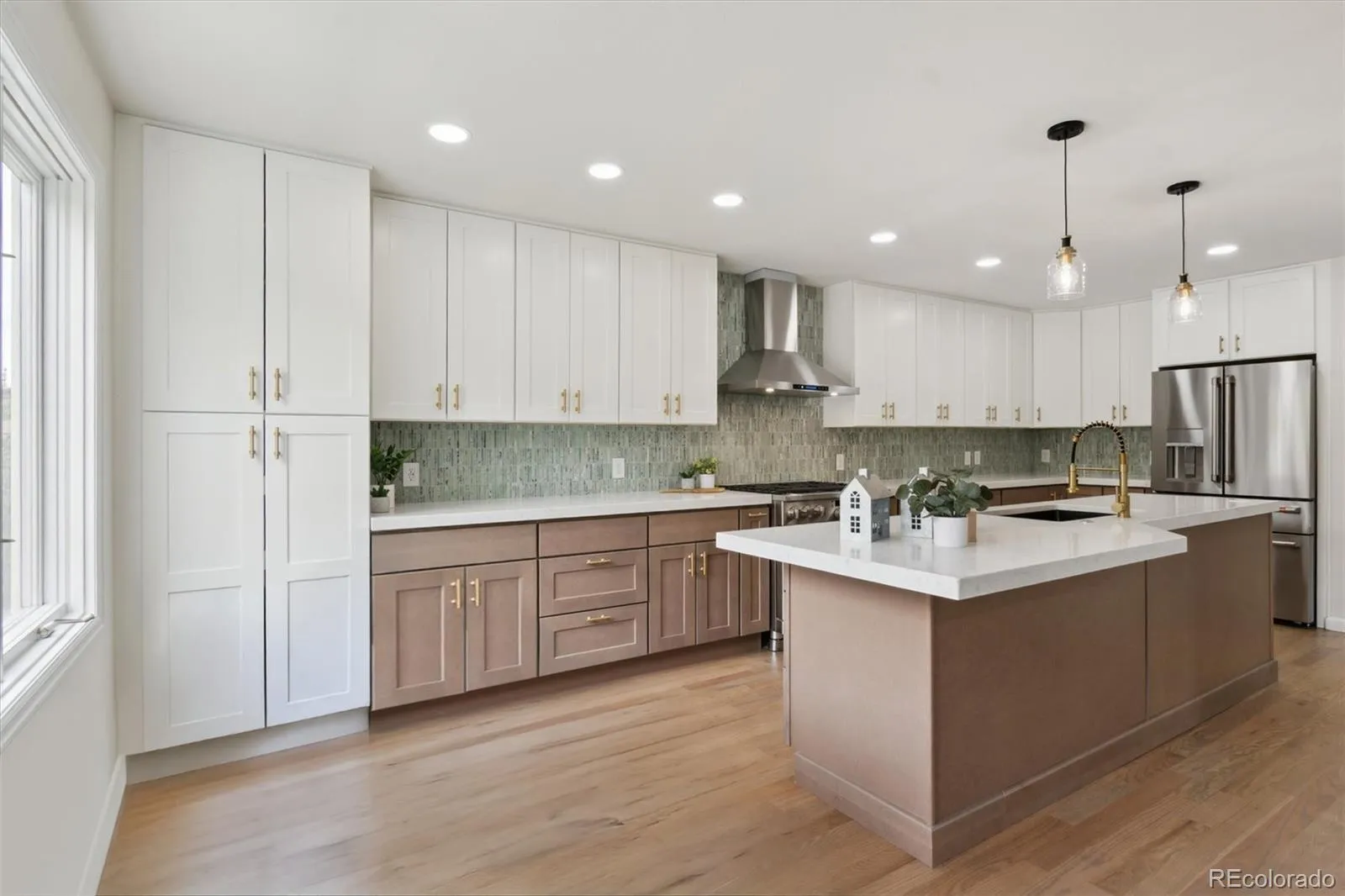Step inside to an open-concept main level featuring soaring vaulted ceilings, designer fixtures and finishes, gleaming refinished hardwood floors, and a stunning quartz-clad fireplace that anchors the living space with warmth and sophistication.