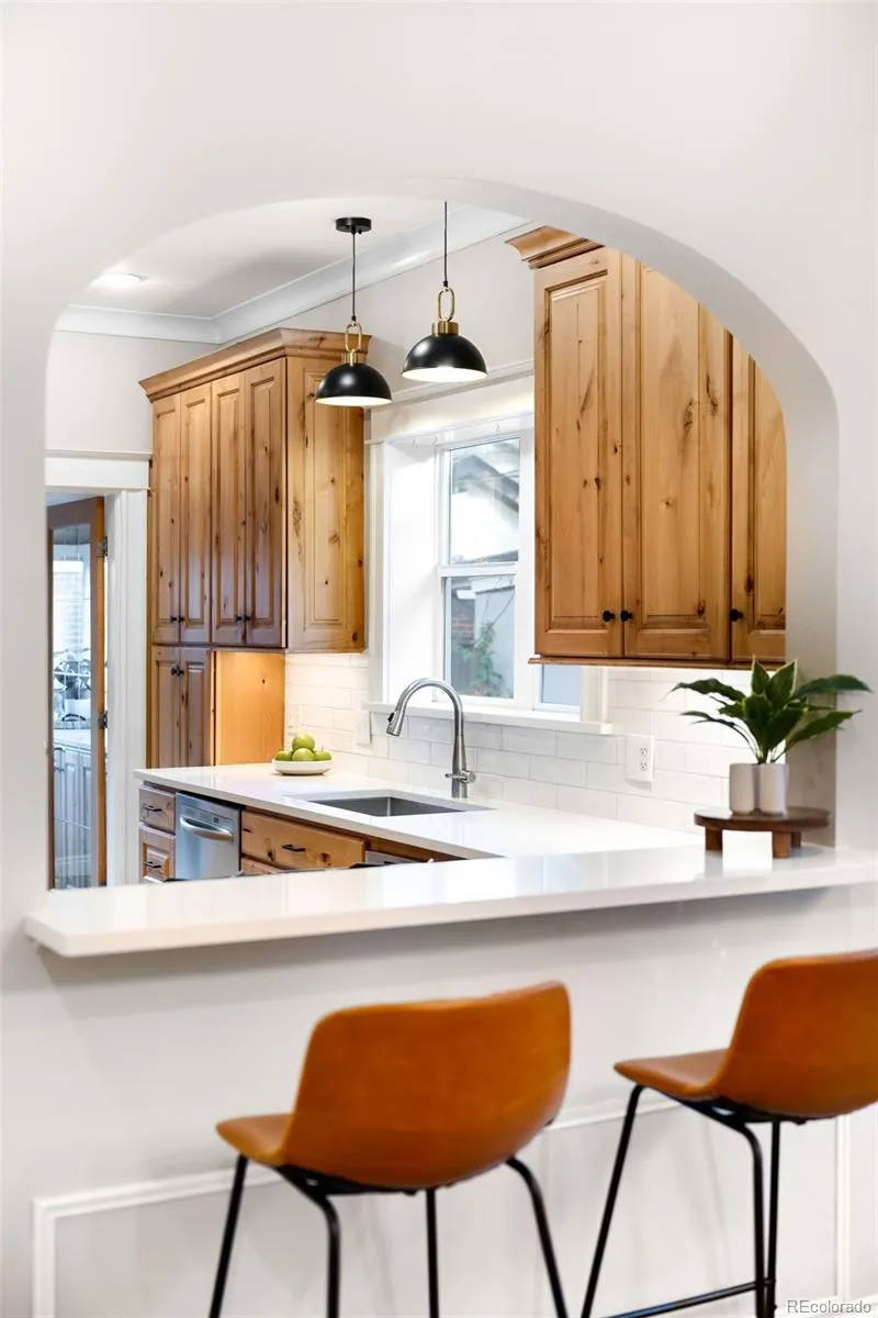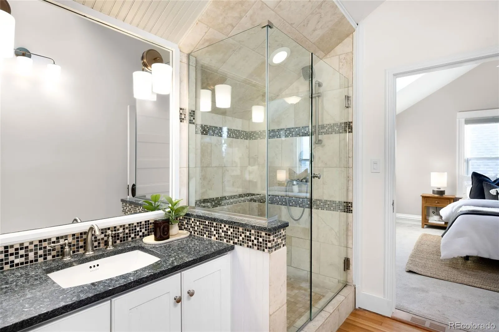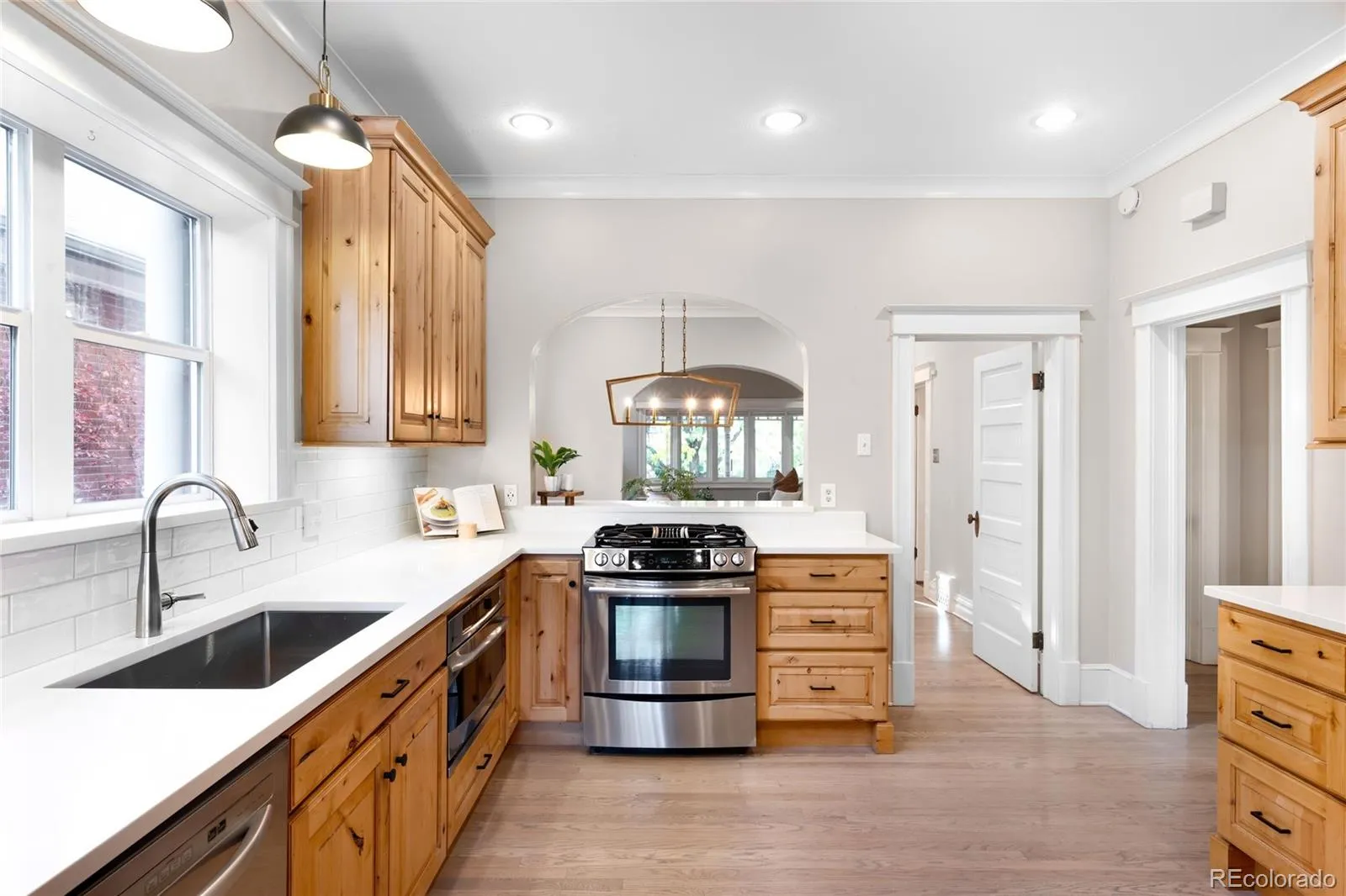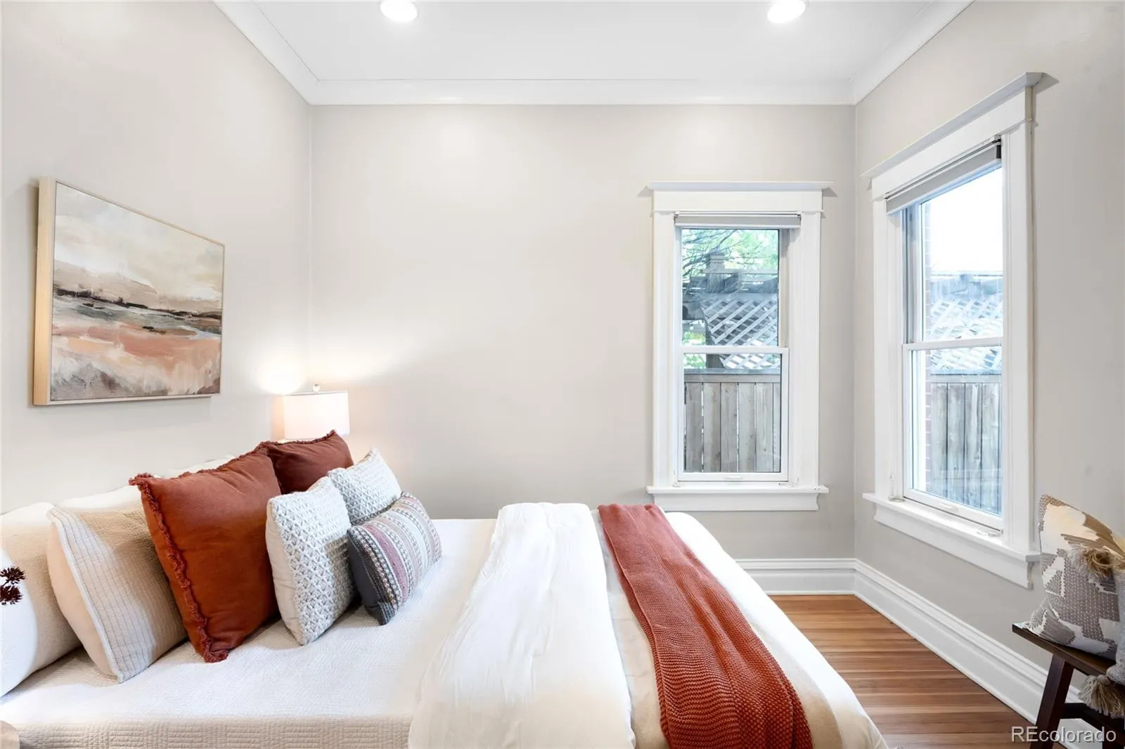 Caution! Your Wash Park home search may end here. Steeped in an enviable locale 3 blocks from Wash Park on a quiet street, this two-story residence is defined by its open floorplan, historic Victorian charm and modern updates. Stunning curb appeal invites residents from the sprawling front porch into the spacious entryway with original Victorian staircase and stained glass windows. Arched doorways, hardwood floors, a cozy fireplace and bay windows are some of the small details that make this house a home. Entertain in the sunlight-drenched and recently updated kitchen that showcases soft-close cabinets, quartz countertops, new tile, a gas range, seating and ample storage. The adjacent dining space is beaming with natural light, a statement light fixture and easily seats 6+. Two spacious bedrooms (both with walk-in closets) and an updated full bath round out the perfect floorplan. A collection of expansive south-facing windows and seamless connectivity to the back patio summons in natural light that illuminates the communal area. The outdoor space is an entertainer’s dream during every season with multiple seating/entertaining areas including a new pergola with bistro lighting, flagstone patio and a fully fenced yard. Back inside the home, you can retreat to the primary oasis upstairs that showcases vaulted ceilings, a California closet system and en-suite bath. An additional bedroom on the level presents chic styling and the loft area has custom built-ins. Revel in the convenience of a large basement that hosts a secondary living or flex space, laundry area with new cabinets and storage galore. Enjoy easy living on a quiet, non-thorough street in Wash Park with a two-car garage, fresh paint, automatic irrigation + drip system, mature trees, extensive outdoor lighting, newer roof and annual plants & flowers all throughout the property. A rare opportunity awaits.