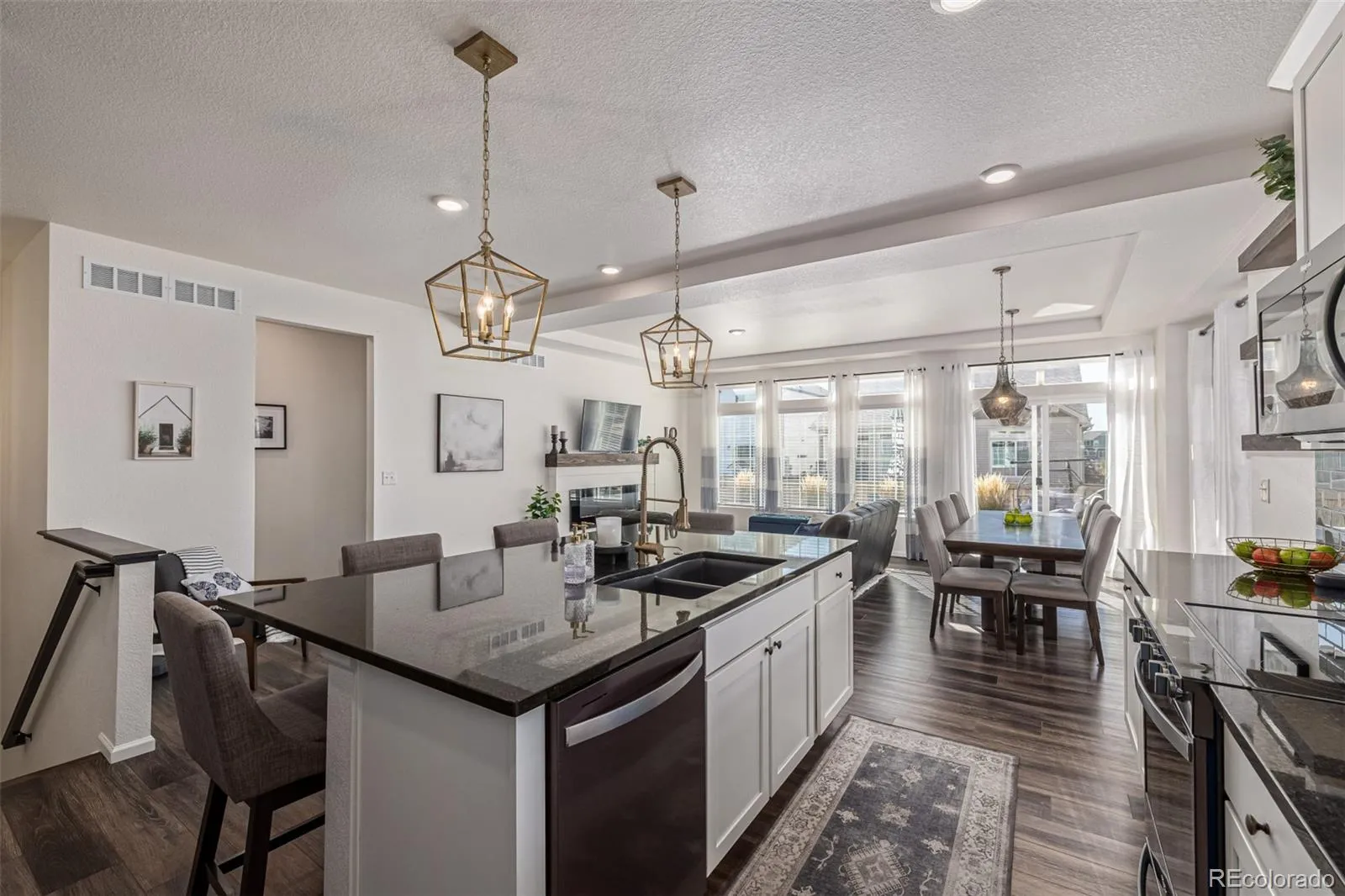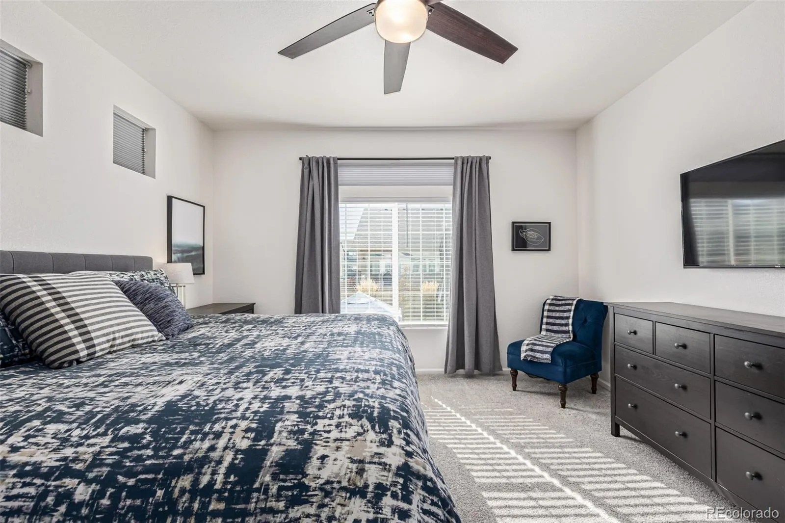 Best Value!!!! Stunning ranch floorplan situated next to a greenbelt. This is main level living at it’s best. Featuring 4 bedrooms and 3 bathrooms this home has enough space for guests, entertaining and enjoying all that Colorado has to offer! Highly upgraded chefs’ style kitchen that includes an oversized kitchen island, black stainless steel appliances, soft close cabinets and upgraded flooring. The expansive great room has an electric fireplace and has an open layout concept. The owners’ suite features a spa style en-suite bathroom with a huge walk in closet. Laundry is conveniently located next to the guest bedroom and full bathroom. the basement is finished featuring 2 additional bedrooms, large living room and a guest bathroom. Additional features include an oversized garage, whole house humidifier, EV-pre wire, large solar array and your back yard oasis with oversized patio. Located in amenity rich Reunion you will enjoy a clubhouse, pool, parks, trails, fitness center and coffee shop. Close to E-470, Buffalo Run golf course, Shopping and dining. This home truly has it all! Set your showing today!