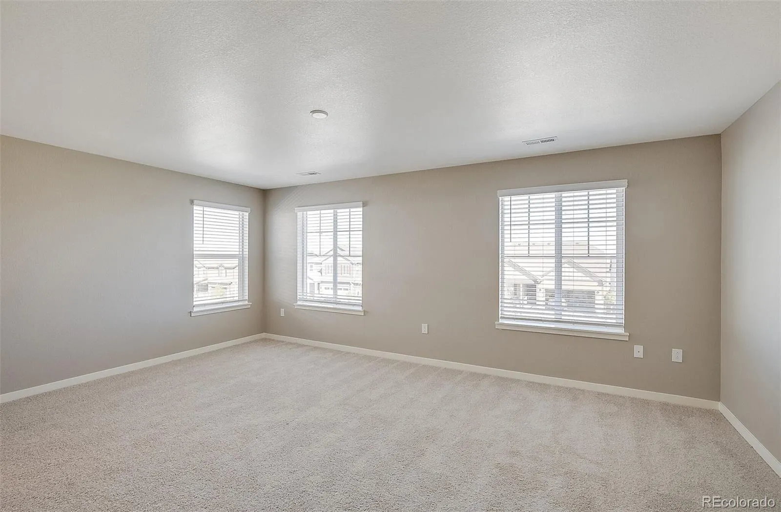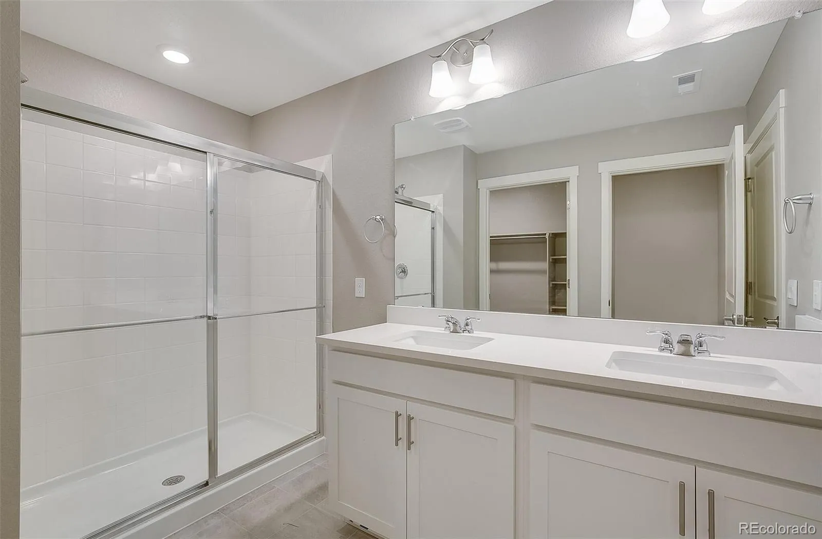 Upstairs, you’ll find all four bedrooms along with a convenient laundry room. The primary suite is a true retreat, offering a large bedroom, an ensuite bathroom with dual vanity sinks, a private water closet, a stand-up shower, and a spacious walk-in closet. Bedrooms two and three share a full bathroom with a tub-shower combination, and bedroom four offers flexibility for a guest room, workout space, or additional home office.