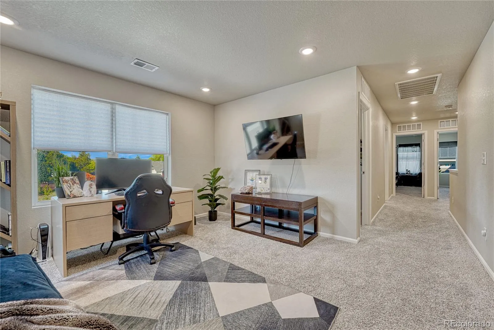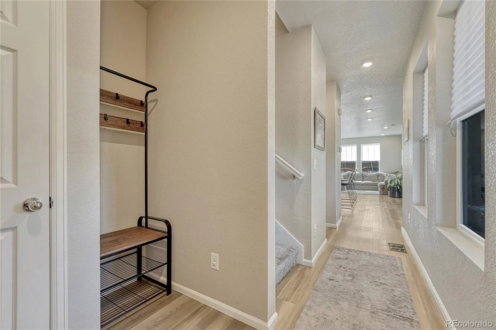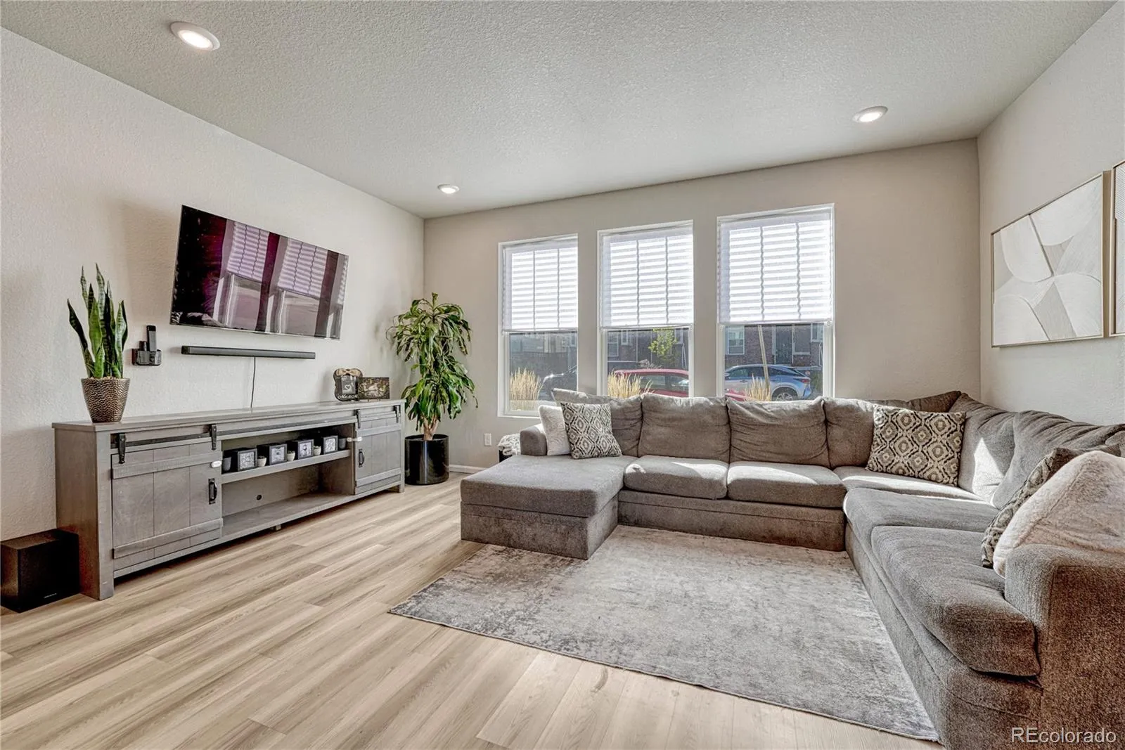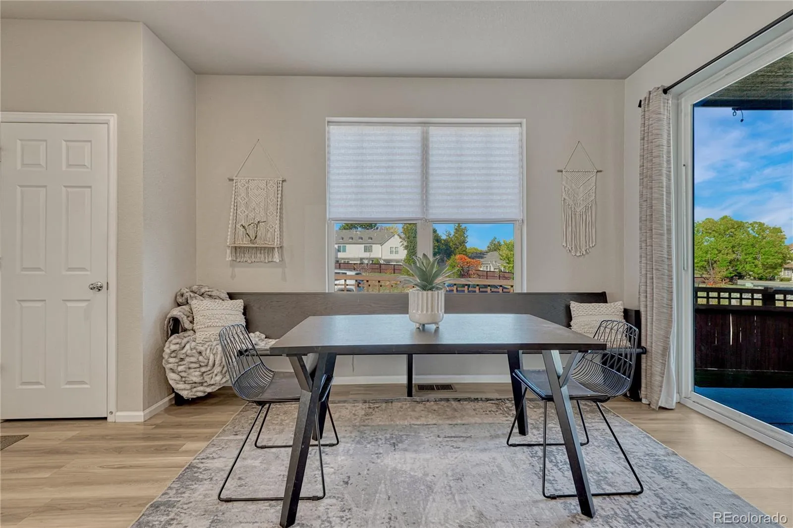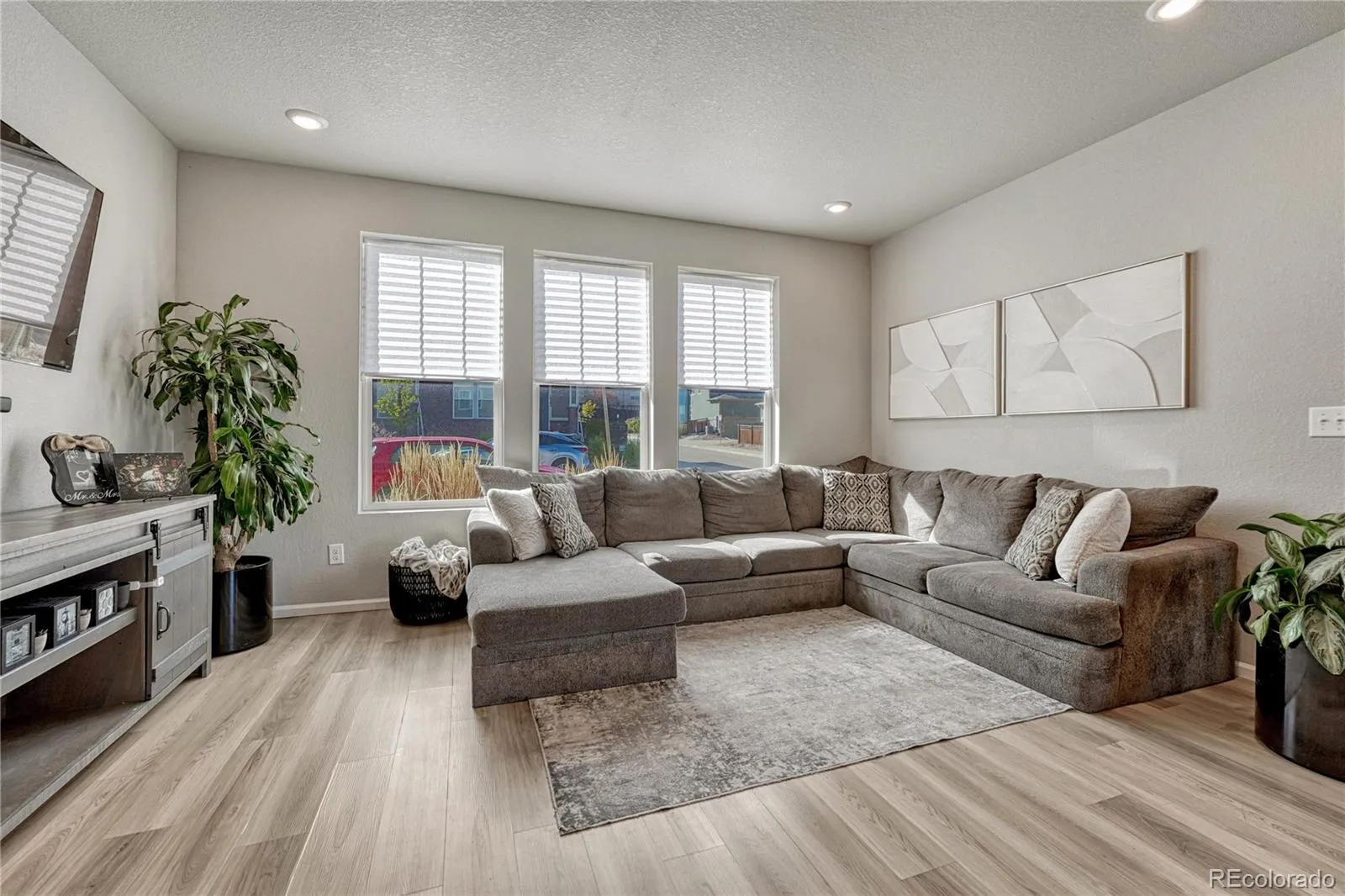 Nestled on a premium end-unit corner lot, this nearly new 2021 energy efficient paired home offers an ideal location, abundant natural light, and low-maintenance living. Tall ceilings, big windows, and an open-concept main level create a bright and welcoming atmosphere from the moment you step inside. Enjoy the benefits of the energy efficient building components and the cost saving feature of seller owned solar panels. WOW! A huge saving going forward! The spacious living room flows to a dedicated dining area and a beautifully upgraded kitchen featuring stainless steel appliances including a gas range, plus a large center island with bar seating for casual meals and gathering. Luxury vinyl plank flooring runs throughout the main level for a modern, cohesive look. Step outside from the dining room to enjoy a covered side patio and an easy-care turf yard, providing the perfect spot to relax or entertain without the upkeep. A convenient half bath, mud room off the garage, and an attached oversized garage add everyday functionality. Upstairs you’ll find a generous primary suite with a large walk-in closet and an adjoining bath offering plenty of space to get ready in comfort. A versatile loft provides room for an office, play area, or home fitness. Two additional bedrooms, full bathroom plus the upstairs laundry complete the upper level. With its corner placement for privacy, abundant sunlight, thoughtful layout, energy efficiency and move-in-ready finishes, this home delivers the perfect blend of style, convenience, and location. Right next to Buckley Space Force Base. Steps away from dining. Easy and convenient access to DIA. Explore more through the virtual tour: https://18281ekansasplace.com/.