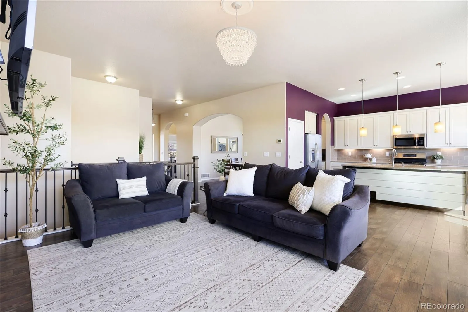 Welcome to this impressive ranch-style home featuring four bedrooms, three bathrooms, and a spacious three-car garage, situated in the heart of Meridian Ranch. Take advantage of community amenities like the golf course, swimming pools, and the recreation center. Step inside to find a luminous living room highlighted by a beautiful fireplace, soaring 10-foot ceilings, and expansive windows that fill the area with natural light. Connected seamlessly is the gourmet kitchen, equipped with a sizable quartz island, stainless steel appliances, and a generous pantry. A formal dining room with a butler’s pantry right off the kitchen allows for easy entertaining. The main level hosts the elegant primary suite complete with a five-piece en-suite bath, walk-in closet, and direct access to both the laundry room and garage entry. Another bedroom and full bathroom are also located on this floor. Venture downstairs to the finished basement, where you’ll discover a roomy family area that is perfect for movie nights, games, or playtime. Two more bedrooms, each boasting walk-in closets, share a full bathroom with double sinks, alongside a large storage area (which could be converted into a fifth bedroom). Enjoy entertaining guests easily; from the kitchen and eat-in nook, step out to a covered patio and backyard with a raised entertainment zone, featuring a fire pit, all overlooking open green space and nearby biking/hiking trails. The home includes a high-efficiency furnace, central air, a 50-gallon water heater and radon system. Located conveniently near shopping, dining, local schools, and scenic walking and biking paths, this beautiful home awaits your visit today!