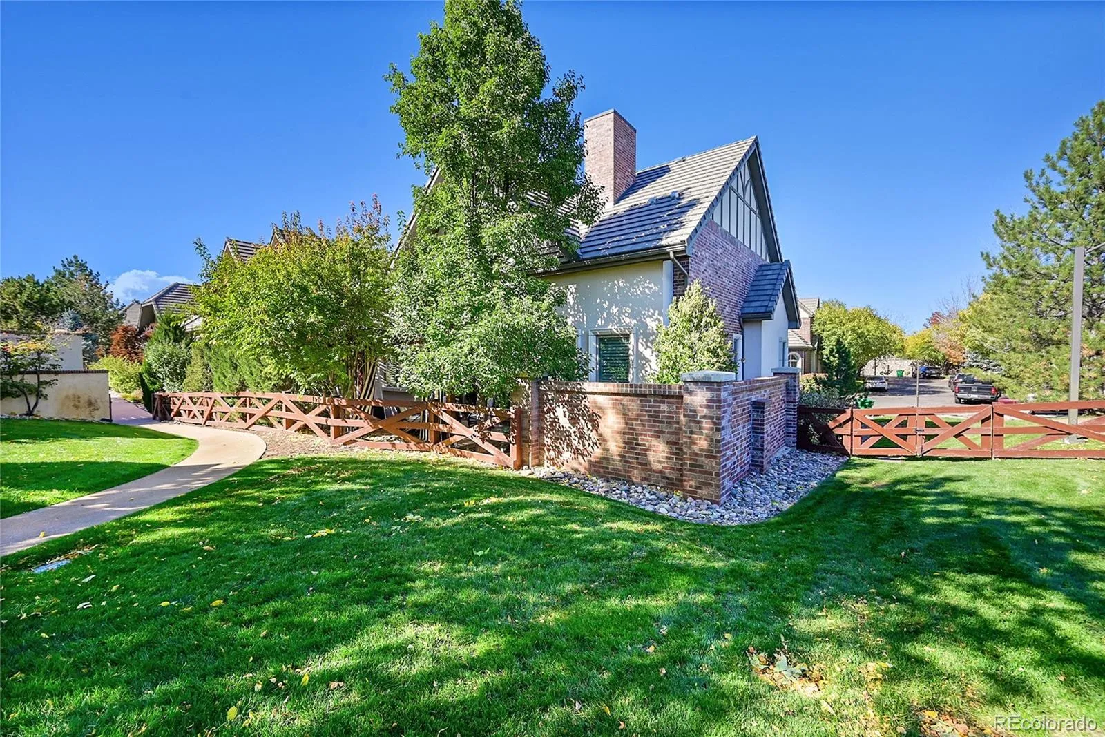 Open House 10/25 11AM-1PM. Gated community – RSVP to Listing Agent. Visit YourDenverHm.com Just Listed! This striking Tudor home captures refined craftsmanship & timeless designer details in one of Denver’s most exclusive communities. Every element exudes quality—from rich hardwood flooring & premium quartzite surfaces to artisan lighting, curated hardware & layered textures. The open great room stands out with its reclaimed wood tongue-&-groove vaulted ceiling, exposed beams, industrial barn door accent & floor-to-ceiling stone fireplace, creating an inviting hub that seamlessly connects to a heated, pergola-covered patio with lush landscaping for privacy. The gourmet kitchen is a showpiece featuring premium Wolf & Sub-Zero appliances, 6 burner range, premium quartzite island with seating, built-in wine fridge, large pantry, buffet, custom tile backsplash & breakfast nook with a built-in bench. The main-level primary suite has vaulted ceilings, a spa-inspired 5 piece bath with jetted tub, & a walk-in closet with Bosch washer & dryer. French doors lead into a study accented by custom wood built-ins & plantation shutters. The lower level redefines luxury with one of the finest basements in the community. A custom wet bar highlights a kegerator, 2 250-bottle Eurocave wine fridges, & multiple seating areas for gatherings w/ stone accent walls & large fireplace. The adjacent theater is open & distinct, designed for effortless game day or movie nights with integrated sound & lighting. An additional suite offers privacy & convenience. Living in Cherry Creek Country Club offers a resort-style experience with a private Jack Nicklaus Signature golf course, clubhouse dining, fitness & spa facilities, tennis courts, & 24-hour gated entrance. The setting combines peaceful scenery, manicured greens, & water features with exceptional convenience—minutes from the Denver Tech Center, Cherry Creek District schools, & the High Line Canal & Cherry Creek Trails.