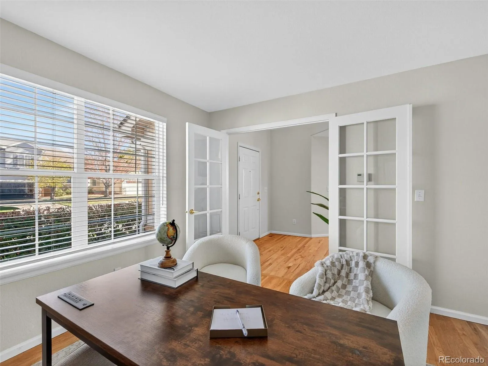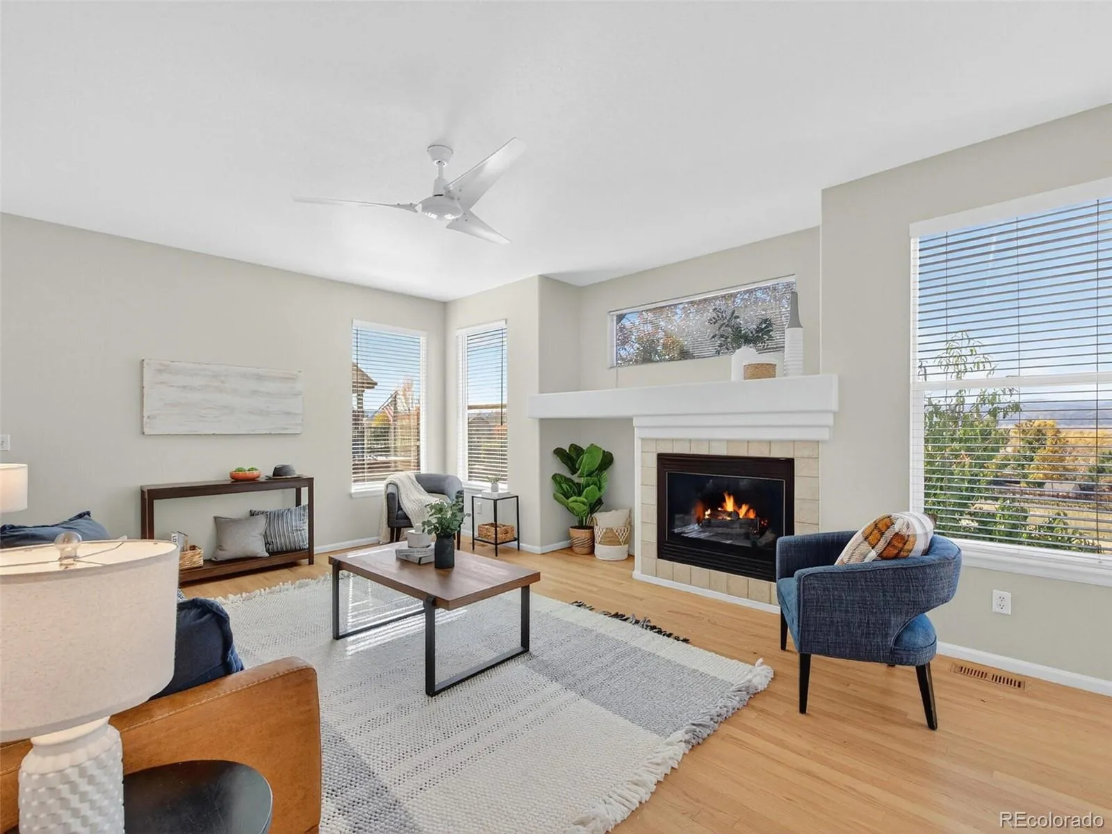 VIEWS, VIEWS, VIEWS! This beautifully maintained 3-bedroom, 3-bath home in the heart of Highlands Ranch offers stunning mountain views and backs directly to open space with walking trails. Freshly updated with new carpet and paint, the bright and airy main floor features hardwood floors, an open living and dining area, and a versatile office with French doors—perfect for remote work or a playroom. Upstairs, the private primary suite boasts three closets (including two walk-ins), an en-suite bath with dual sinks, tile floors, and a soaking tub, plus a cozy retreat area with breathtaking views. Two additional bedrooms share a Jack-and-Jill bath, and the convenient upstairs laundry adds everyday ease. The finished basement provides flexible space for a rec room, media area, or gym. Outside, enjoy a fully fenced backyard with mature landscaping, ideal for relaxing or entertaining. With a nearby trailhead leading to the town center’s shops, restaurants, and summer farmers markets, and access to four top-tier recreation centers, 26 parks, community events, and over 70 miles of trails, this move-in-ready home perfectly blends comfort, convenience, and Colorado beauty.