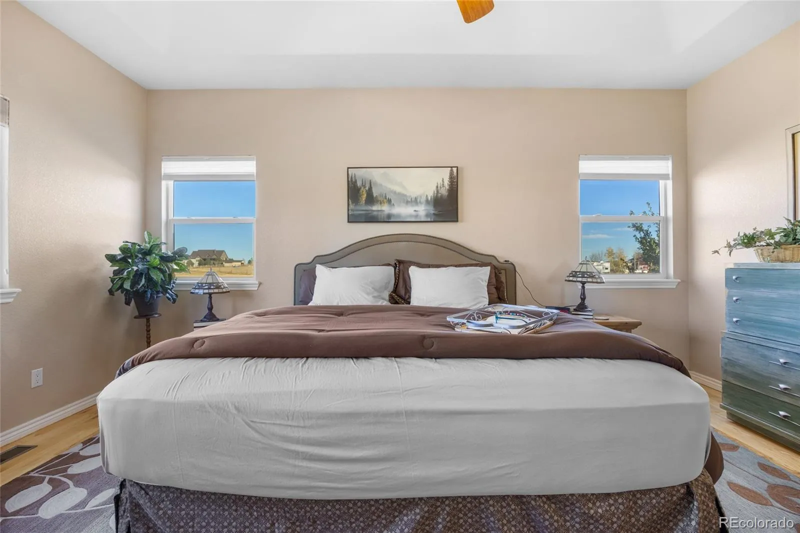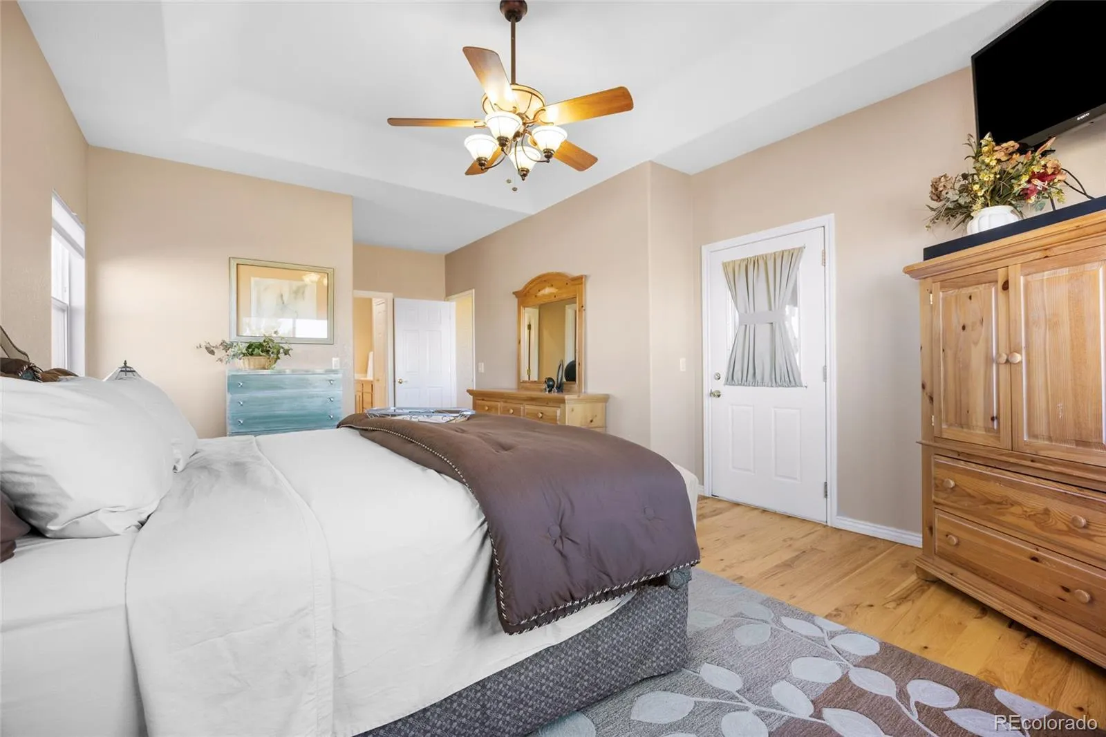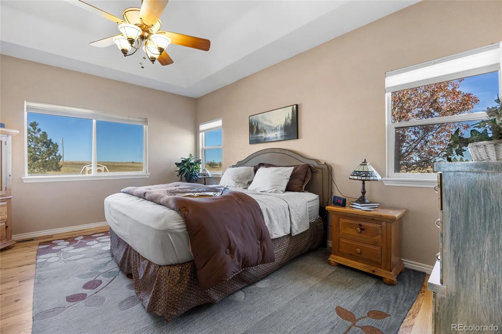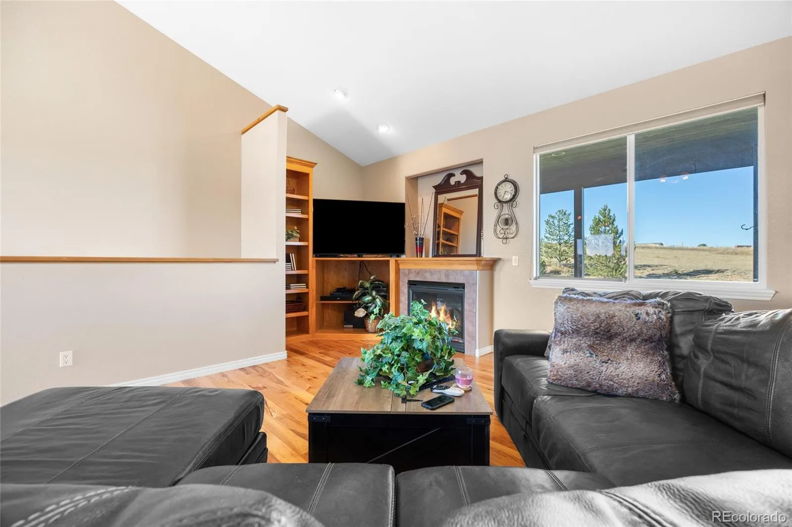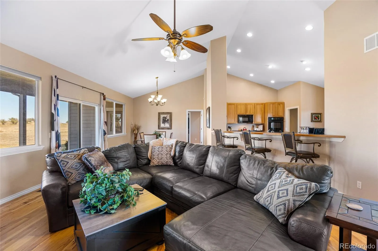 Welcome to your peaceful country retreat in beautiful Elizabeth, Colorado! Nestled on nearly 6 gently rolling acres with mature trees and open meadow views, this inviting ranch-style home perfectly blends comfort, charm, and wide-open living. A lovely water feature with shimmering goldfish greets you upon arrival, setting the tone for the serenity that awaits. Inside, discover an entertainer’s dream, a spacious, open family room flowing seamlessly into the dining area and large kitchen with abundant cabinetry, a bright breakfast nook, and gleaming hickory floors throughout the main living areas. The main floor also features a sunny home office, a generous mudroom off the garage, and two bedrooms, each with ensuite baths, plus a convenient powder room. The finished basement adds exceptional versatility with two additional bedrooms, a full bath, a wet bar, and expansive open areas ideal for recreation, fitness, or hobbies. Enjoy peaceful mornings on the covered back patio, breathtaking sunsets, and plenty of room for animals, gardening, or simply soaking in the quiet beauty of country life — all just minutes from town. Schedule your private showing today and be home for the holidays!