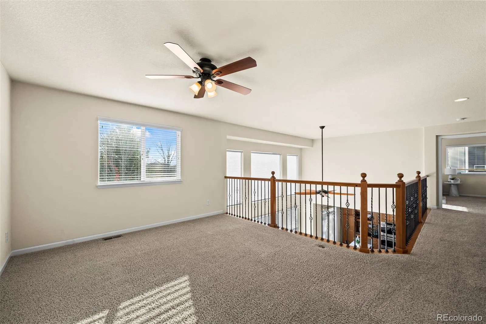 Welcome to 254 Bittern Dr in the serene Stroh Farm community in Johnstown! As you arrive, you’ll be greeted by fantastic curb appeal, featuring mature trees, a charming front porch, and a spacious three-car garage. Save on your insurance + energy bills with the new roof and paid solar! Step inside to find soaring vaulted ceilings and a formal living and dining area that leads you into the heart of the home. The open eat-in kitchen features a large island, ample cabinet + granite counter space and includes all appliances. Cooking for a crowd? Enjoy the double ovens + gas cooktop. The kitchen flows seamlessly into the eat-in space which opens to the private fenced backyard with excellent landscaping. The inviting family room rounds out the open floor plan, highlighted by double-height ceilings and a cozy gas fireplace. Tucked away behind the family room is a private office, perfect for working from home. Owner’s entry from the garage doubles as a convenient laundry room. Upstairs, you’ll find a spacious loft for extra living space and two secondary bedrooms that share a full bathroom. Across the catwalk is the private primary bedroom which offers a five-piece en-suite bathroom + enormous walk-in closet. The unfinished basement is ideal for future customization and includes a lockable workshop space. Just south of Downtown Johnstown, around the corner from new Bella Ridge Golf Club + Pioneer Ridge Elementary School. Don’t miss the opportunity to make this beautiful home yours in the desirable Stroh Farm community!