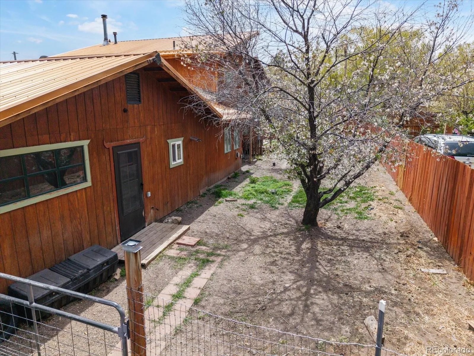 This spacious 1632 sq. ft. home features 4 bedrooms and 3 bathrooms, offering plenty of room for comfortable living. Enjoy stunning views of the Sangre de Cristo Mountains from this charming Southwestern-style residence. The home includes a two-car attached garage, warm wood plank floors, and a striking tongue-and-groove ceiling accented by exposed wooden beams in the living room. A cozy wood-burning stove adds rustic charm and warmth. The fenced backyard provides privacy and includes a lovely adobe-walled courtyard, perfect for relaxing or entertaining. Seller is offering a $5,000 concession to Buyer, which may be applied toward closing costs, prepaids, or interest rate buy-down, with an acceptable offer helping make this home even more affordable. Schedule your appointment today!