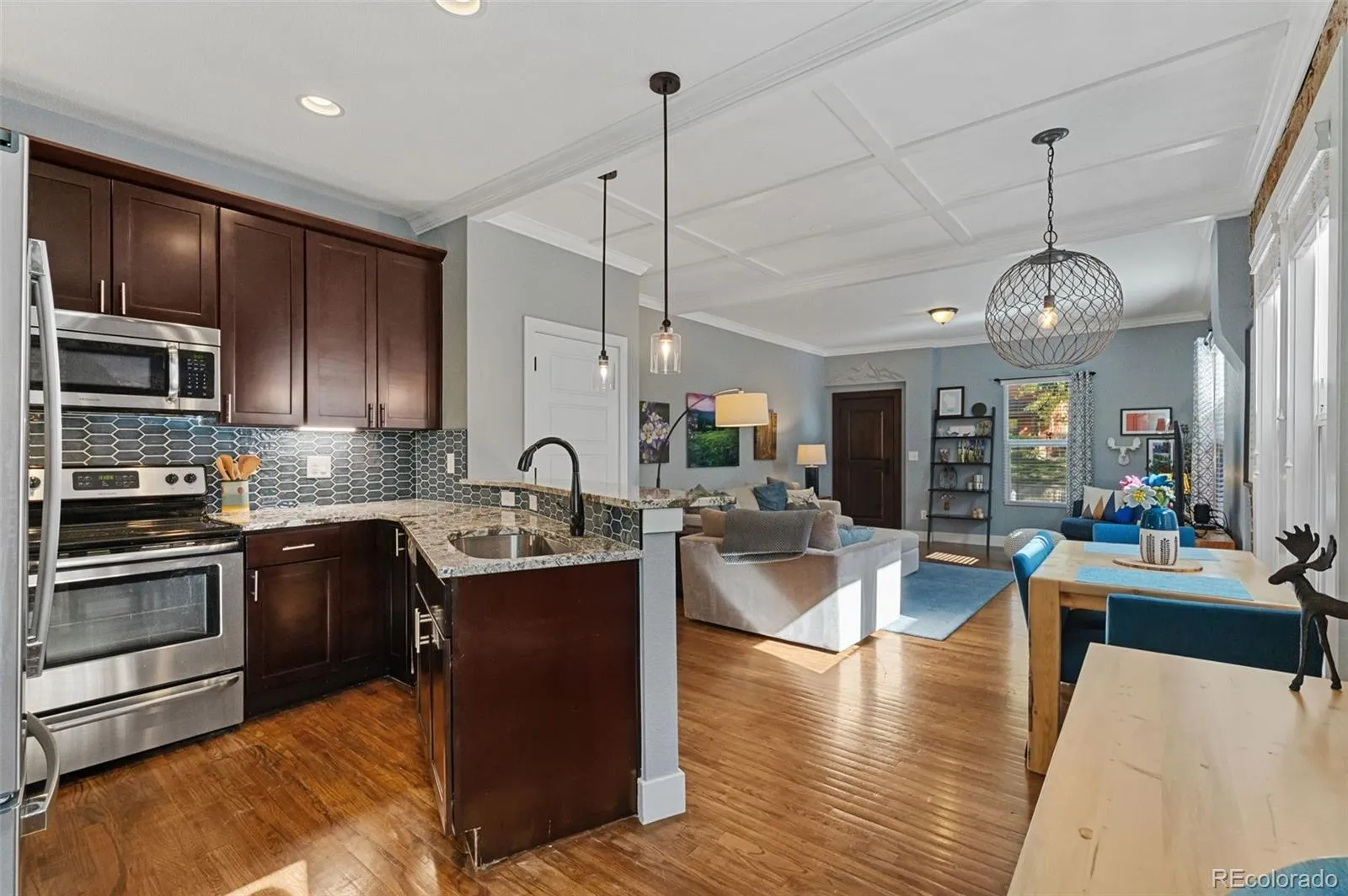 Welcome to one of the most sought-after locations in Denver—Platt Park! This charming half duplex is just minutes from trendy restaurants, vibrant bars, parks, recreation centers, the light rail, Harvard Gulch, DU campus, and the beloved South Pearl Street Farmers Market. Blending modern updates with classic appeal, this residence retains its historic charm with exposed brick walls, elegant wood floors, soaring ceilings, architectural arches, and charming built-ins that invite warmth and character. The spacious kitchen has been thoughtfully opened up, showcasing new backsplash, updated appliances, granite countertops, bar seating, and a delightful breakfast nook with ample storage. The main floor bedroom offers versatility, serving as an ideal home office or guest room, conveniently located next to a renovated full bathroom. Upstairs, discover a private primary suite complete with a luxurious bathroom featuring a generously sized walk-in shower. The rooftop deck provides a serene space to take in the neighborhood views and enjoy the fresh air. Storage will never be an issue with the expansive basement area, while the spacious and private backyard is perfect for entertaining, an urban garden or accommodating pets. A rare two-car garage adds to the convenience of city living. Recent updates, including a newer HVAC system, roof, exterior paint and tuckpointing, exterior doors, and enhanced landscaping with updated sprinkler system, are the icing on the cake! Don’t miss this exceptional opportunity to own a beautifully updated half duplex in the heart of Platt Park. Make it yours and enjoy in the vibrant lifestyle that this fantastic Denver neighborhood has to offer!