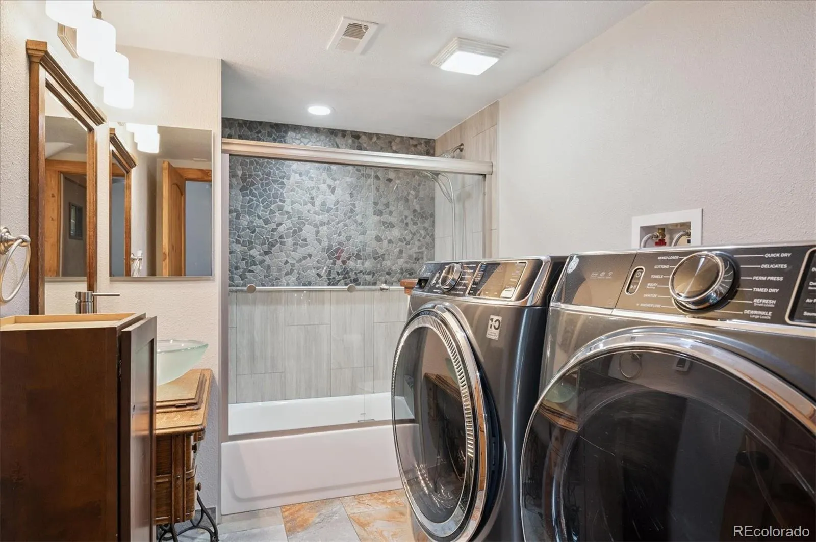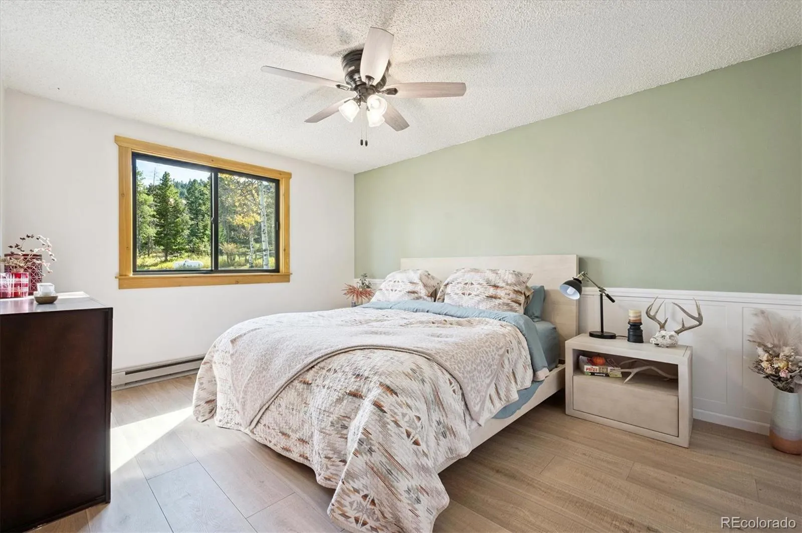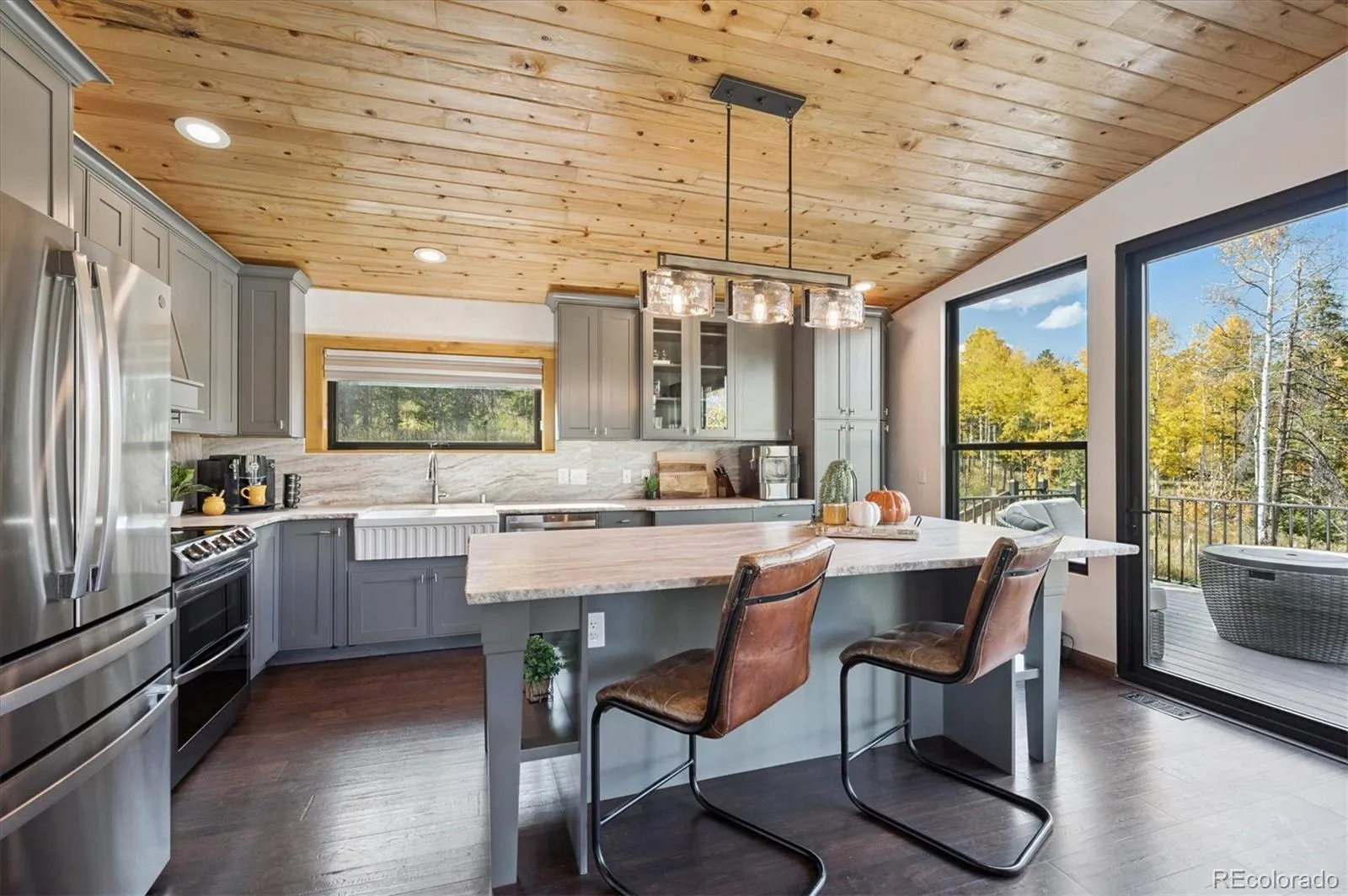 Nestled among the Aspens in the highly sought-after community of Silver Ranch Estates, this stunning home offers the perfect blend of comfort, style, and breathtaking natural beauty. Located on a quiet cul-de-sac, you’ll enjoy peace, privacy, and unmatched 360-degree mountain views that make this property truly one of a kind. The bright, open-concept kitchen is ideal for entertaining, featuring a spacious island, stainless steel appliances, soft-close cabinetry, granite countertops, a charming farmhouse sink, and plenty of natural light. The adjacent great room showcases soaring tongue-and-groove vaulted ceilings and a cozy, yet expansive atmosphere perfect for gatherings or quiet evenings. Open the impressive wall of glass bi-fold doors to seamlessly extend your living space onto the expansive deck—perfect for taking in the views or enjoying Colorado’s fresh mountain air. When the weather turns, head downstairs to the covered patio with a rain-free roof system, allowing you to stay outside and dry no matter the forecast. Warm up during snowy winter nights by one of the two highly efficient wood stoves, which also help significantly reduce heating costs. Additional energy-efficient features include new windows upstairs, a tankless hot water heater, and ceiling fans throughout. This home was built with long-term durability in mind, featuring impact-resistant shingles and cement board siding—features that may qualify for reduced homeowner’s insurance premiums. The domestic well (with both UV and canister filters) is permitted for watering a horse or small livestock. Additional features include a reverse osmosis water purification system, paved driveway, and a spacious shed/workshop for all your toys. Don’t miss this unique opportunity to own a piece of mountain paradise. Schedule your private showing today!