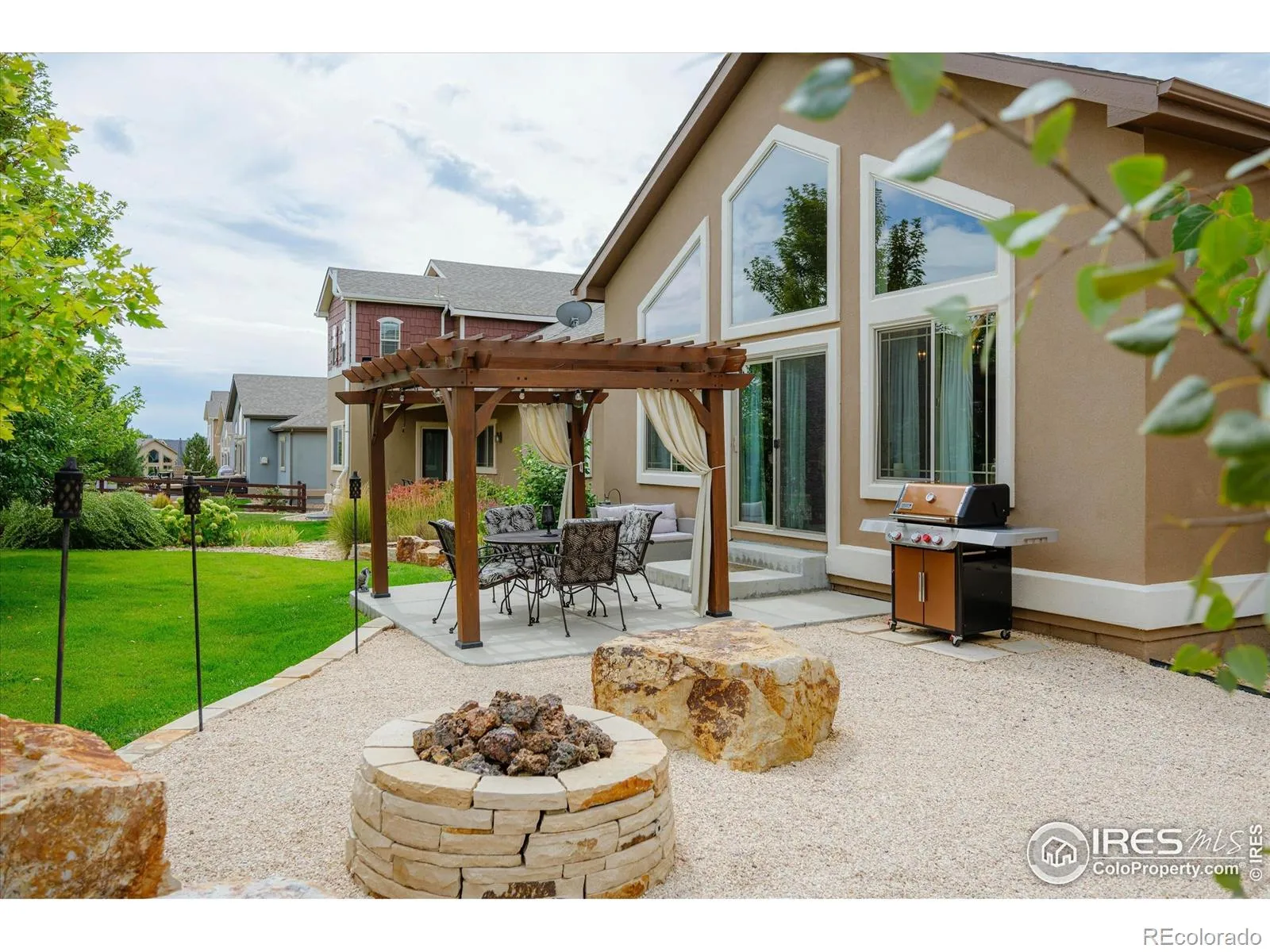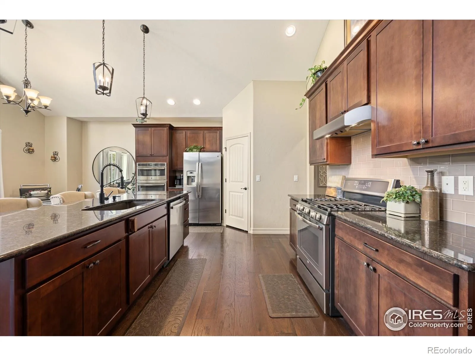 Fall in love w/ this stunning ranch home that checks every box! Step inside to find gorgeous wood flooring throughout much of the main floor, vaulted ceilings, abundant natural light, custom light fixtures & a spacious layout designed for everyday living & entertaining. The chef’s kitchen is a showstopper w/ stainless steel appliances, gas range, dual ovens, microwave/convection oven, brand new dishwasher, oversized granite island, pendant lighting & plenty of storage. Enjoy meals in the connecting dining space! The large family room w/ a gas stone fireplace is the heart of the home while the tiled laundry room w/ sink & cabinetry makes chores a breeze! The luxurious primary retreat features coffered ceiling, a spacious walk in closet & a en-suite spa-like bathroom w/ dual granite vanities, a deep soaking tub & spectacular floor-to-ceiling tiled custom shower-your private sanctuary for relaxation! Two additional bedrooms w/ oversized closets & another full bath w/ dual vanities round out the main floor. Downstairs, the finished basement wows w/ high ceilings, a massive rec room space w/ electric fireplace & an entertainer’s wet bar w/ granite counters, walnut colored cabinetry, sink & beverage fridge. Two spacious bedrooms (one w/ en suite full bath) plus tons of storage make the basement as functional as it is beautiful! Step outside to your backyard oasis! Gather around the built-in gas fireplace-complete w/ gas line & framed by dramatic limestone boulders. Relax under the cedar pergola w/ cafe lighting & curtains & enjoy privacy w/ mature trees backing to manicured greenbelt space. Enjoy a beautifully designed & low maintenance garden setup w/ raised planter boxes perfect for growing vegetables in a elevated layout. To complement the planters, the yard is equipped w/ a comprehensive drip irrigation system for low maintenance living! A spacious 3-car garage, NO Metro District/LOW HOA FEE add extra value! Close to parks, shopping & restaurants! This home is luxury!
