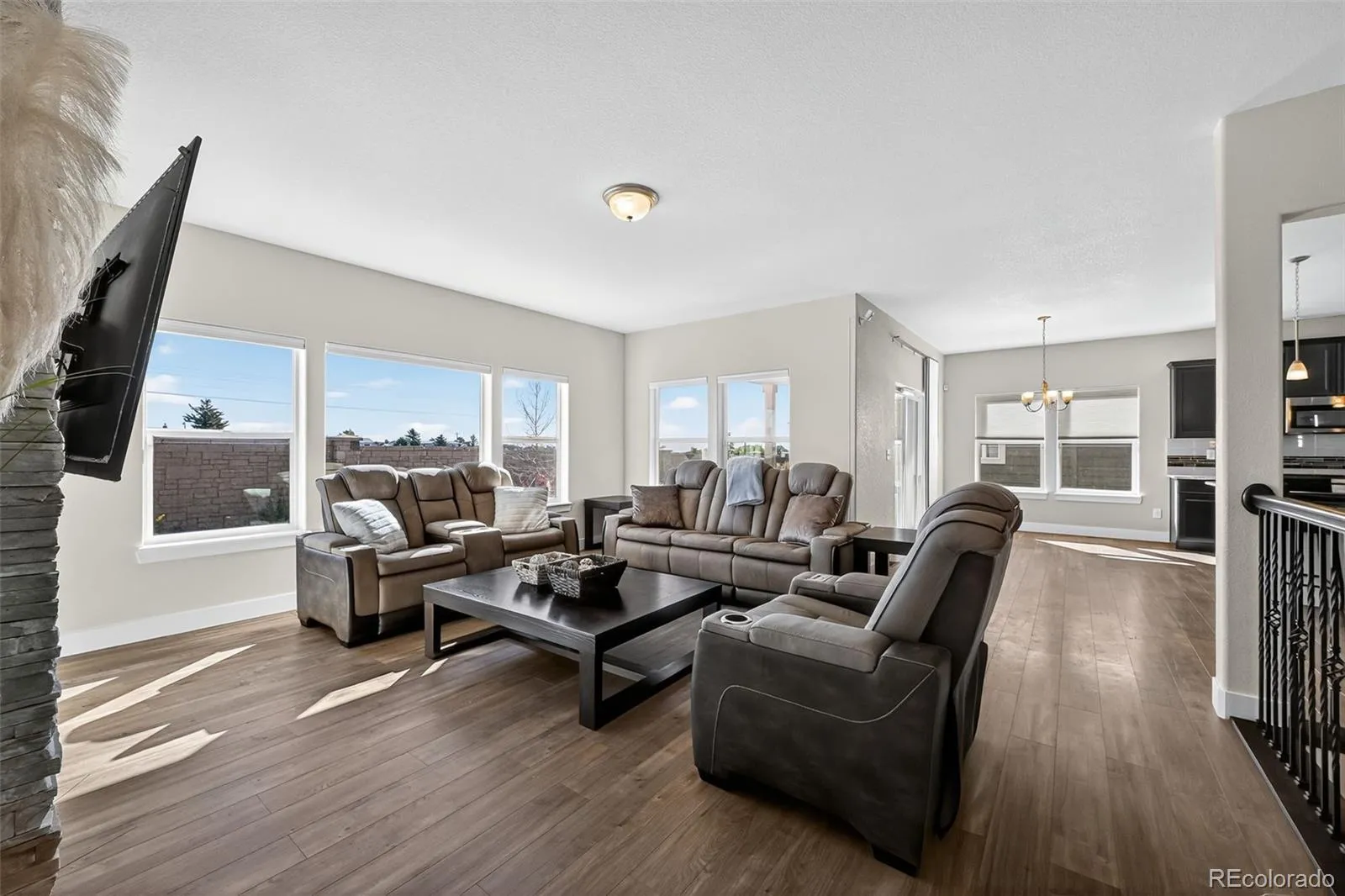 Welcome to your dream home in the highly sought-after Wolf Ranch community, located in the award-winning Academy District 20. Built in 2022, this stunning Challenger Homes “Monte Rosa” model sits on a beautifully landscaped .16-acre lot and offers five spacious bedrooms, three bathrooms, and a three-car garage with luxurious upgrades throughout. Step inside to a bright, open-concept layout designed for modern living. The gourmet kitchen features granite countertops, a gas cooktop, double ovens, upgraded backsplash, designer lighting, and elegant cabinetry. The great room centers around a floor-to-ceiling stone gas fireplace, creating the perfect setting for relaxing or entertaining. Natural light fills the main level, highlighting the warm tones and upgraded finishes. The main level includes extended laminate flooring and four bedrooms, including a serene primary suite with a spa-inspired bath, a large walk-in shower, dual sinks, and direct access from the laundry room to the primary closet for added convenience. Downstairs, the expansive finished basement offers a large family or rec room, a fifth bedroom, flex space ideal for a home office or gym, and an unfinished area ready for future customization. Pre-plumbed for a wet bar, the basement is ready for entertaining. This home includes thoughtful details such as hot tub pre-wire, an extended concrete patio, pre-wiring for holiday lighting, insulated garage doors, central air, and wooden window sills. Enjoy all that Wolf Ranch has to offer, from community parks and walking trails to neighborhood events and top-rated schools including Legacy Peak Elementary, Chinook Trail Middle, and Liberty High School. Don’t miss your chance to own this upgraded gem—schedule your private showing today or view the virtual tour!