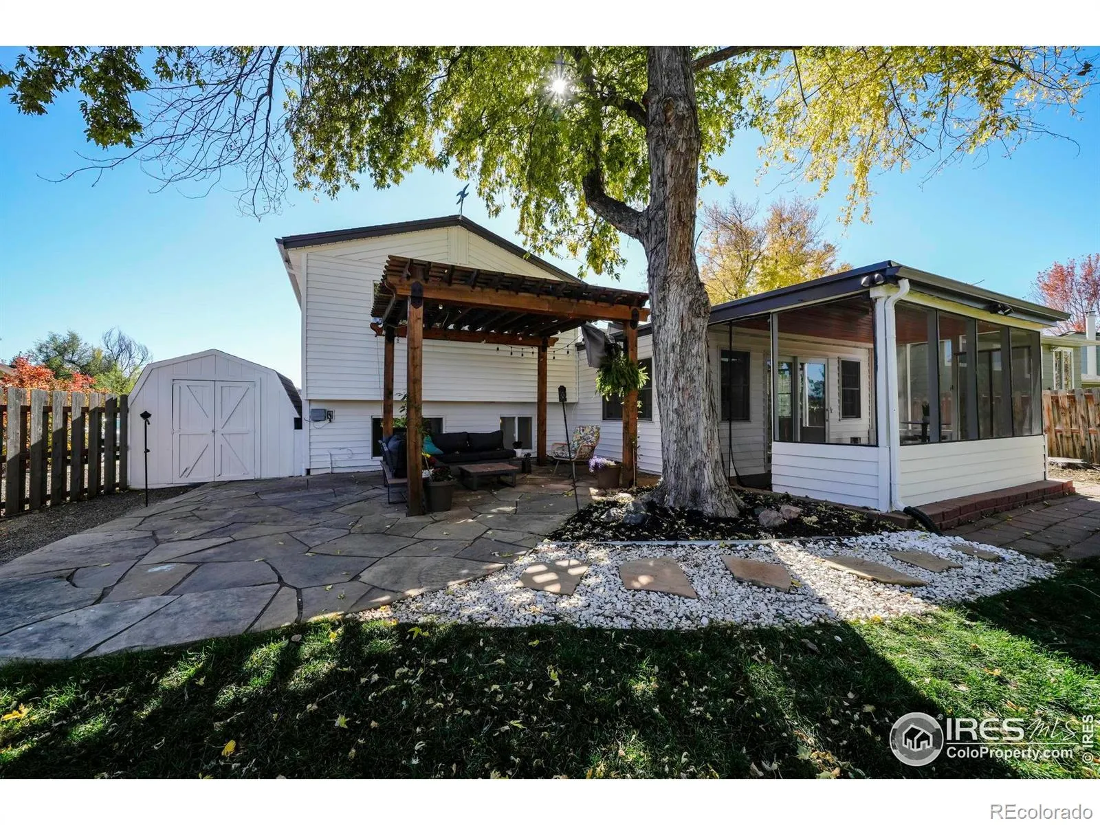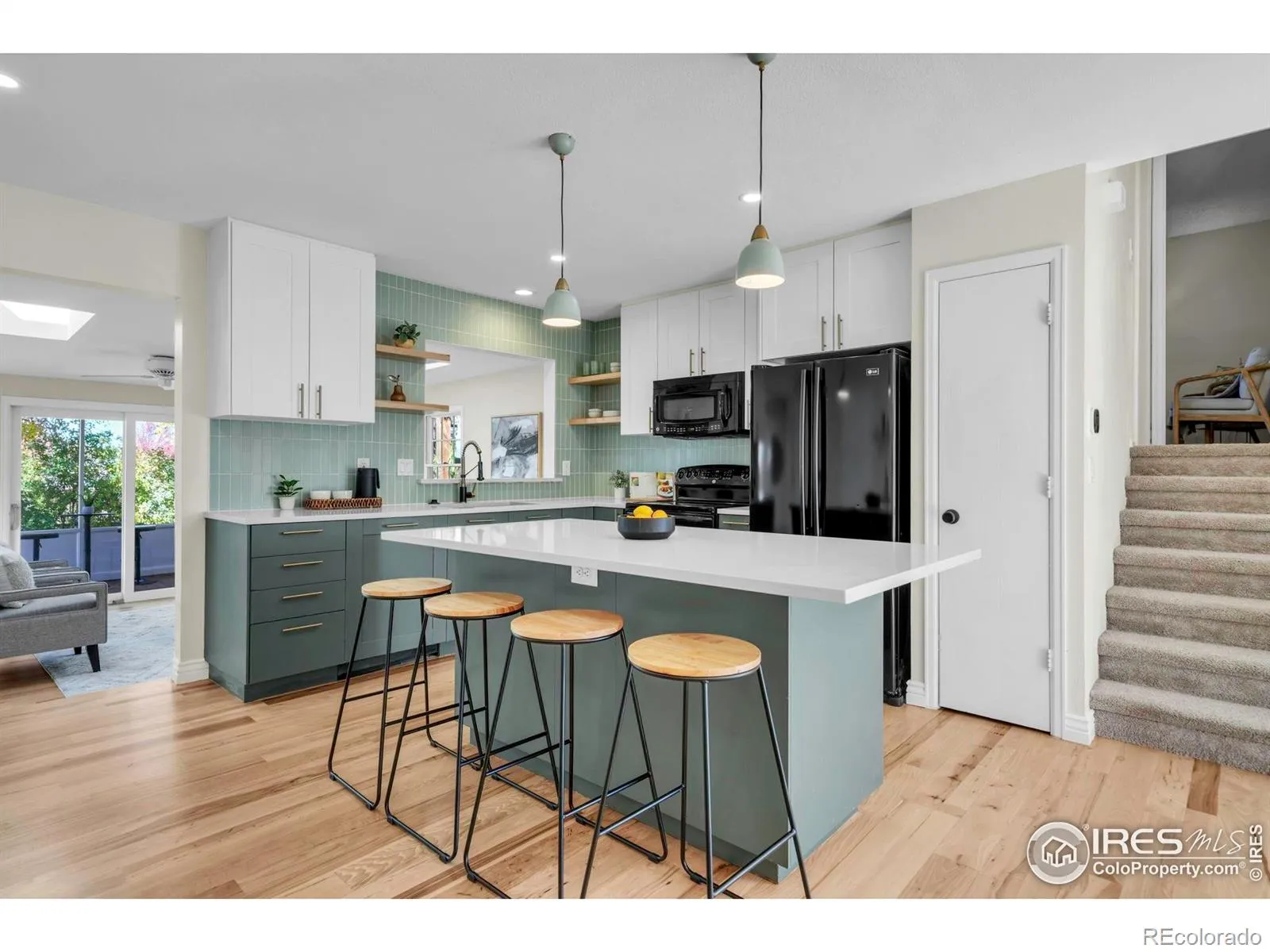 Gorgeous, updated & freshly painted tri-level home on a delightful, expansive lot backing to Kneebone Open space in Lafayette! Inside, you’ll be delighted with the fully renovated kitchen featuring Shaker cabinets, soft close drawers, open maple shelving, designer Fireclay tile, quartz countertops and open concept dining area. Stunning, newly refinished solid hickory hardwood floors run through the entire main level. A light-filled living room addition offers great connection to the screened-in porch and lovely backyard. Upstairs you will find a generous primary bedroom with a walk-in closet and breathtaking mountain views. There is a freshly remodeled, full bathroom featuring a new tub and tile and a 2nd, sunny bedroom with a walk-in closet on this level as well. Making your way downstairs, the home features newer LVT flooring with a family room, an additional bedroom and refreshed full bathroom. You’ll love the serene, private setting of this 10,000+ Sq Ft lot with a beautiful flagstone patio & arbor, fenced garden, mountain views, and a relaxing hot tub nestled in a quiet cul-de-sac. Room for all your toys with an oversized attached one-car garage, 2-car driveway plus and additional RV parking pad, and storage sheds. Many recent upgrades including newer furnace, A/C, new electric hot water heater, newer roof, a 7.42 kW Solar PV system, and a water-wise Bluetooth-enabled sprinkler system with six zones, for improved efficiency and comfort. Please see features sheet for more details on thoughtful improvements through the years. No HOA. Don’t miss the opportunity to own this fantastic home with direct access to scenic walking trails just one house away, as well as a short bike ride to the shops and dining of charming Old Town Lafayette.