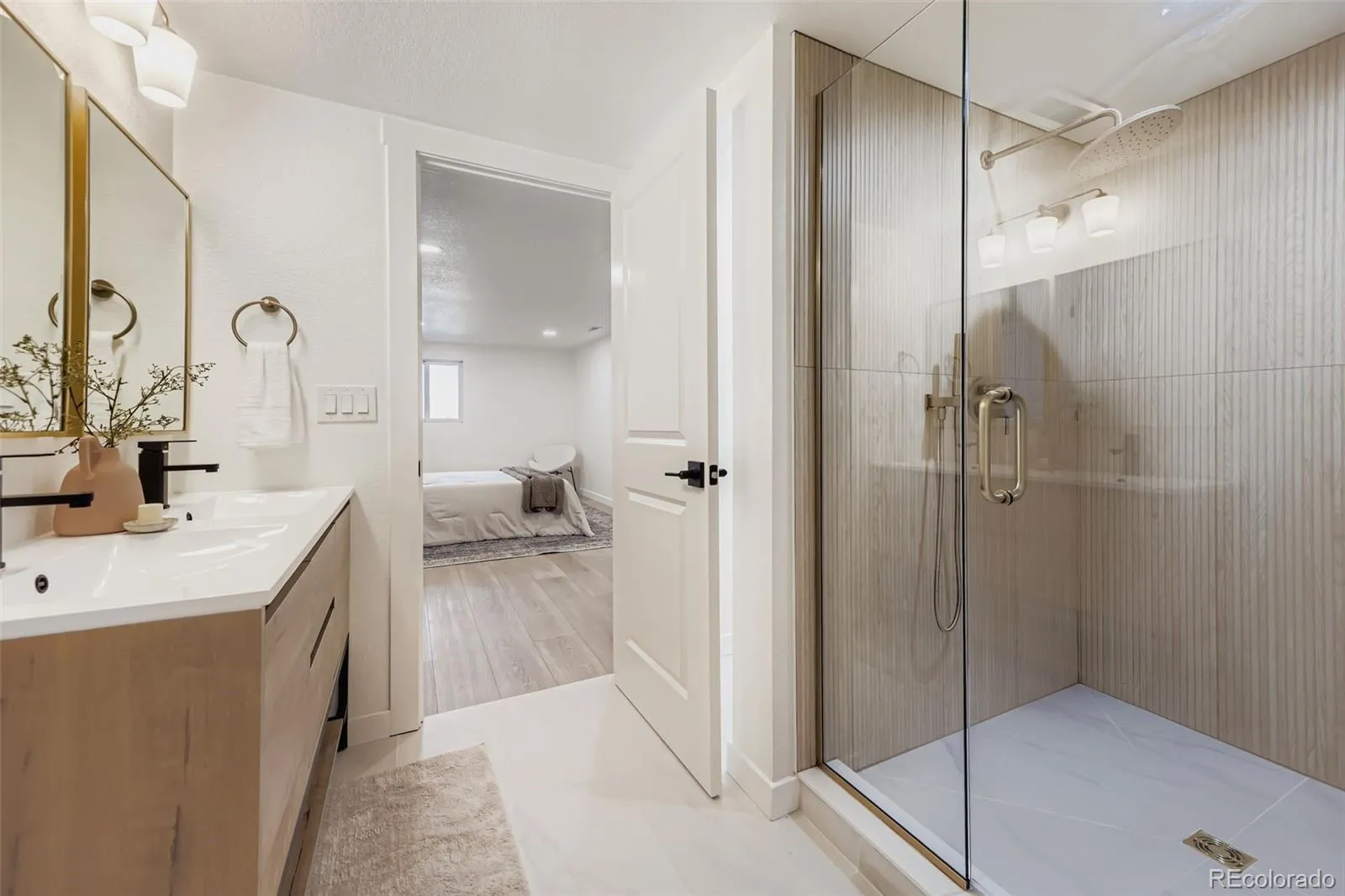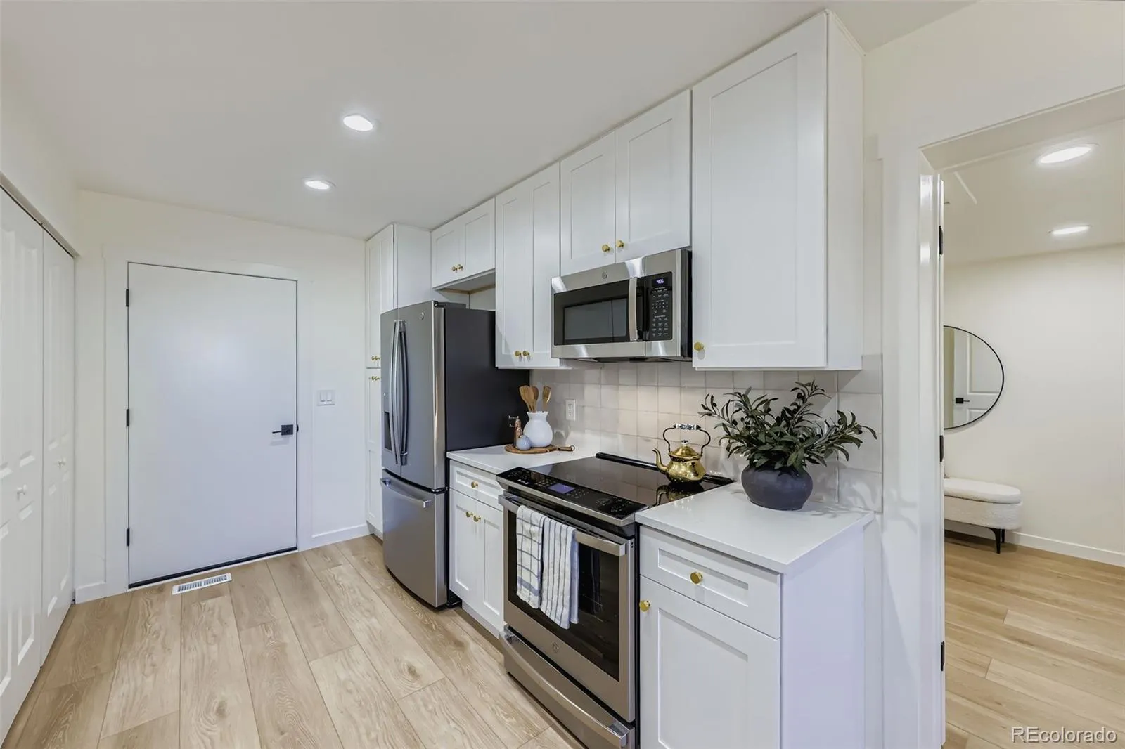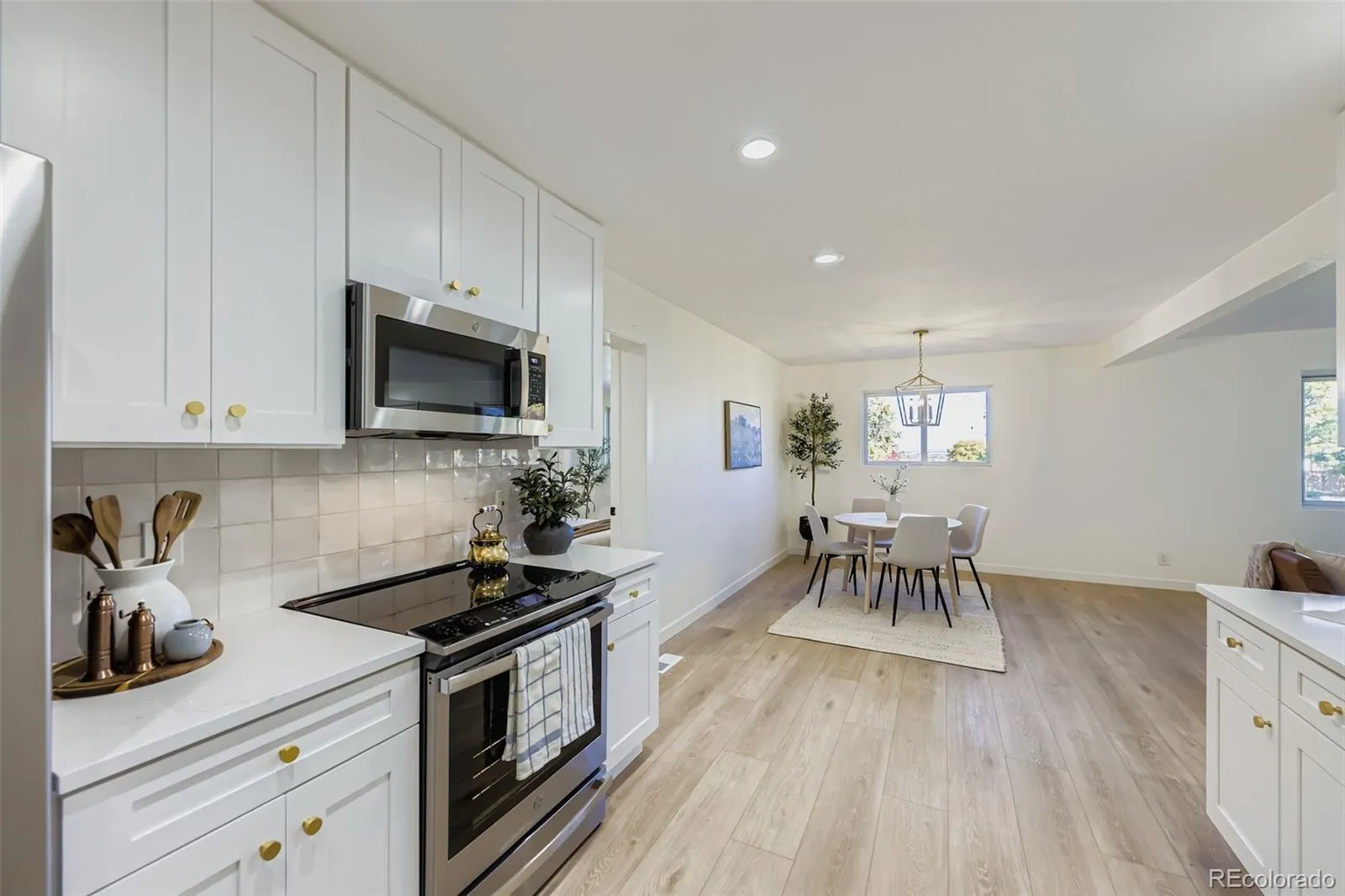 Professionally remodeled with designer finishes throughout, this Thornton gem combines style, comfort, and convenience. The stunning kitchen features quartz countertops, stainless steel appliances, and a custom tile backsplash, opening seamlessly to the dining and living areas—perfect for modern living and entertaining. The primary suite offers a private ¾ bath with contemporary tile and fixtures, while additional updated baths showcase the same attention to detail. Enjoy outdoor living on the spacious covered patio overlooking the fenced backyard with storage shed. Conveniently located near shopping, restaurants, and with easy access to I-25, this home is move-in ready and sure to impress even the most discerning buyers!