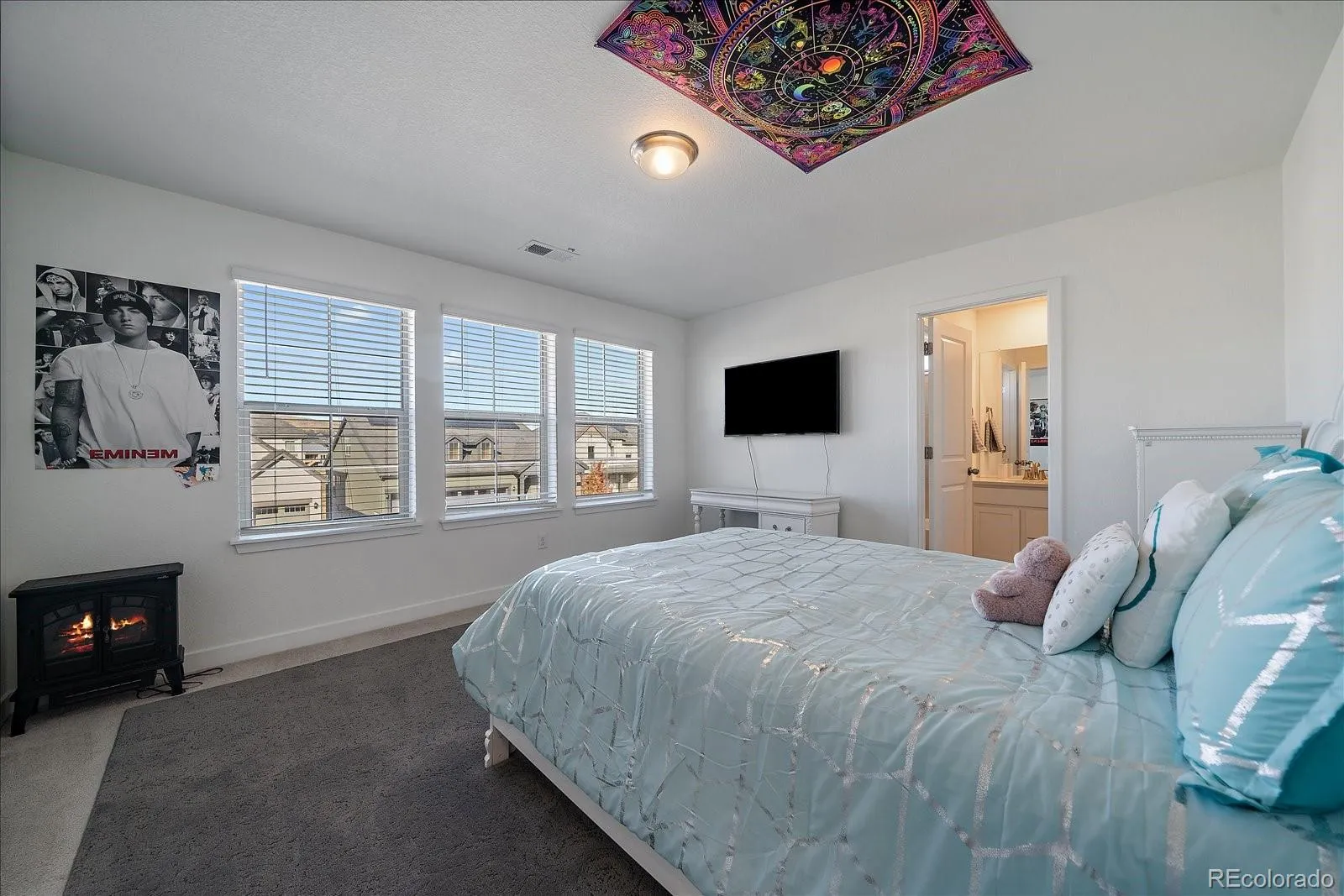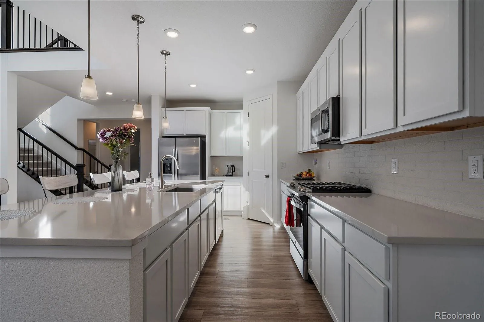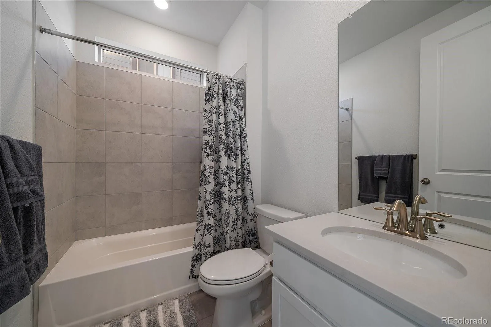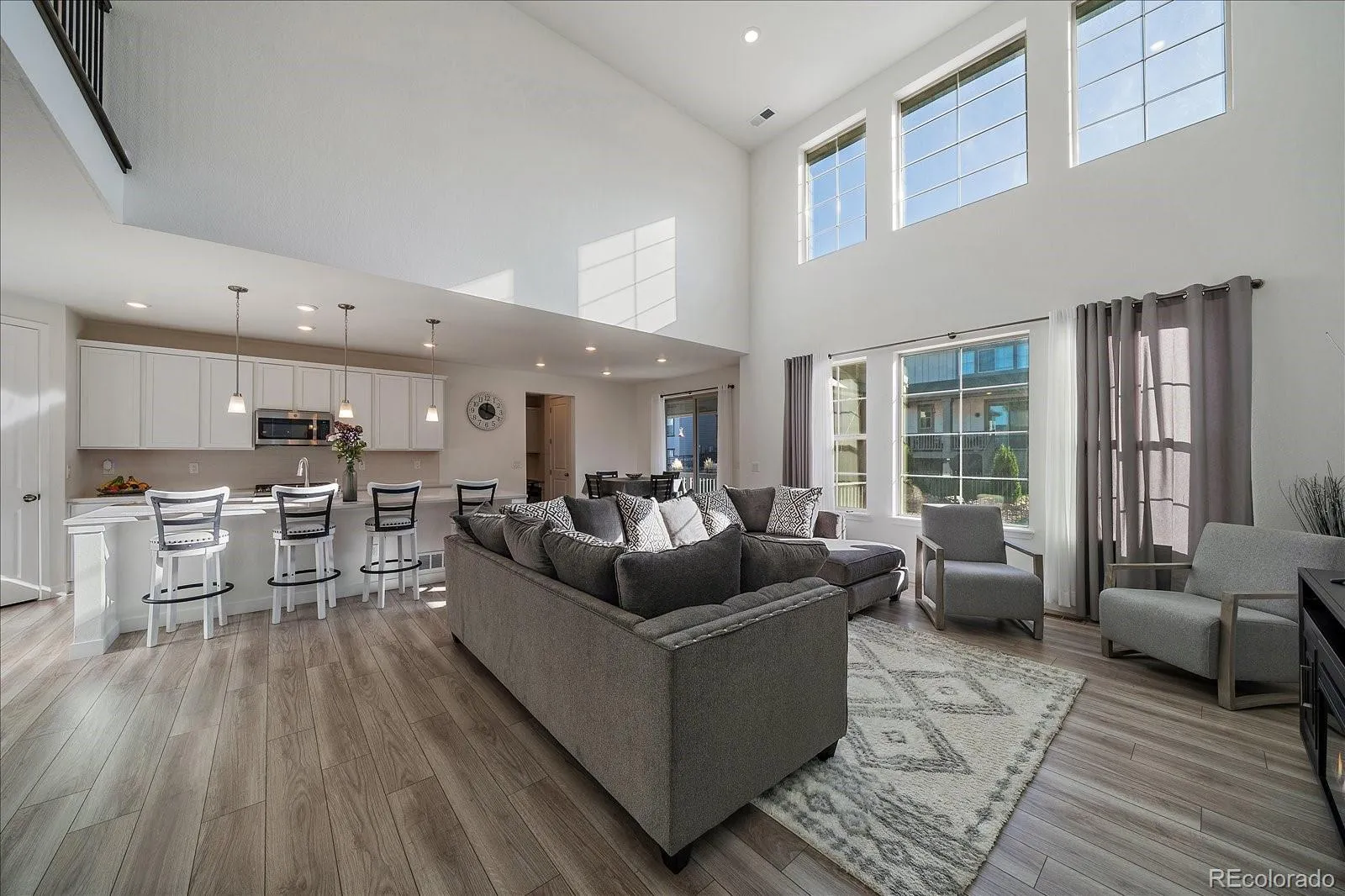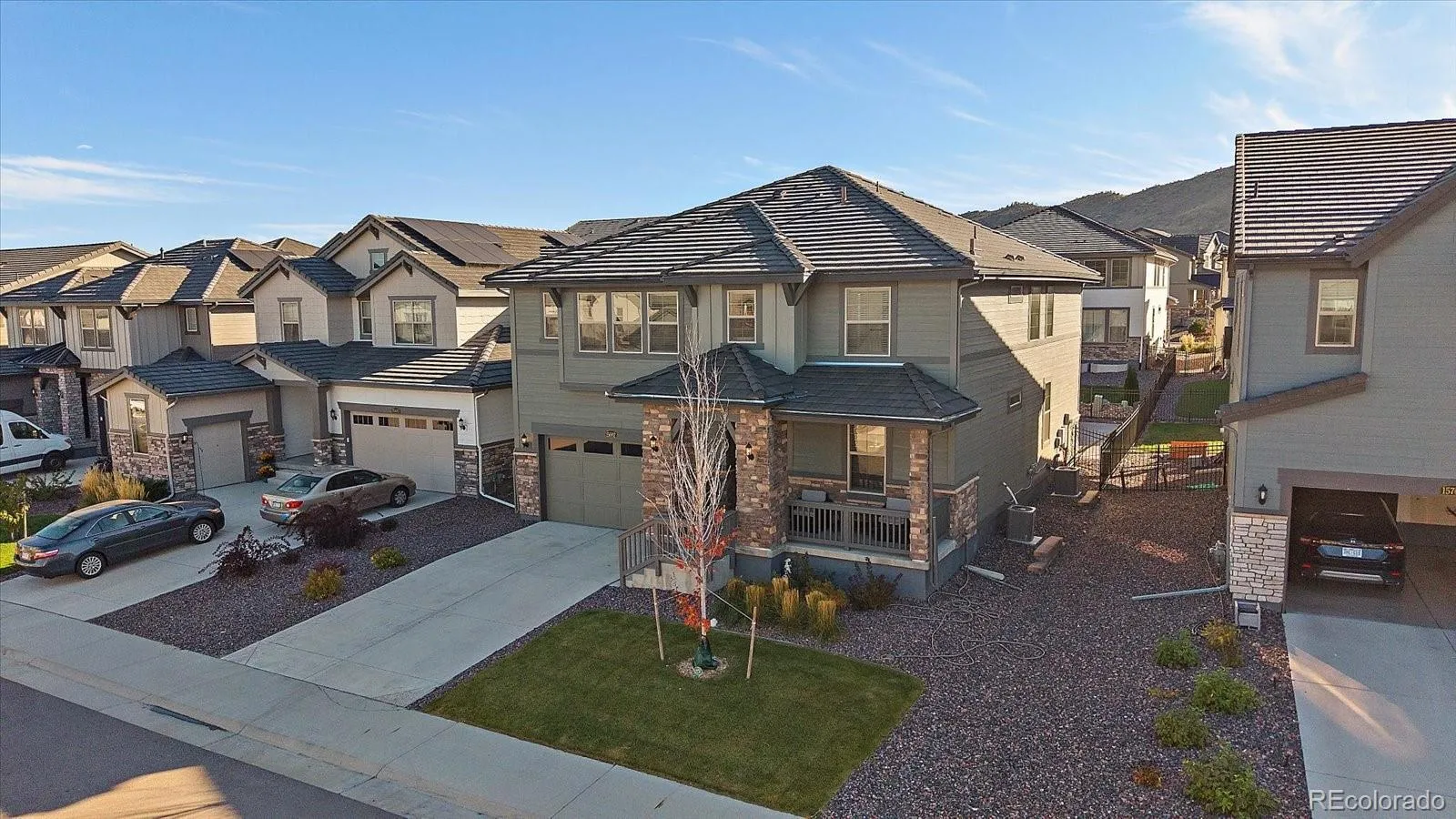 This meticulously maintained Stonehaven model from Lennar, built in 2022, offers the perfect combination of luxury and convenience in the up and coming Red Rocks Ranch neighborhood. With easy access to C-470, trails, the foothills and mountains, this home is in a perfect location for Colorado fun! The main level boasts a soaring 2-story family room that flows seamlessly into the open-concept kitchen and dining area. The expansive kitchen features quartz countertops, a gas range, stainless steel appliances and a large kitchen island that’s perfect for entertaining. The adjoining breakfast nook offers the ideal space for casual meals, and the main floor also features a convenient pocket office—perfect for working from home. The main level also includes a bedroom and nearby full bathroom, ideal for guests or multi-generational living. Beautiful LVP flooring throughout the main floor adds both style and durability. Upstairs are 4 spacious bedrooms, including a luxurious primary suite with TWO walk-in closets and an en-suite bathroom with double sinks. Two of the bedrooms share a Jack & Jill bathroom with double sinks, while the 4th bedroom boasts its own ensuite bathroom complete with a relaxing soaker tub. The upper level also offers the added convenience of a laundry room with shelving, and the washer and dryer are included. Step outside to your peaceful backyard, where a covered composite deck with recessed lighting and sunshades awaits you for ultimate relaxation. The outdoor TV on the deck is included and there’s stamped concrete patio, ready for a future pergola. This home also includes a fully drywalled 3-car tandem garage and unfinished full basement, offering endless possibilities for expansion. Plus, enjoy the energy-efficient benefits of solar panels and a concrete tile roof. Why buy new when you can own a nearly new, with landscaping and window coverings already in place? Check out the floor plans with the photos as well as the 3D tour!