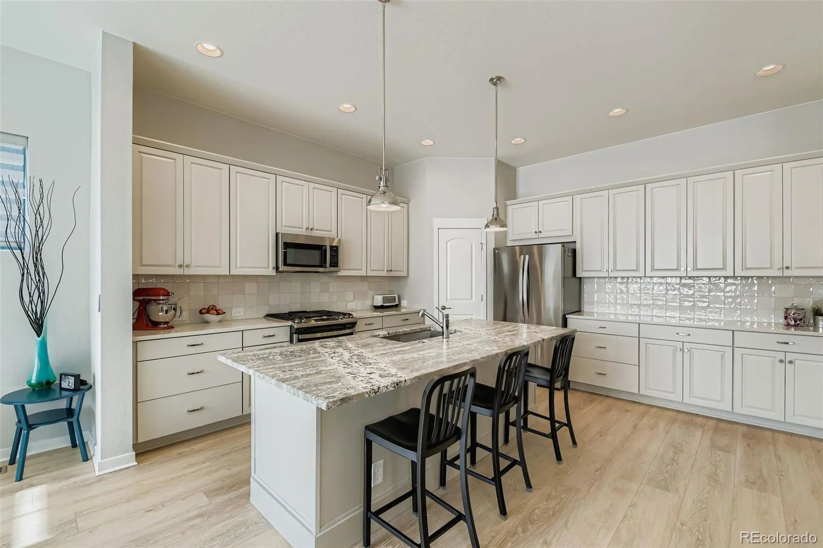 OPEN HOUSE SUNDAY NOV 2ND 1:00PM-3:30PM! Welcome Home to this stunning, nearly new 3-bedroom, 2.5-bath home in Broomfield’s vibrant Baseline community. From the moment you step inside, the bright and open layout is designed for a lifestyle of comfort and style. The kitchen is a show stopper,  with the space centered around the oversized island with a stunning leathered granite countertop. Additional kitchen upgrades include stainless steel appliances with double oven/gas range, upgraded cabinets, upgraded backsplash and additional quartz countertops elevate this space. All is open to the family room and  dining area for ease of entertaining.  A functional drop zone and a convenient half-bath are discreetly located on the main floor off the garage entry.