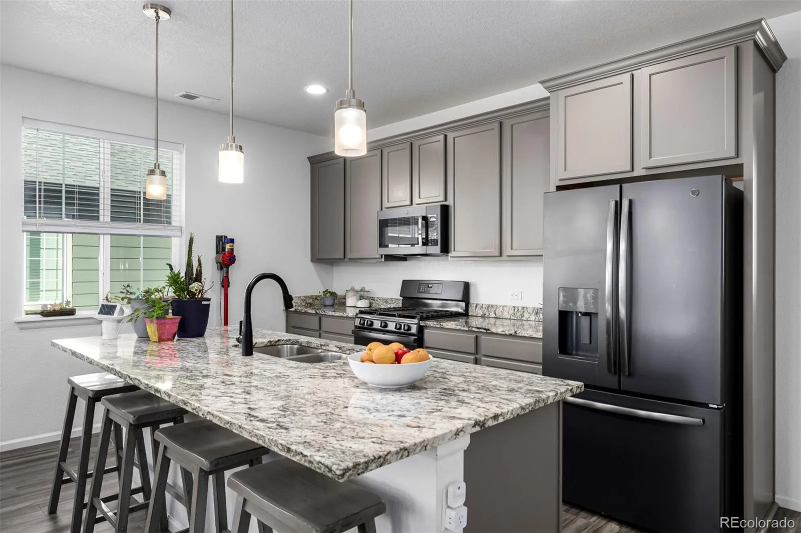 Built in 2020, this Richmond Alexandrite model captures the ease and elegance of modern living within the vibrant Harmony community. Thoughtfully designed by its original owner, the home reflects both function and refinement through its airy open layout and abundant natural light. High 10-foot ceilings and eight-foot interior and exterior doors create a sense of volume, while large windows draw the eye outward to landscaped surroundings that feel both private and serene. At the heart of the home, a spacious kitchen inspires connection. A generous island invites conversation and casual dining beneath chic pendant lighting, complemented by sleek cabinetry, a gas range, and stainless steel appliances that balance practicality with style. Dual eight-foot sliding glass doors open the living area to a wide concrete patio, expanding the experience of space and inviting easy indoor-outdoor flow, perfect for morning coffee or evening gatherings beneath Colorado’s open skies. Every detail has been considered, from ceiling fans in each bedroom to the industrial-inspired lighting that defines the home’s modern aesthetic. The primary suite offers a restful retreat with soft textures and a well-appointed ensuite, while secondary bedrooms provide versatility for guests, work, or play. Positioned on a quiet, cul-de-sac-like street within walking distance of the local school, the home blends tranquility with community connection. Harmony offers an exceptional lifestyle with its expansive recreation center, fitness facilities, waterpark-style pool, and an abundance of pocket parks that foster an active, neighborly atmosphere. Stylish, contemporary, and thoughtfully cared for, this home embodies the effortless balance between comfort, design, and everyday convenience.