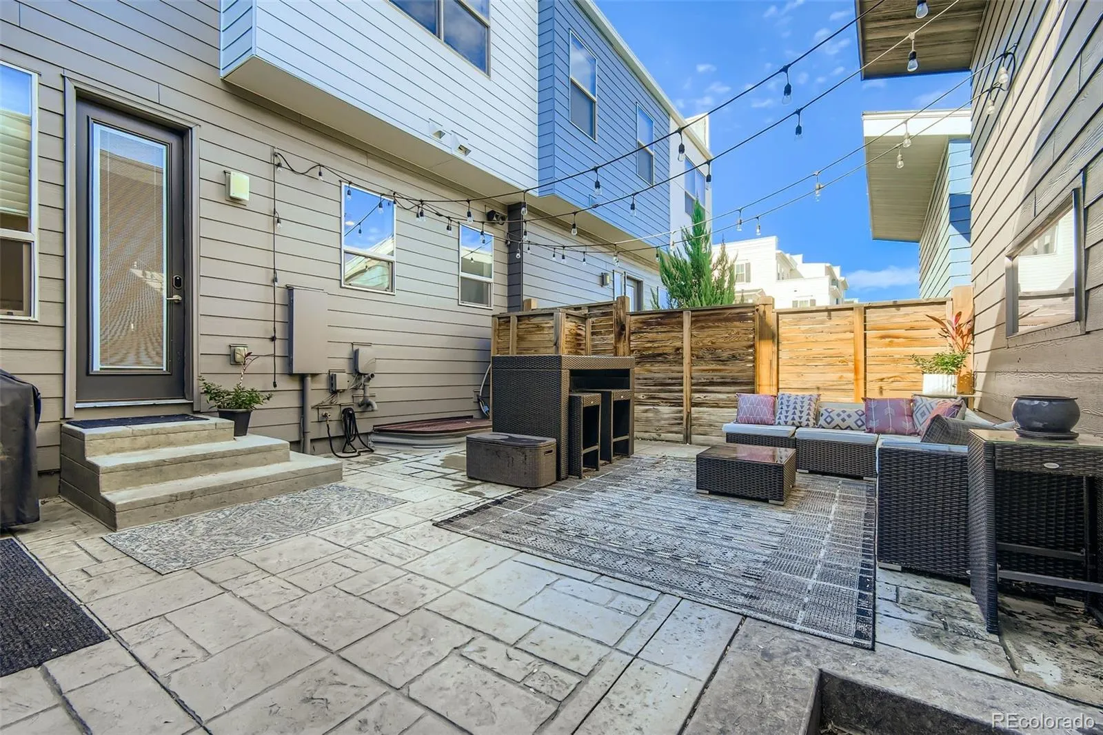 Welcome to sophisticated, low-maintenance living at this stunning Wonderland townhome in Central Park’s desirable Conservatory Green neighborhood. This contemporary and luxurious 3-bedroom, 4-bathroom residence has been meticulously maintained, creating a move-in ready home for the most discerning buyer. The interior features an open-concept layout filled with natural light, high-end finishes, a whole home audio system, and a Bosch professional-grade kitchen. Up the elegant staircase is where you’ll find the primary suite with a personal balcony to watch the spectacular Colorado skies. Out back, experience a private, extended back patio perfect for dining and entertaining under string lights, with music from mounted speakers. The home also features an energy-efficient furnace, central air conditioning, and a tankless water heater. Other modern conveniences include a Nest thermostat and a whole-house humidifier. The finished basement adds valuable square footage, featuring a family room and a private bedroom and bath. Located on a beautifully landscaped, one-way street, this home is just steps from community parks, shopping, and dining. Click the Virtual Tour link to view the 3D walkthrough. Discounted rate options and no lender fee future refinancing may be available for qualified buyers of this home.