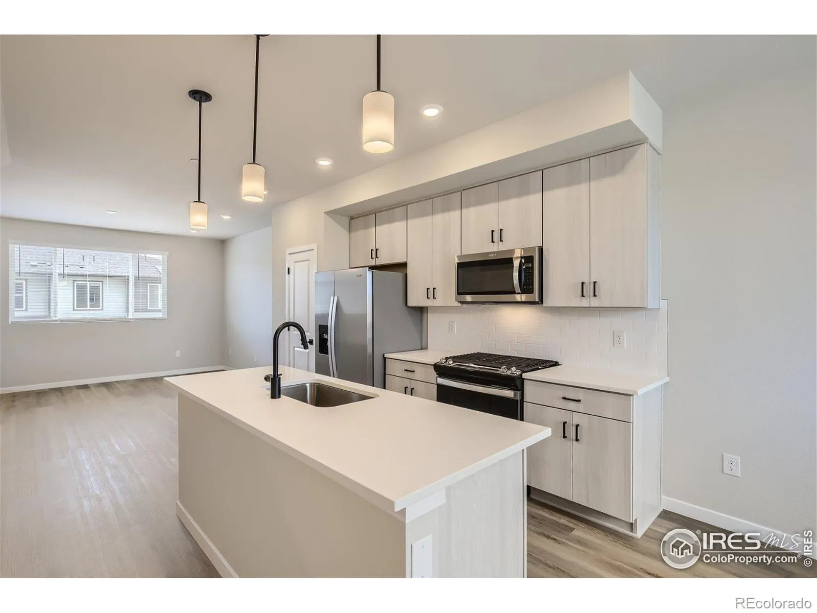 Welcome to 2379 E Suniga! This stunning Horsetooth floorplan in the Waterfield community combines modern design with thoughtful functionality across three spacious floors. Featuring two primary suites, each with a private bath and walk-in closet, this home is perfect for multi-generational living or hosting guests. The first two levels showcase durable luxury vinyl plank flooring, while the third floor offers soft, plush carpeting for comfort and warmth. The chef’s kitchen is a showstopper, awarded #1 Northern Colorado Kitchen Design under $1M in 2024, complete with upgraded soft-close cabinets, Snowridge granite countertops, and plenty of space for cooking and entertaining. The open layout flows seamlessly from the kitchen to the great room and dining area, creating a perfect space for gatherings or everyday living. Outside, enjoy a low-maintenance yard and all the perks of the Waterfield community, including access to trails, parks, and neighborhood amenities – all without the burden of a metro tax. Every detail of this home has been carefully designed to complement your lifestyle. Don’t miss the chance to make this modern, thoughtfully crafted property your next home! Move-In Ready!