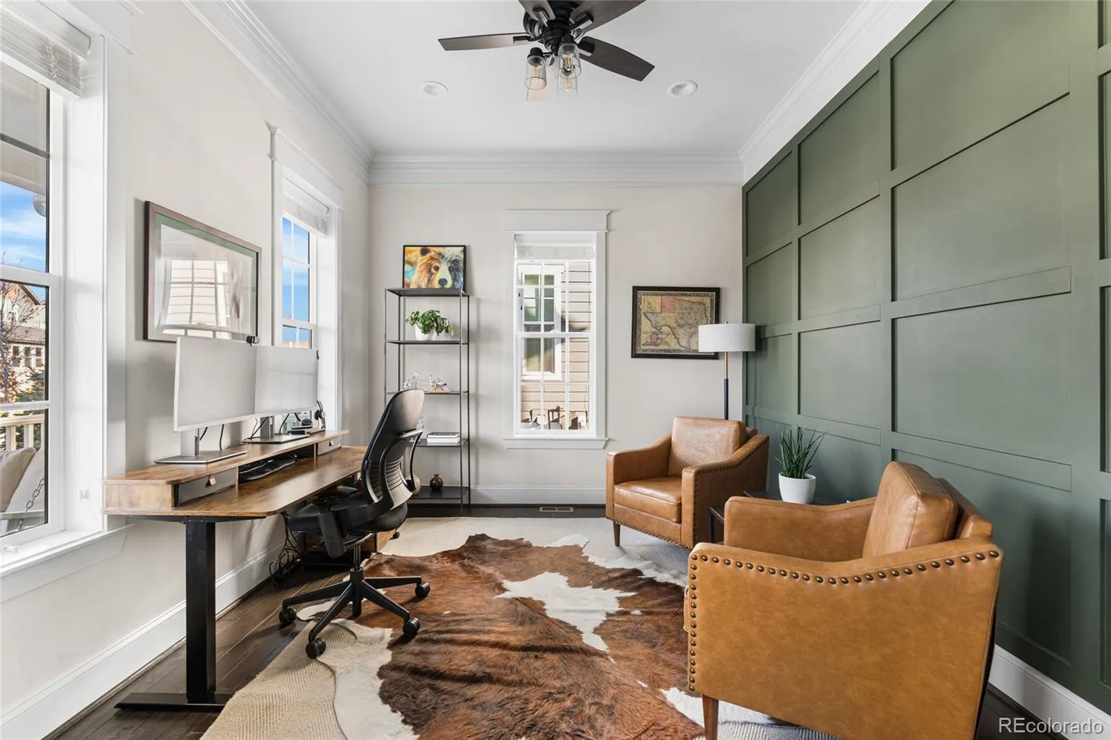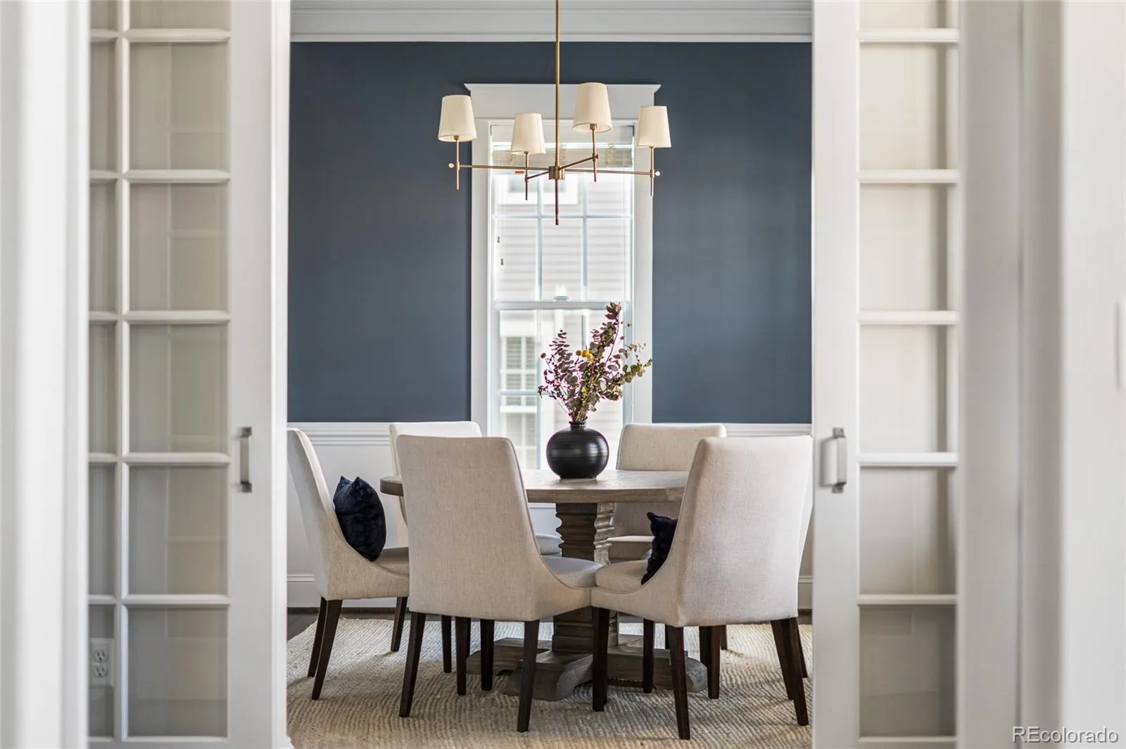 Every now and then something extra special comes along and this Parkwood Homes “Chesapeake” plan checks all those boxes, and then some. This residence combines historic traditional American architecture, thoughtful craftsmanship, and elegance with modern livability. Enjoy finishes that are rare and hard to come by: custom upgrades, 10’ ceilings, hardwood floors on above ground living areas, rounded corners, smooth wall finish, crown molding & millwork. Make your way up the expansive covered front porch & enter the warm & inviting foyer, flanked by dual formal rooms.The heart of the home opens into a light-filled living area centered around a shiplap-detailed, double-sided fireplace and a chef’s kitchen. You’ll find white shaker cabinetry, sleek counters, a nine-foot gray accent island, double ovens, a pot filler, and a butler’s pantry complete w/ wine fridge & display cabinetry – every detail designed with both style & functionality in mind. Upstairs, the primary suite is a true retreat with tray ceilings, spacious walk-in closets, and a luxurious bath with an oversized walk-in shower. Two additional bedrooms, a full bath, and a well-appointed laundry room complete the upper level. The finished basement continues the home’s quality finishes, offering an additional living area, a full wet bar with beverage fridge & microwave, a guest bedroom, and a full bath. Outside, enjoy Colorado’s sunshine on the private back deck overlooking low-maintenance turf & landscaped beds. The oversized three-car garage offers both front & rear entries for convenience and storage flexibility. Living in Sterling Ranch means more than just a beautiful home – it’s a lifestyle. Residents enjoy access to resort-style amenities such as pool, clubhouse, fitness center, pickleball courts & miles of trails and open space. Nearby Chatfield, Roxborough, and Waterton Canyon Parks offer endless opportunities for outdoor recreation.
