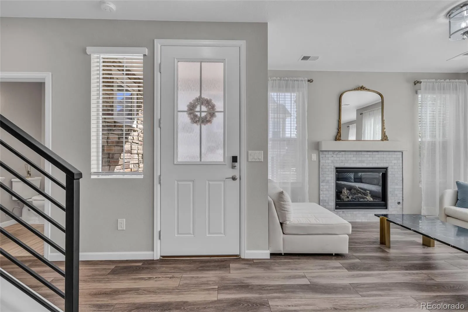 Welcome to the exquisite Sorrel Ranch community! This tucked-away gem blends modern style with everyday comfort. Step inside from the private side entrance to an abundance of natural light on the main level with beautiful modern flooring throughout. The entertaining friendly, eat-in kitchen features a large granite island, designer tile backsplash, and stainless-steel appliances. Cozy up by the gorgeous custom-tile fireplace that is the center piece of the living room. Step out to the private patio just off the dining area, perfect for morning coffee or afternoon grilling. Upstairs, you’ll find two spacious bedrooms, each with its own en-suite full bath and walk-in closet with generous storage. Thoughtful upgrades, like the open, elegant staircase railing, creating a clean, contemporary feel throughout. The laundry is on the main level. Also, the attached home accessible one-car garage plus driveway parking makes life simple. The pool is just a few steps away. Minutes to Southlands Mall, shopping, restaurants, and entertainment, with quick access to C-470 and DIA. All within the sought-after Cherry Creek School District. This is truly a turnkey property with standout finishes, luxury where it counts and comfort where you live. Don’t miss this one!