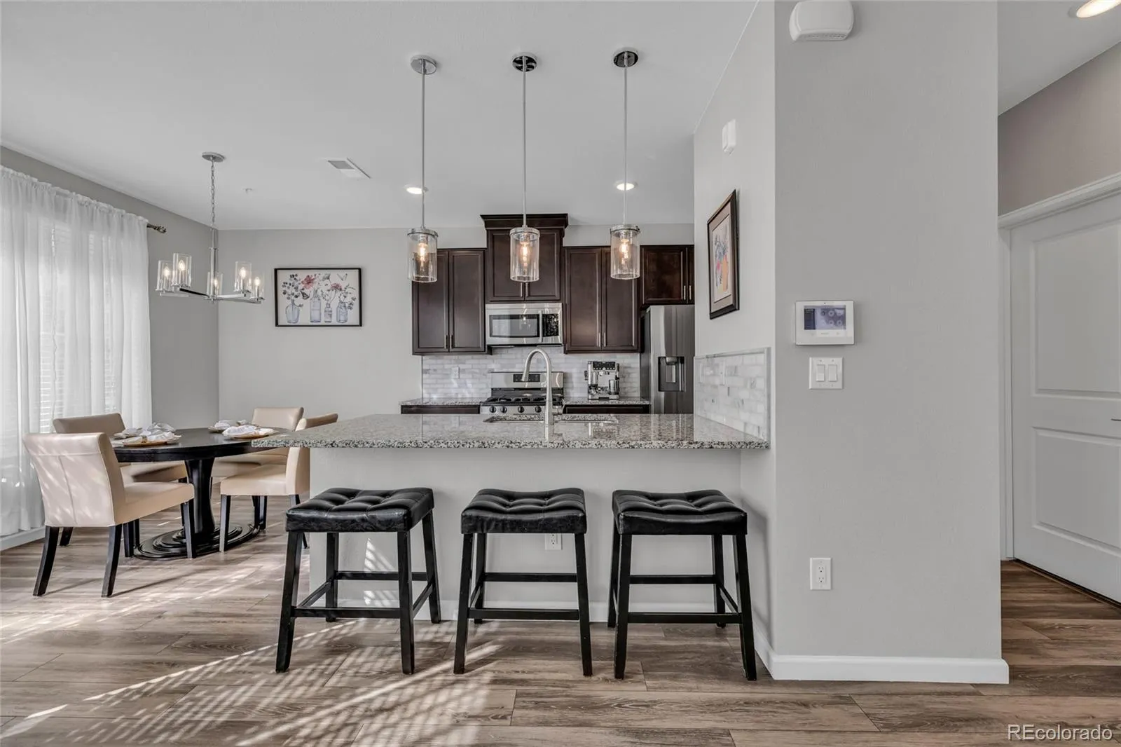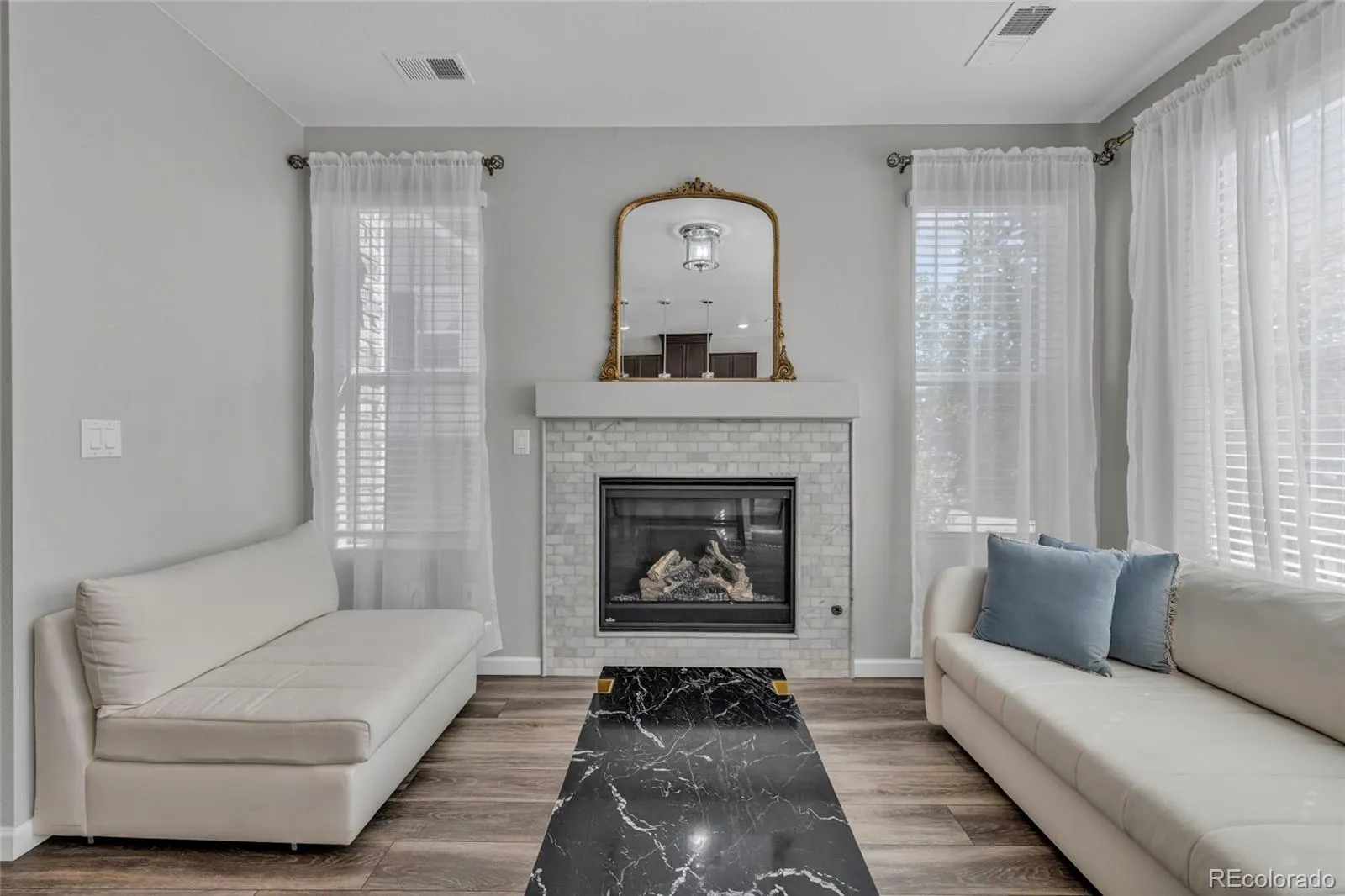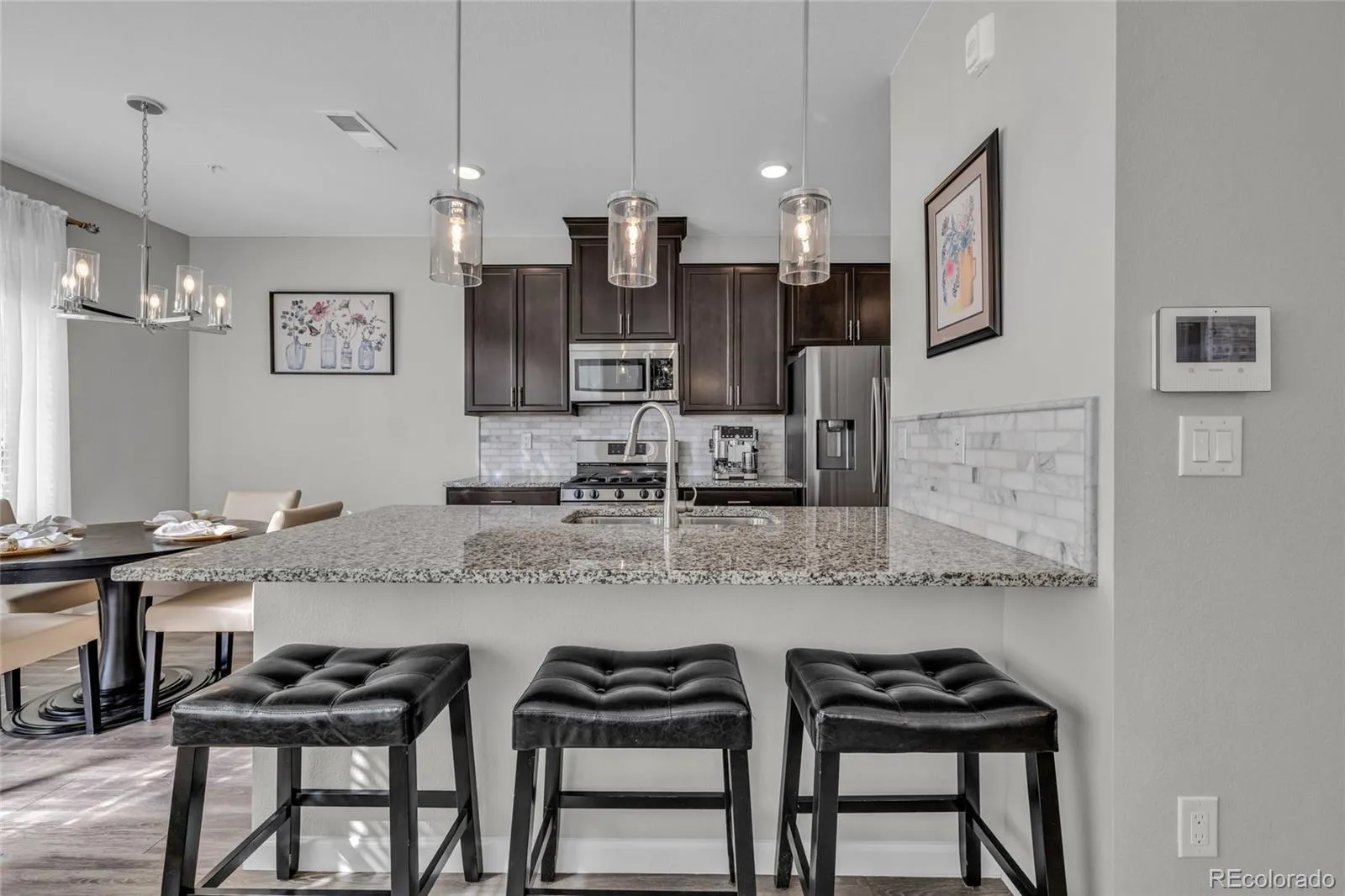 Welcome to the exquisite Sorrel Ranch community! This tucked-away gem blends modern style with everyday comfort. Step inside from the private side entrance to an abundance of natural light on the main level with beautiful modern flooring throughout. The entertaining friendly, eat-in kitchen features a large granite island, designer tile backsplash, and stainless-steel appliances. Cozy up by the gorgeous custom-tile fireplace that is the center piece of the living room. Step out to the private patio just off the dining area, perfect for morning coffee or afternoon grilling. Upstairs, you’ll find two spacious bedrooms, each with its own en-suite full bath and walk-in closet with generous storage. Thoughtful upgrades, like the open, elegant staircase railing, creating a clean, contemporary feel throughout. The laundry is on the main level. Also, the attached home accessible one-car garage plus driveway parking makes life simple. The pool is just a few steps away. Minutes to Southlands Mall, shopping, restaurants, and entertainment, with quick access to C-470 and DIA. All within the sought-after Cherry Creek School District. This is truly a turnkey property with standout finishes, luxury where it counts and comfort where you live. Don’t miss this one!