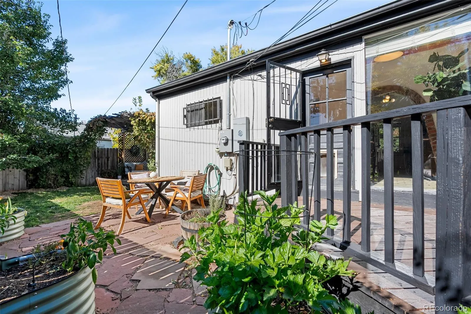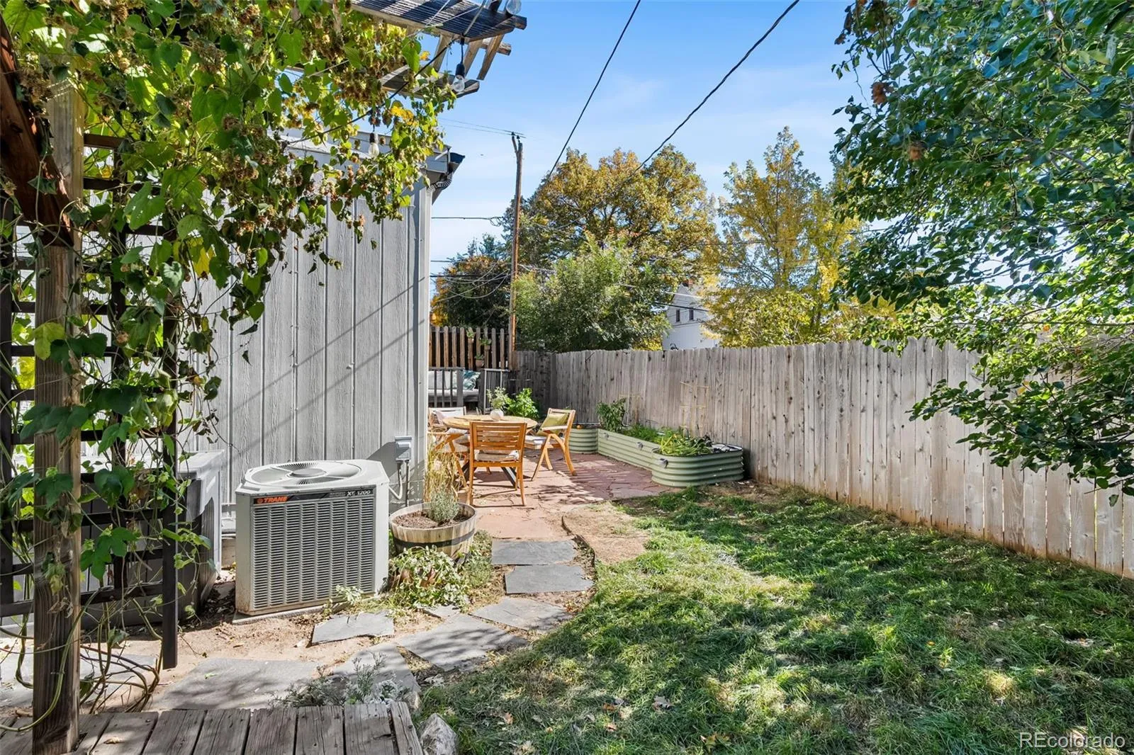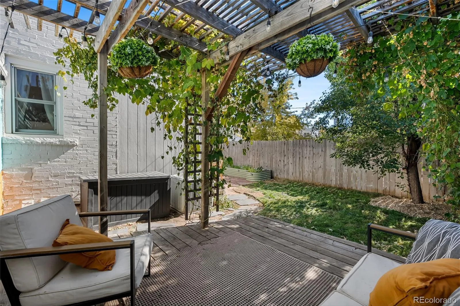 Charming half duplex in an UNBEATABLE location! Historic Alamo Placita Park is literally around the corner! Bike to Cheesman (1 mile away), 3 Blocks from Cherry Creek Bike Path/ Denver Country Club Bike Path, Speer Blvd Bike Path- 2 blocks from shopping, coffee shops and great restaurants on 6th Ave- a quick walk to Governer’s Park. One mile from Cherry Creek Shopping District and Whole Foods! Hardwood floors in the main living area with large windows create a sunny, open living space- living room includes a sky light and gas fireplace perfect for entertaining. Primary bedroom boasts an ensuite totally remodeled bathroom and a sunny flex room. Kitchen includes stainless appliances and an incredible sunroom- which opens to a private deck and a “must see” yard featuring raised bed planters and a pergola for outdoor living and entertaining! This unique yard does not open to an alley (garage faces the street!) making it a quiet oasis for entertaining and relaxing. No HOA. City living at its best!