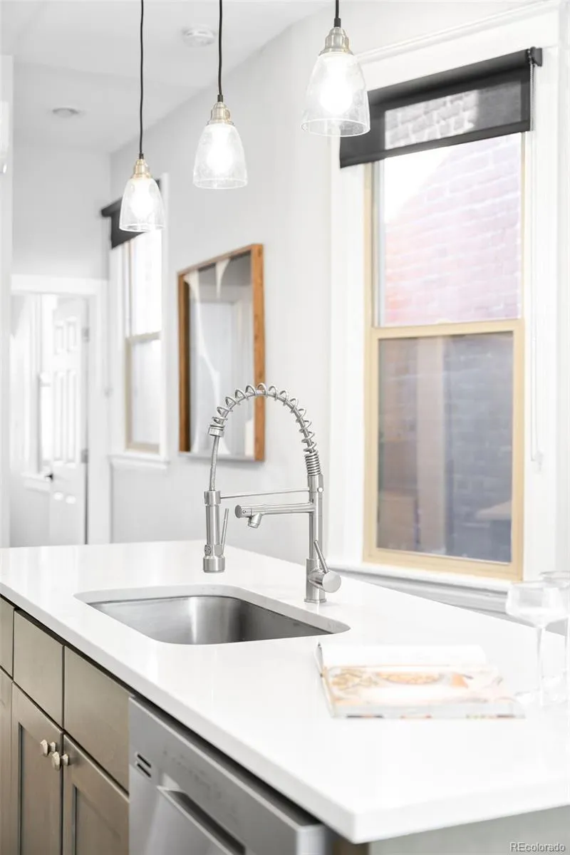 This historic townhome near Denver’s vibrant RiNo and Whittier neighborhoods showcases timeless character with thoughtful updates. Tall 10-foot ceilings create a bright, airy atmosphere, while a floor-to-ceiling gas fireplace anchors the open-concept living area in modern sophistication. The kitchen maximizes space with a center island with seating, updated appliances and refined finishes — ideal for everyday living and entertaining alike. The bedroom is a cozy escape with ample closet space and a nearby bathroom with sleek, updated finishes. Comfort meets efficiency with separate AC units, a tankless water heater, and newly updated systems including sewer and electrical panels. Enjoy effortless indoor-outdoor living with a cozy, private backyard, all within a park-facing setting and no HOA (party wall agreement). Featuring new flooring, fresh tile work, and in-unit laundry, this home offers modern ease in one of Denver’s most dynamic locations.