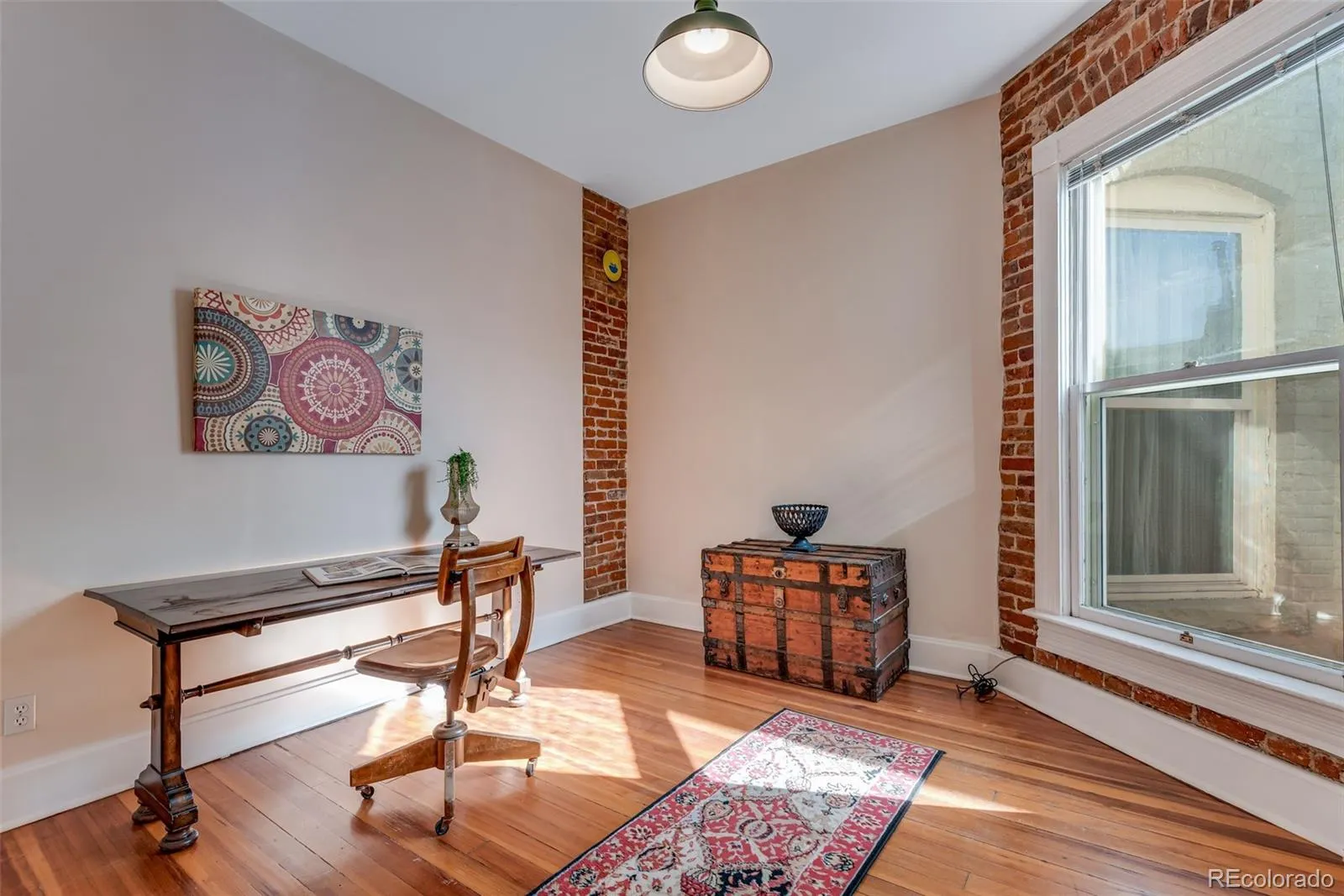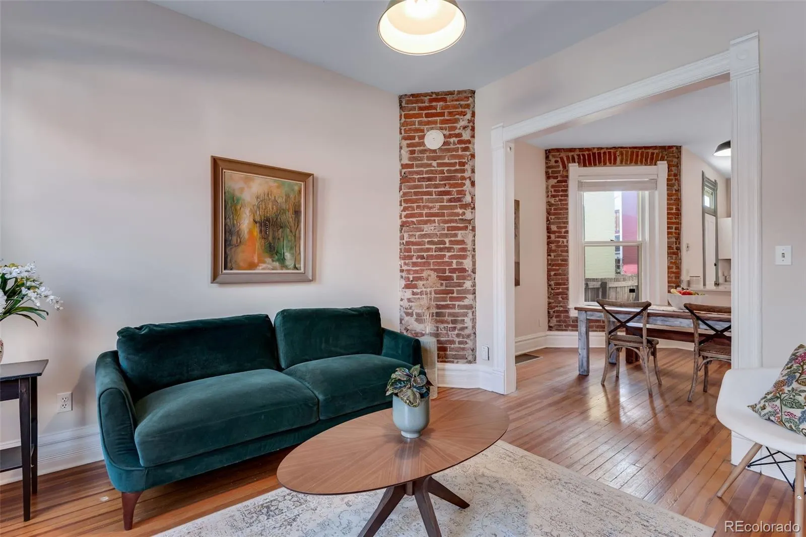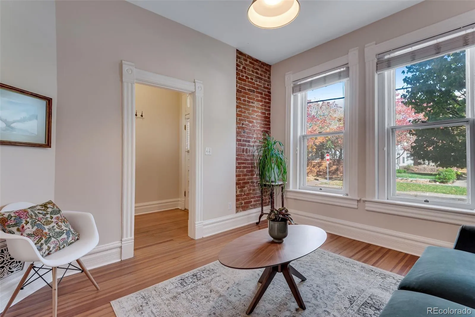 Remarkable townhome in one of Denver’s most beautiful landmark buildings. This two-story townhome in the New Terrace building (circa 1889) has been tastefully updated while retaining many of its beautiful original features, including wood floors, original trim and molding, entry hall with classic banister, and architectural detailing. Combine these features with an updated kitchen, open floor plan, large windows, high ceilings, gorgeous marble bath with large walk-in shower and a lovely patio… and you have a truly unique property. The first floor is warm and inviting; a large picture window overlooking well cared for landscaping floods the home with natural light. New quartz kitchen countertops, exposed brick, fresh paint and updated systems make this a worry-free and comfortable home. The first floor powder room and lower level laundry / utility room are functional and nicely finished. Upstairs, you will find two large bedrooms. One has a large, walk-in closet and the other features French doors. The second floor configuration is flexible as either room could function well for a primary bedroom, office, nursery or guest bedroom. Topping off the townhome is an exceptionally beautiful remodeled bath with a large walk-in floor-to-ceiling shower and a separate claw foot tub. Great natural light will brighten up anyone’s day after bathing in this amazing space. The secluded private yard features planting beds and a nice patio and is wonderful for enjoying summer evenings and entertaining guests. Just a few steps out the back gate is your deeded parking space in a lot adjacent to the building and a private open space with lovely trees, benches and paths. The unbeatable location in the San Rafael Historic District is walkable and quiet. Tree-lined streets of lovely 1880’s homes immediately adjacent to shopping, grocery stores, restaurants and cafes. Come see this piece of Denver history and make it part of your future!