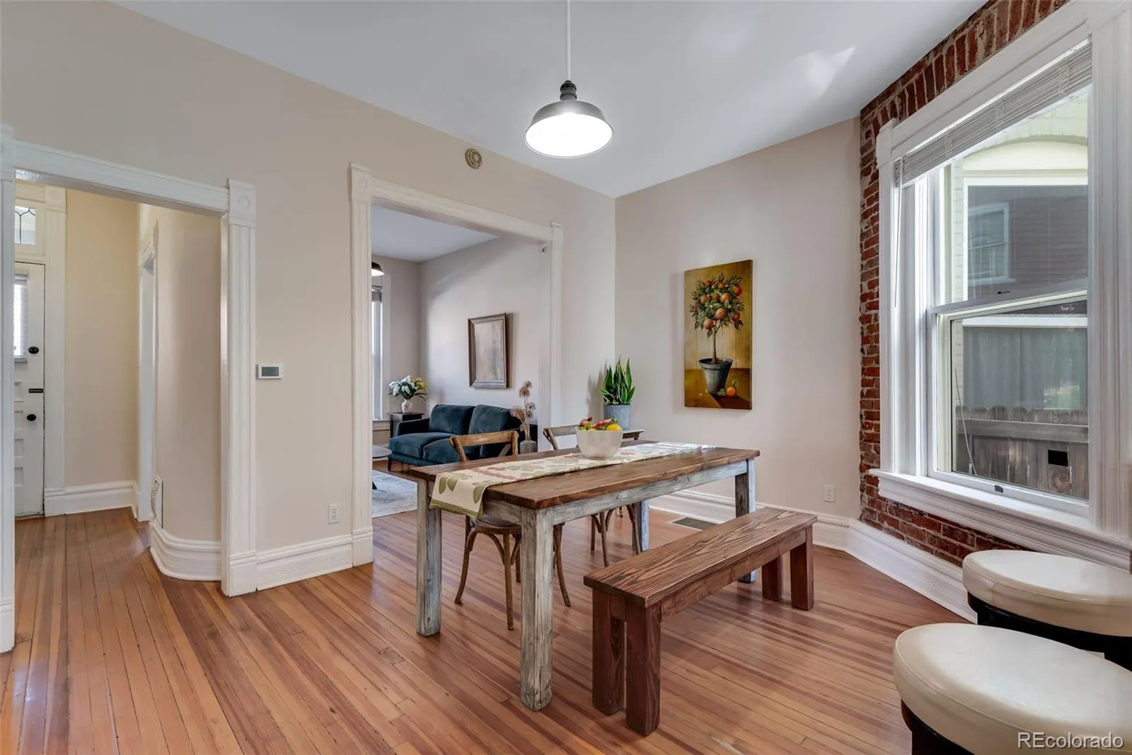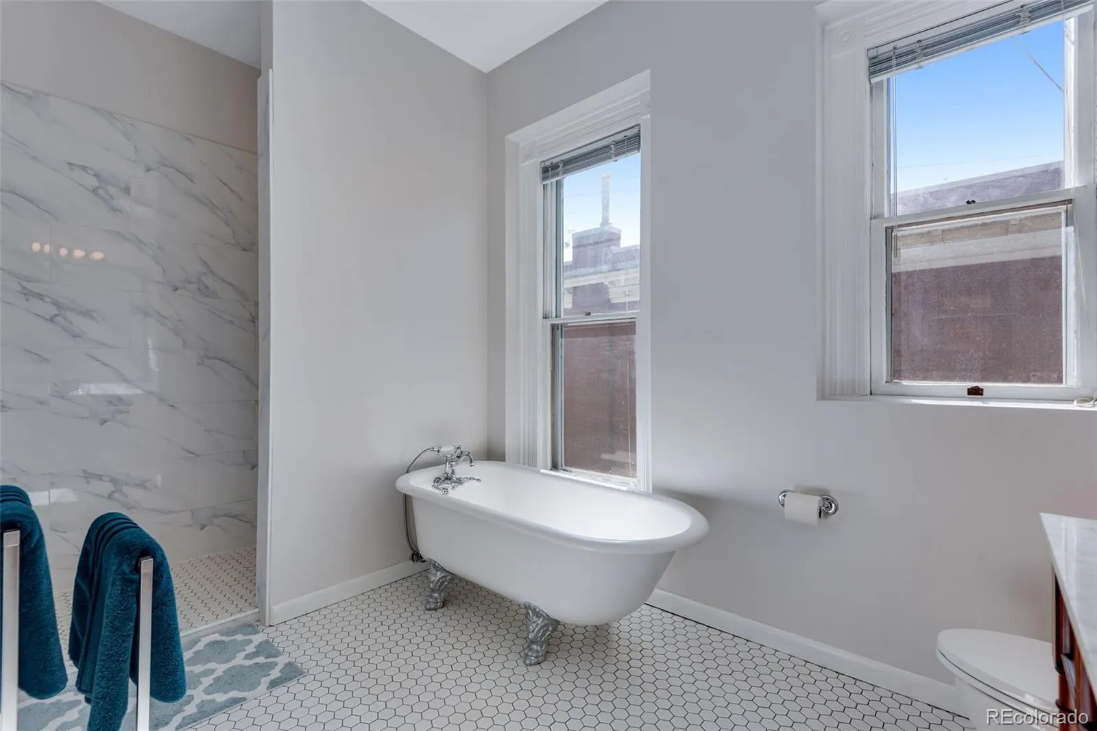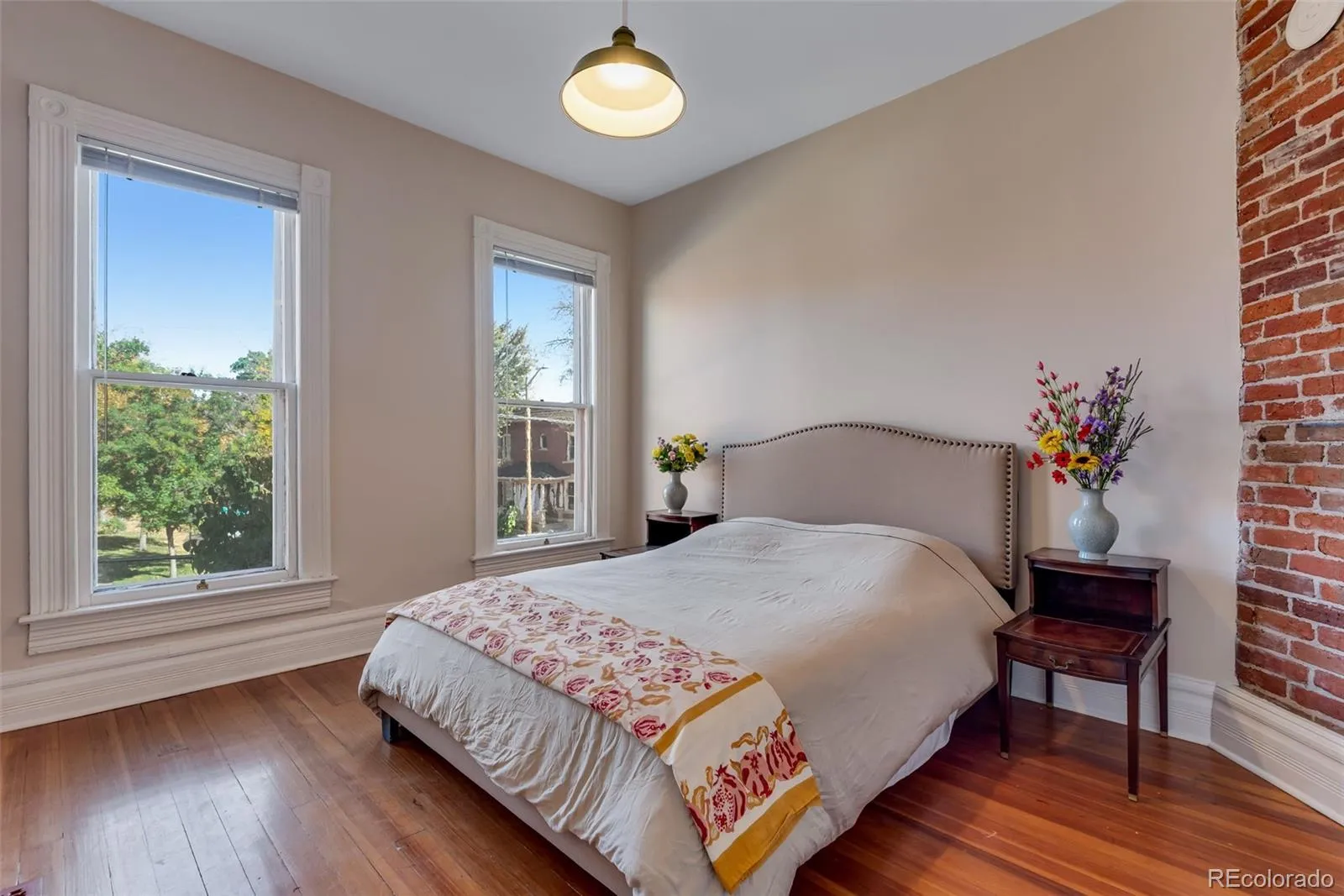 Remarkable townhome in one of Denver’s most beautiful landmark buildings. This two-story townhome in the New Terrace building (circa 1889) has been tastefully updated while retaining many of its beautiful original features, including wood floors, original trim and molding, entry hall with classic banister, and architectural detailing. Combine these features with an updated kitchen, open floor plan, large windows, high ceilings, gorgeous marble bath with large walk-in shower and a lovely patio… and you have a truly unique property. The first floor is warm and inviting; a large picture window overlooking well cared for landscaping floods the home with natural light. New quartz kitchen countertops, exposed brick, fresh paint and updated systems make this a worry-free and comfortable home. The first floor powder room and lower level laundry / utility room are functional and nicely finished. Upstairs, you will find two large bedrooms. One has a large, walk-in closet and the other features French doors. The second floor configuration is flexible as either room could function well for a primary bedroom, office, nursery or guest bedroom. Topping off the townhome is an exceptionally beautiful remodeled bath with a large walk-in floor-to-ceiling shower and a separate claw foot tub. Great natural light will brighten up anyone’s day after bathing in this amazing space. The secluded private yard features planting beds and a nice patio and is wonderful for enjoying summer evenings and entertaining guests. Just a few steps out the back gate is your deeded parking space in a lot adjacent to the building and a private open space with lovely trees, benches and paths. The unbeatable location in the San Rafael Historic District is walkable and quiet. Tree-lined streets of lovely 1880’s homes immediately adjacent to shopping, grocery stores, restaurants and cafes. Come see this piece of Denver history and make it part of your future!