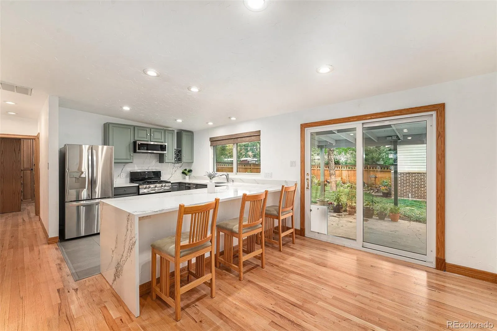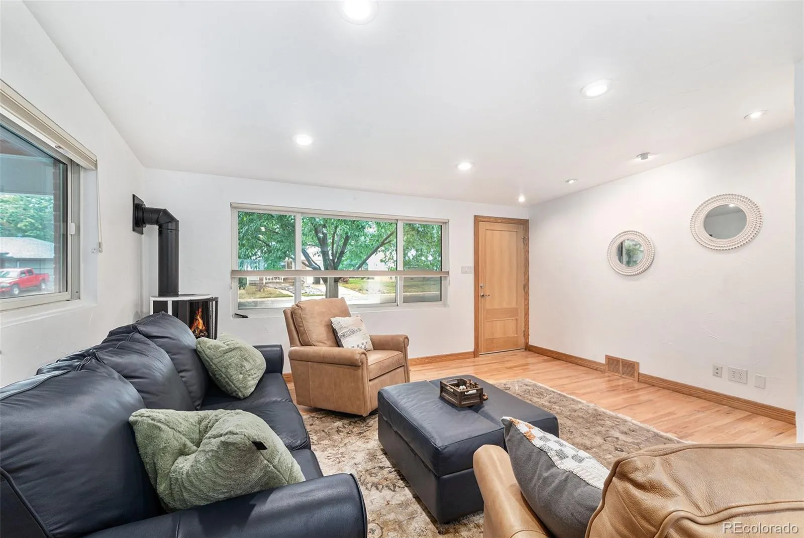 **OPEN HOUSE THIS SATURDAY, OCT 25th, 1:30-3:30 p.m.**Step into this stunning 3-bedroom, 2-bath home where timeless mid-century modern design meets the best of today’s style and comfort. From the moment you arrive, the home’s curb appeal shines — with mature shade trees, colorful perennials, and decorative native rock accents. Inside, natural light pours into an open, airy floor plan featuring vaulted ceilings and gleaming hardwood floors. The gorgeous chef’s kitchen is the heart of the home, boasting quartz countertops, a dramatic waterfall island, and top-of-the-line stainless steel appliances. The spacious living room invites relaxation with its cozy gas-fueled chiminea and views of the lush front yard. Each of the three bedrooms includes a built-in closet organizer, offering thoughtful storage and flexibility for a home office, guest room, or creative space. Both bathrooms have been beautifully updated with sleek modern finishes, including stylish tilework, contemporary vanities, and elegant fixtures. Step outside to your private backyard oasis. It’s the perfect setting for morning coffee, al fresco dining, or winding down at the end of the day. A standout feature of this home is the detached 2.5-car garage, built in 2020. With ample room for two cars and a dedicated workshop area, it’s ideal for hobbyists, craftspeople, or anyone in need of extra storage. You’ll also appreciate the covered side sitting area and convenient storage shed that keeps lawn and garden tools neatly tucked away. Located just minutes from Old Town Arvada, this home offers easy access to local favorites — from charming shops and restaurants to parks, trails, and community events. With its combination of character, style, and thoughtful updates, this home is truly a rare find. Don’t miss your opportunity to make it yours!