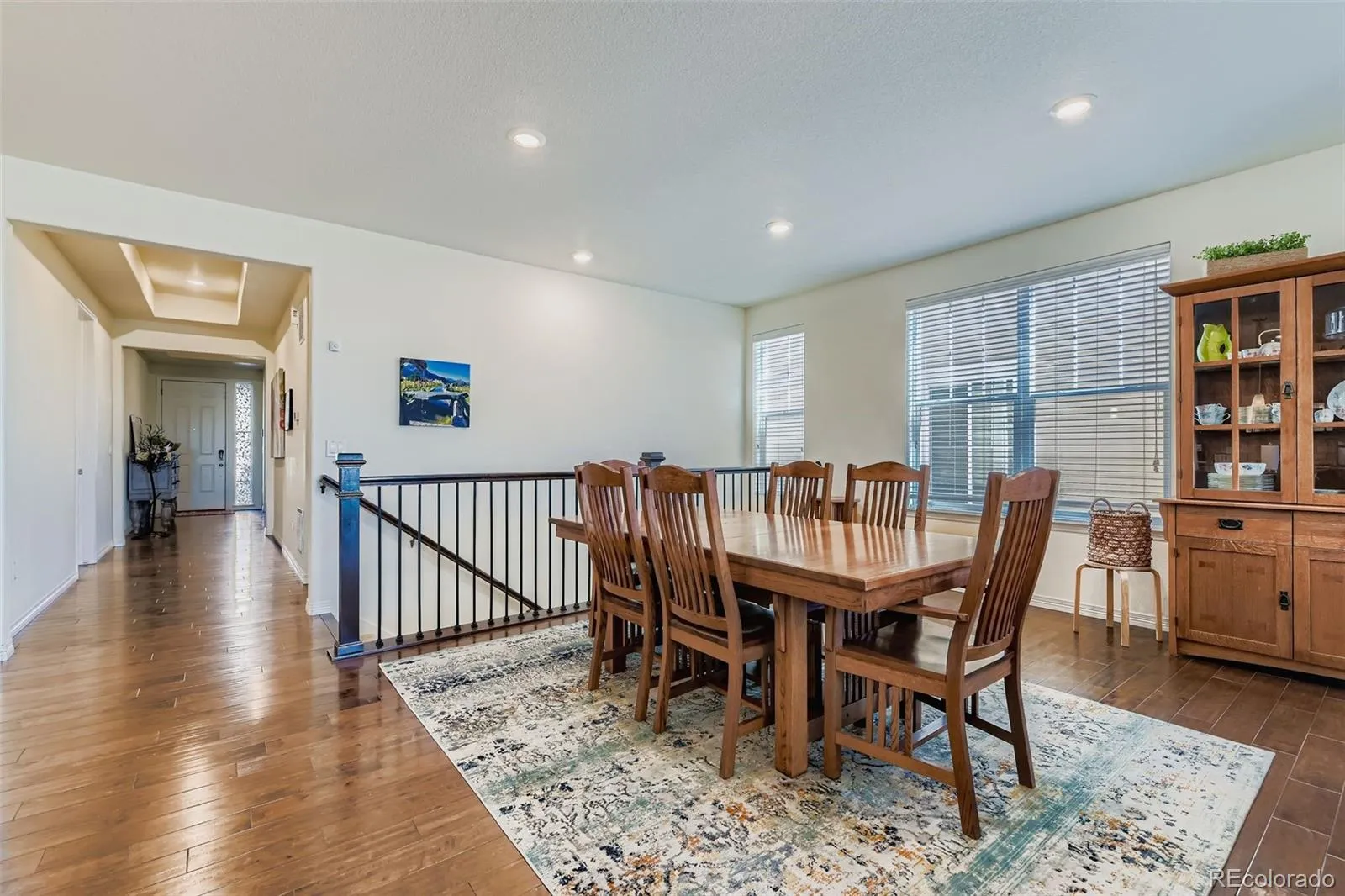 The spacious master suite features wood floors, a bright south-facing bay window, a generous walk-in closet, and an oversized shower. Enjoy the airy ambiance from the 9-foot ceilings and 8-foot doors throughout the main level. Step outside onto a large covered deck with ceiling fans and sun shades, offering stunning mountain and foothill views. Professionally landscaped xeriscaping enhances the home’s curb appeal.