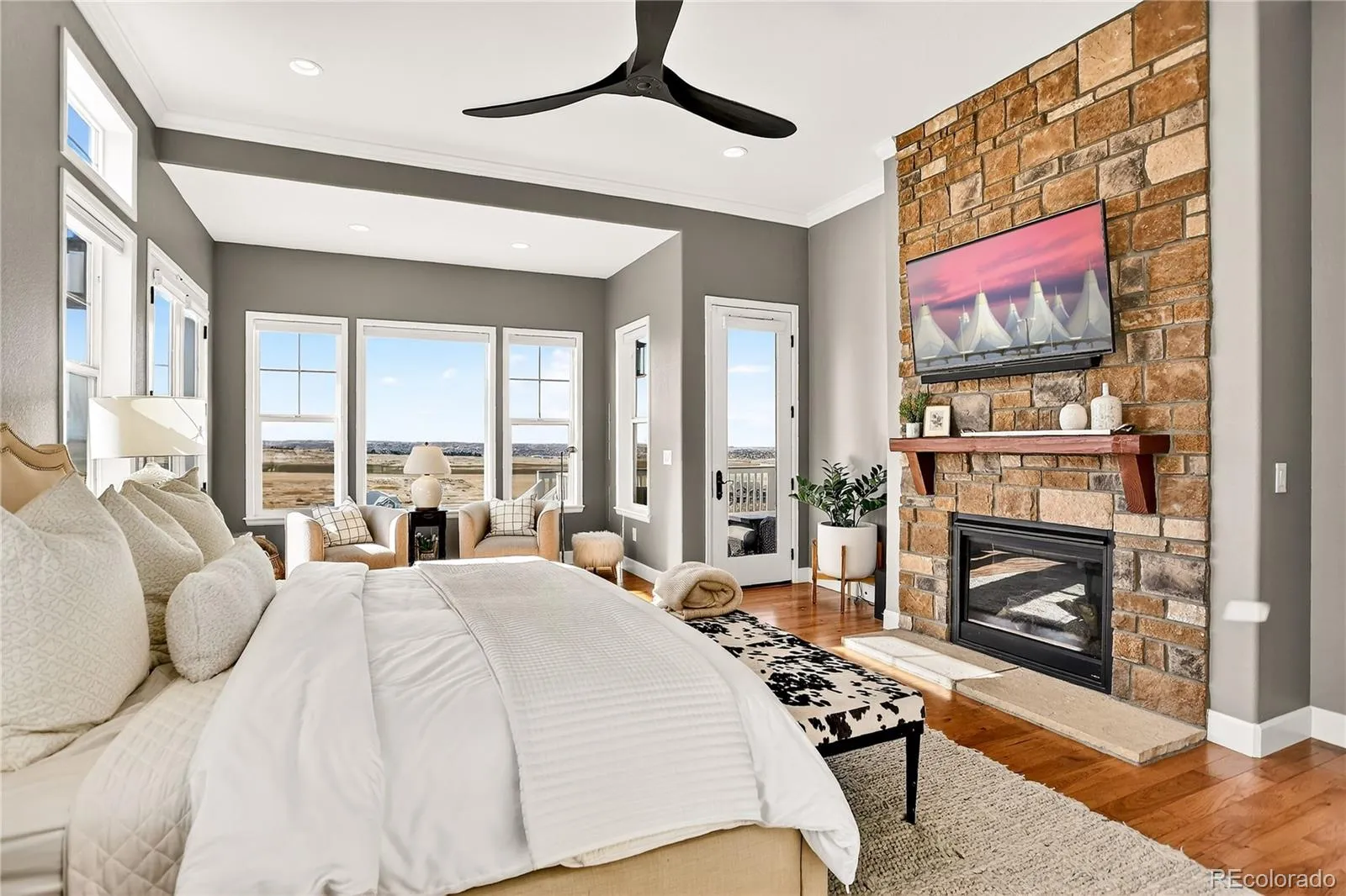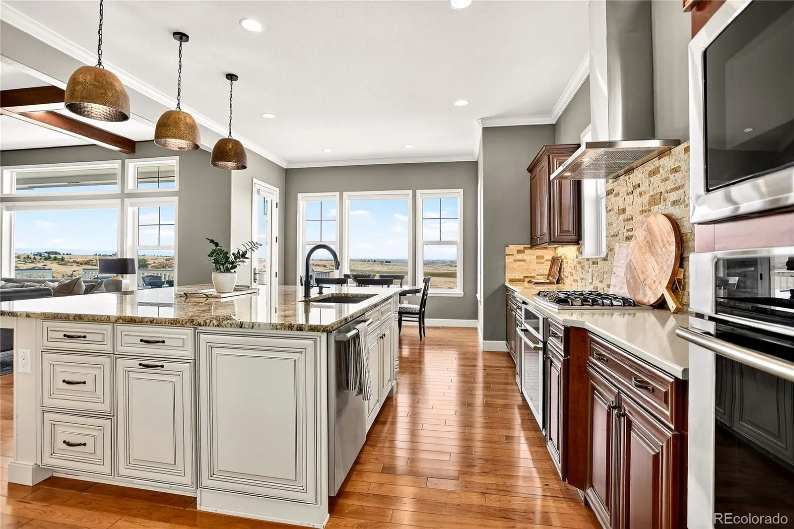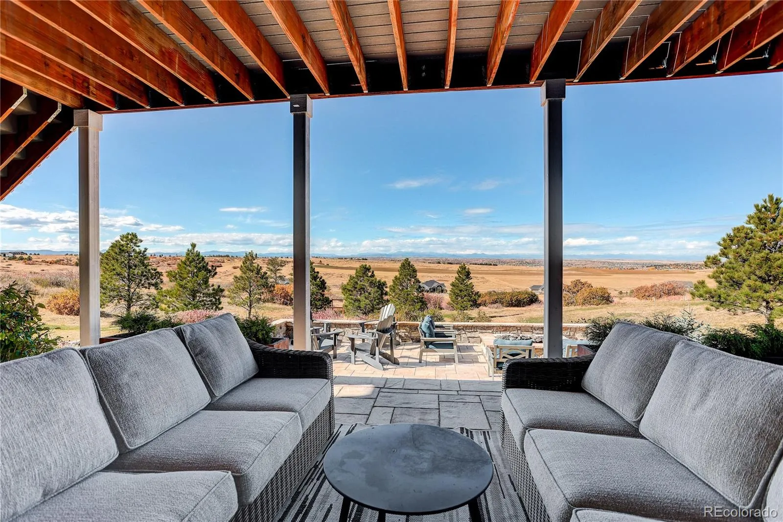 Introducing 8980 Red Primrose where breathtaking mountain views, endless open space and elegant design come together on a sprawling 3-acre estate bordering Parker & feeding into highly-rated Parker schools. This 6,500 sq. ft. walk-out ranch blends elevated style with functional luxury offering incredible indoor & outdoor living spaces designed to impress at every turn. Step inside to find a thoughtfully crafted floorplan & timeless finishes that immediately set the tone for gracious living. The gourmet kitchen is a showpiece, complete with high-end appliances, a massive center island & a spacious walk-in pantry. The adjoining great room with coffered ceilings & rustic stone fireplace opens to a wall of windows that perfectly frame sweeping Front Range views – a daily reminder of why Colorado is so special. The primary retreat is a true sanctuary, featuring French doors that lead to a private deck, a cozy fireplace & a spa-worthy en-suite with dual vanities, a stunning hammered copper soaking tub & walk-in shower. The custom closet connects directly to the laundry room for everyday ease. Two additional bedroom suites, a dedicated home office, a versatile bonus room with French doors to a private patio & a well-planned mudroom with built in storage complete the main level. The finished walk-out basement mirrors the beauty above offering 3 additional bedrooms, 2 baths, a media room wired for multiple screens, a well-appointed bar & a spacious rec room opening yet another outdoor entertaining area. Whether hosting summer barbecues, watching the sun set over the Rockies or tending to the fenced garden, this backyard oasis offers a level of privacy & tranquility that’s hard to match. Car enthusiasts will love the oversized 4-car garage, providing ample room for vehicles, tools & toys. With its unparalleled mountain views, easy access to Parker’s amenities, and luxury finishes throughout, this property offers a rare opportunity to experience Colorado living at its finest.