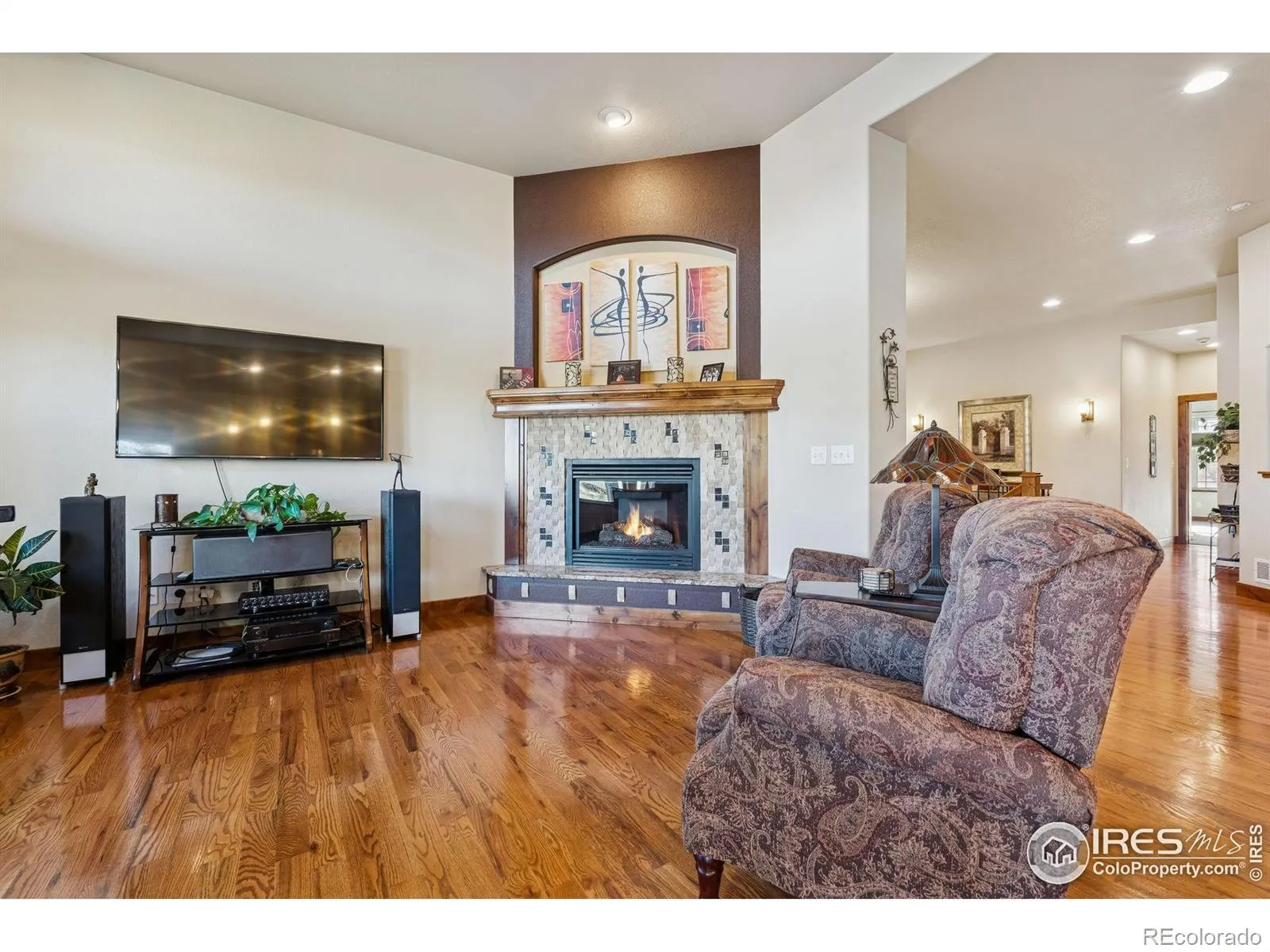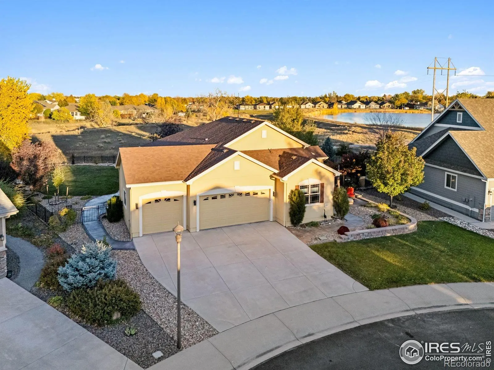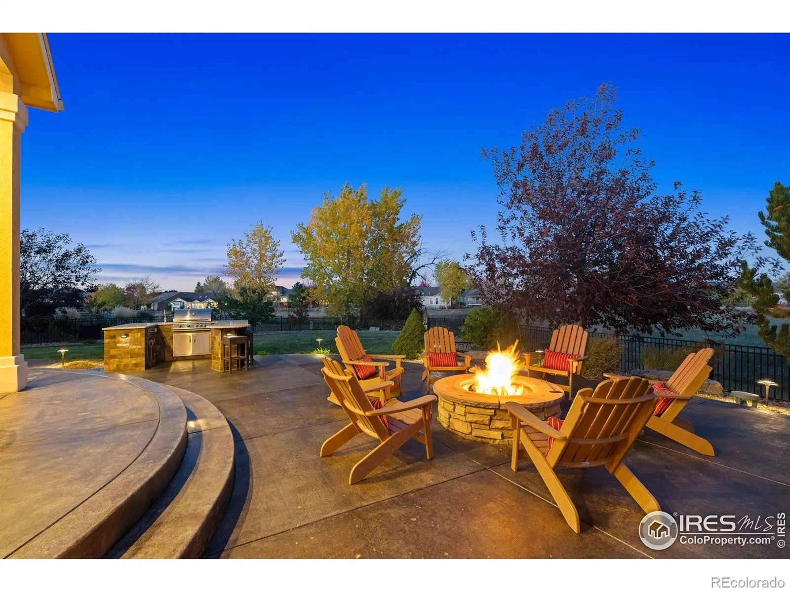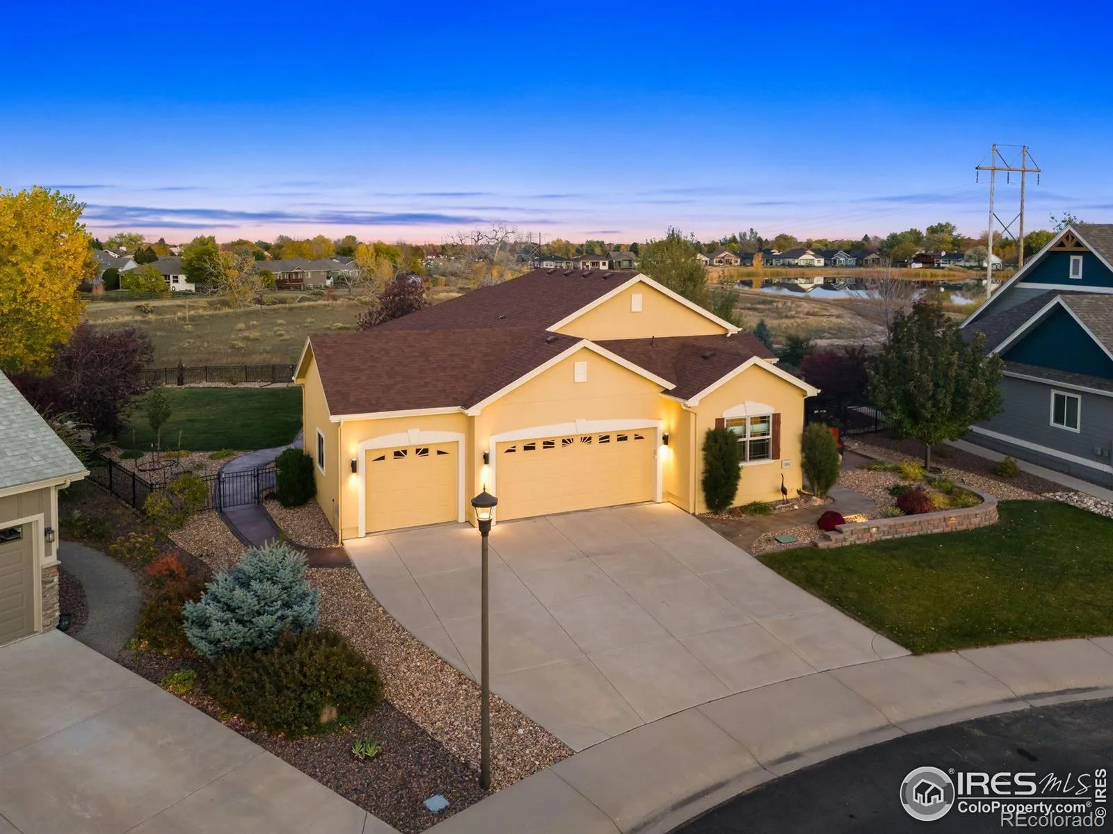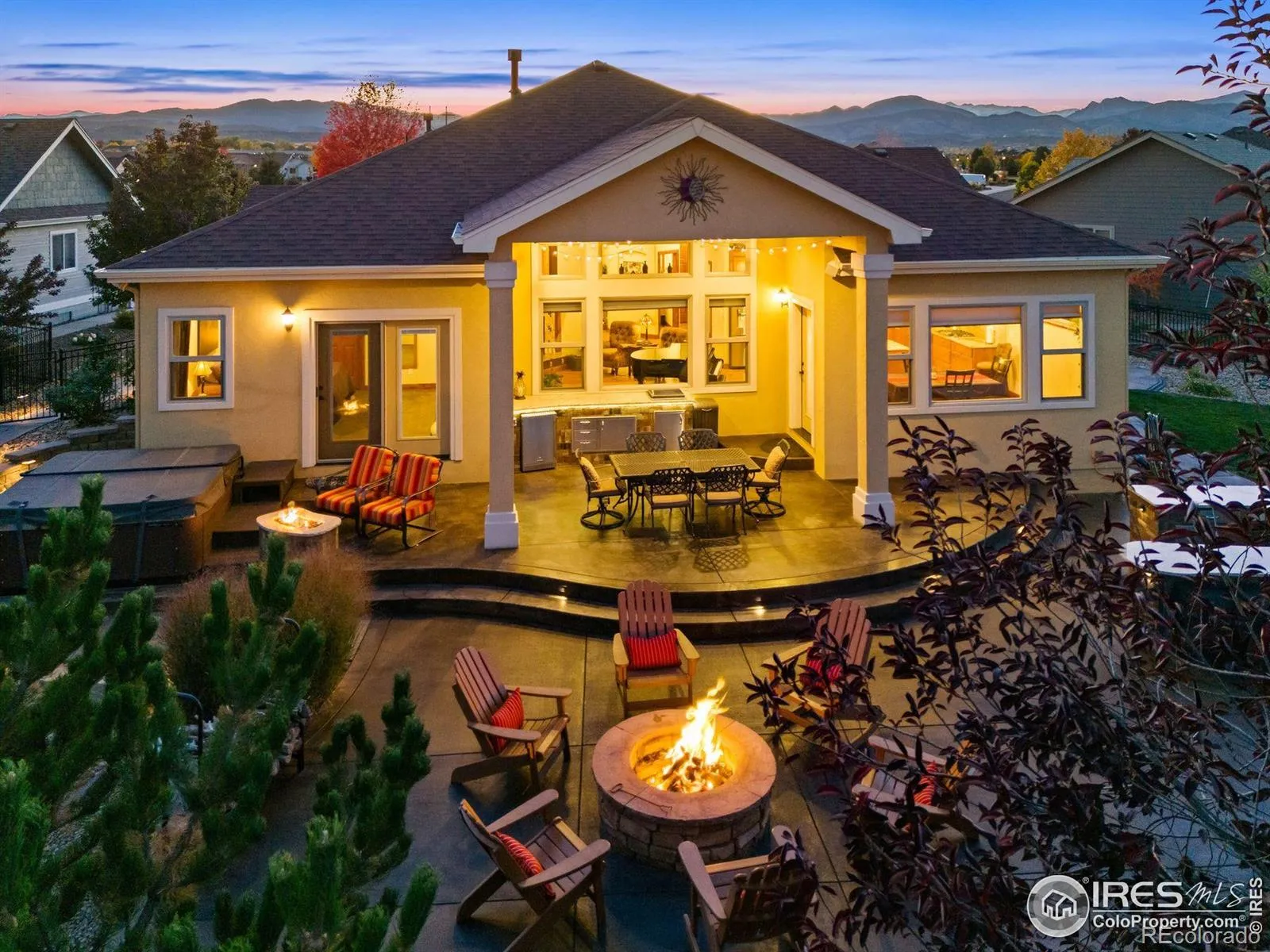 Where Quiet Meets Colorado Beauty. Experience elevated living in this spacious, light-filled home designed for comfort, versatility, and quiet luxury. The main level offers two private suites-ideal for multi-generational living or hosting guests with ease.The open-concept kitchen flows seamlessly into the dining and living areas, featuring granite countertops, hardwood floors, and stainless steel appliances and a beautiful office with French doors. Between the basement and main level, soundproof insulation ensures a peaceful environment, minimizing noise transfer and enhancing everyday comfort.The finished basement extends the home’s livable space with a dedicated gym tucked behind sliding barn doors, and flexible room configurations. A central music system connects eight zones throughout the home, indoors and out, creating a seamless audio experience for entertaining or unwinding.Step outside to a beautifully landscaped backyard retreat with two fire pits (one gas, one wood-burning), a large patio, and hardwired dusk-to-dawn lighting. Backing to open space with tranquil water views, this outdoor sanctuary offers the perfect setting for sunset gatherings or peaceful mornings.With three bedrooms, four bathrooms, and thoughtful upgrades throughout, this home delivers both style and substance.