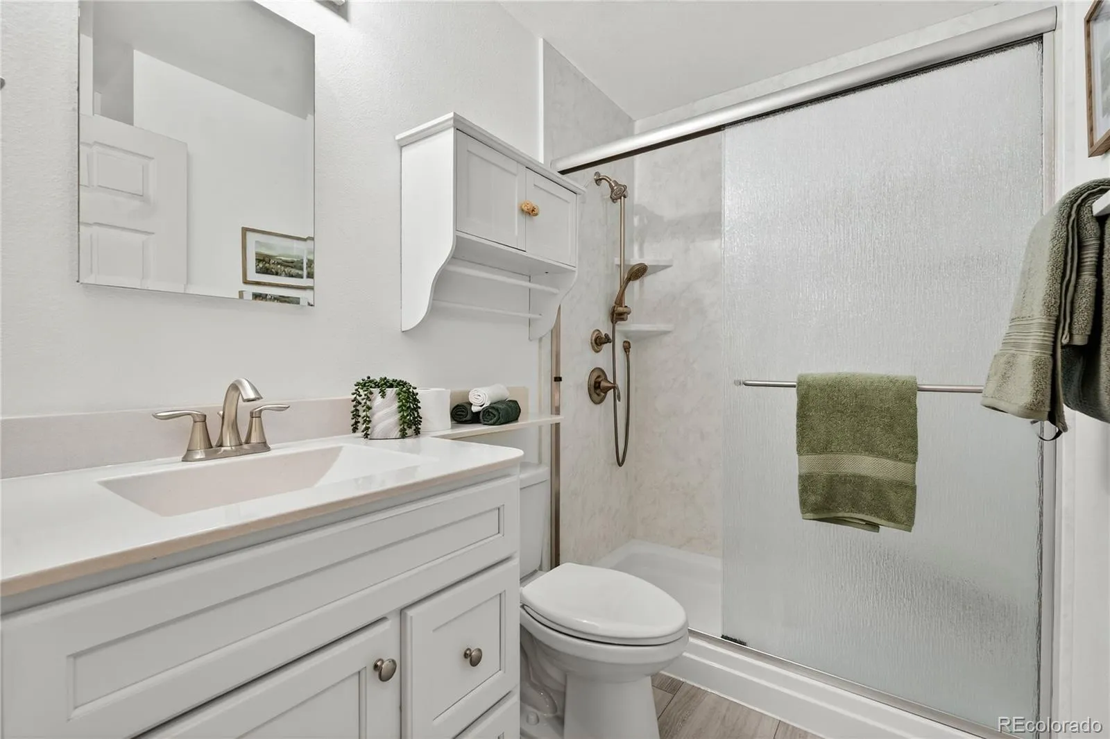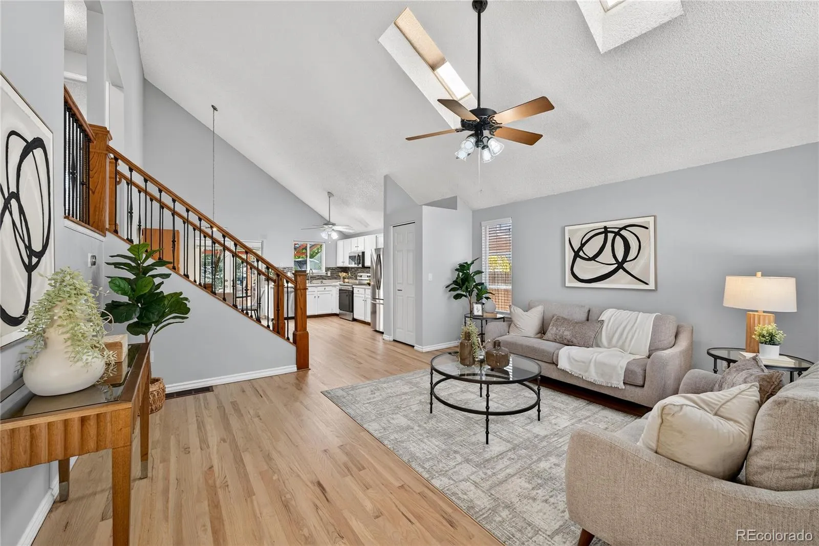 This charming and inviting home is nestled in a thriving tree-lined Littleton neighborhood where tranquility and community come together. Step inside to an open main level that immediately catches your eye with sleek hardwood flooring and a bright living room featuring soaring vaulted ceilings and skylights that bathe the space in natural light, creating a warm and uplifting atmosphere. The gorgeous kitchen is a true centerpiece with abundant cabinet space and a cozy eat-in area. Equipped with modern kitchen appliances installed in 2021, it is ready for any culinary adventure. Upstairs, two well-sized bedrooms are thoughtfully separated by a full bathroom, providing privacy and comfort for family or guests. The primary bedroom is a relaxing retreat boasting a spacious walk-in closet. The lower level expands your living space with a versatile bonus area ideal for a second living room, home office, or playroom, plus a convenient laundry closet, an additional bedroom, and another full bathroom to accommodate guests or family needs. This home has been meticulously maintained and thoughtfully updated with recent improvements including a beautifully remodeled bathroom completed in 2024, plush new carpet, and refreshed hardwood floors added in 2025, a brand new electrical panel, a state-of-the-art AC and furnace system installed in 2023, and a reliable new water heater from 2021 ensuring comfort and peace of mind. Step outside to discover a low-maintenance professionally landscaped backyard refreshed in 2025 offering a serene outdoor retreat surrounded by mature trees that enhance the peaceful ambiance. Whether you are entertaining on the patio or enjoying a quiet morning coffee, this backyard is designed for ease and relaxation. Perfectly positioned near C-470, this home offers the ideal blend of quiet neighborhood charm and convenient access to the best Littleton has to offer.