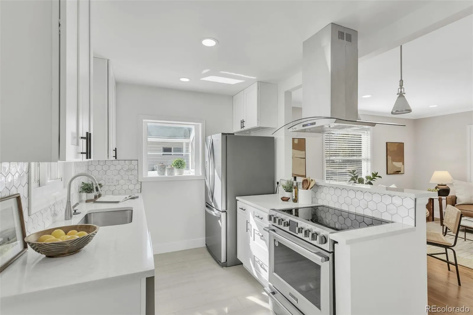 Meticulously renovated residence that perfectly blends modern luxury with classic craftsman charm. This stunning 3 bed, 2 bath home offers a living experience situated just moments from the vibrant Platt Park, Harvey park Rec Center and golf course. Freshly painted exterior and new stamped concrete pathway. The recently updated roof and gutters are painted in contemporary dark gray tones. Step inside and be captivated by the bright, open-concept living space where newly refinished hardwood floors gleam under natural light. This area flows seamlessly into the heart of the home: a chef-inspired gas stove kitchen. Here, you’ll discover brand-new shaker cabinetry, accented by a stainless steel hood and 2 new premium appliances. The kitchen has modern off white granite countertops, a designer backsplash and durable ceramic tile flooring. Also on the main floor you’ll find 2 bedrooms, with new paint and plush Berber carpeting and large closets. The cozy, fenced-in backyard features a shaded deck in the back of the yard. Surrounded by mature trees, this private haven truly feels like an escape from the everyday hustle while still living in the city! The lower level has an impressive entertainment suit. An additional kitchenette, complete with a full-size bar sink, offers the perfect setup for hosting guests. Adjacent to this space lies an expansive master suite, meticulously crafted to provide a tranquil retreat during Colorado’s warm summer days. There is a large walk in closet and built in safe! The nearby 3/4 bathroom features new surround tile on three walls, a stylish white vanity, new hardware and new toilet. For added convenience, a dedicated laundry room is also situated on this level. Used washer and dryer are included, but sold strictly “as is”. Rest assured, this home is as sound as it is beautiful. The furnace has been serviced, and newer air conditioning system. Centrally located home near Denver University and Advent heatlh Porter. Agents this is stunning!