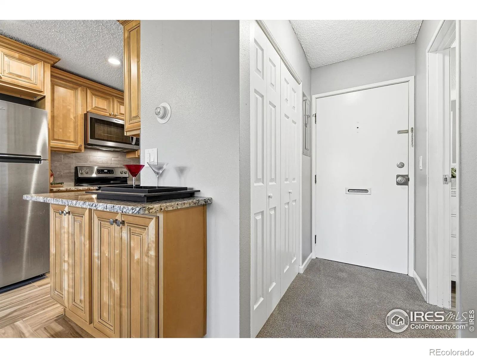 Newly remodeled1 bedroom/1 bathroom condo located on the second floor of the desirable Remington Post community in North Boulder. This secure locked building offers elevator access and with a carport and extra storage closet. Inside, the open floor plan offers a bright, airy living area that opens to a private balcony with scenic foothills views to enjoy your morning coffee. Remodeled kitchen with granite countertops, butternut cabinets, stainless steel appliances and LED lighting. The home is light, clean, and well-maintained, with newer sliding glass door leading to the balcony that brings in abundant natural light. All appliances are included, and tasteful updates throughout make it ready for immediate occupancy. Remodeled full bathroom with custom vanity and marble tiled shower/bath. The layout provides both a sense of openness and functional living space. Wall A/C unit, as well as ceiling fan. Residents of Remington Post enjoy a wide array of HOA amenities, including a heated salt water indoor pool, sauna, updated clubhouse, exercise room, tennis courts, outdoor basketball court, and secure building access. The nearby Howard Huston Park and close-by trail system offer easy access to outdoor recreation. Conveniently located near grocery store, Fitness Center, shops, coffee houses, and popular dining options such as The Cork, Vics Coffee House, local sushi restaurant. The property offers quick access to Foothills Parkway and the Diagonal Highway for easy access to Denver and Longmont. There is a newly completed bike trail close-by for enhanced mobility throughout the area. This bright and welcoming condo offers amazing value within the city of Boulder, combining comfort, location, and outstanding community amenities in one of Boulder’s most enduring and desirable neighborhoods.–