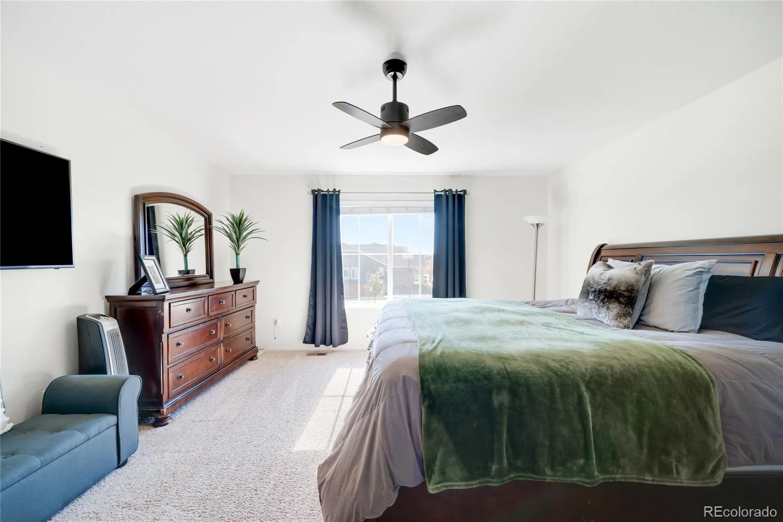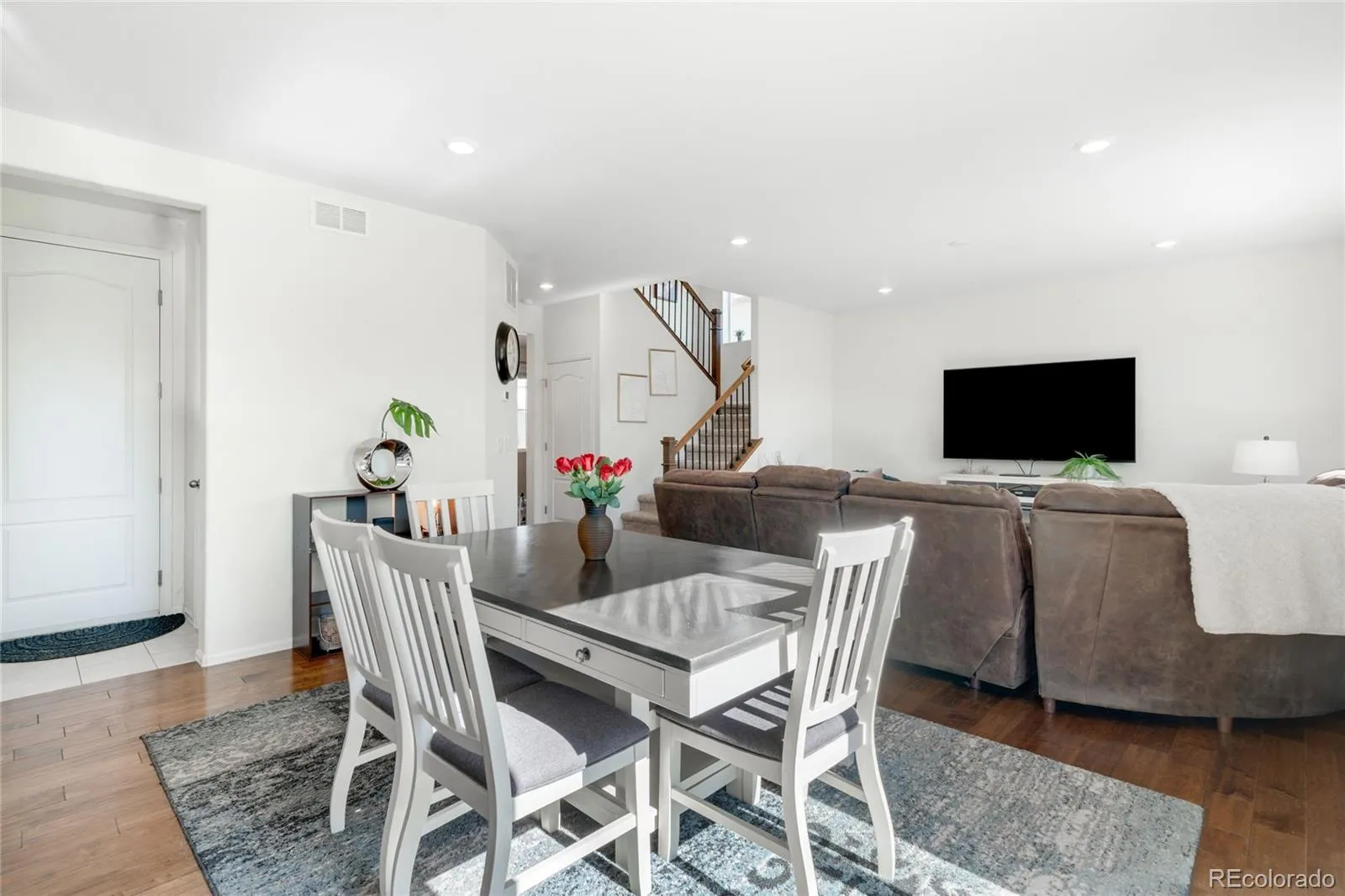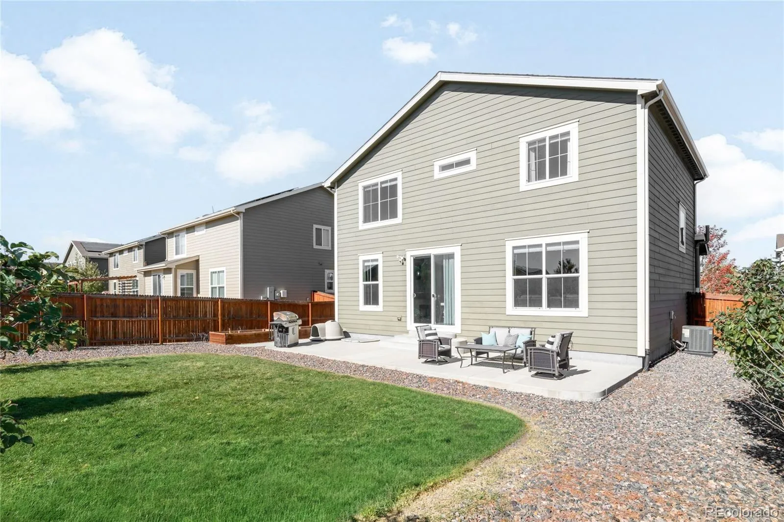Impeccably maintained and move-in ready, this stunning Orchard Farms residence blends modern details with classic design in one of Thornton’s most coveted neighborhoods. Handsome hardwood flooring extends throughout the main level, where an open-concept layout connects the bright living area to a gourmet kitchen adorned with granite countertops, subway tile backsplash, stainless steel appliances, a large island and a walk-in pantry. Three bedrooms await upstairs, including the spacious primary suite featuring a serene bath with a walk-in shower. An oversized laundry room with a washer and dryer set adds convenience. Outside, a large extended patio in a fenced-in backyard offers endless potential for entertaining or relaxing in the Colorado sunshine. Ample storage is found in a two-car attached garage. Additional highlights include solar energy and quick access to I-25, shopping and nearby parks with basketball and tennis courts — the perfect blend of style, sustainability and location.