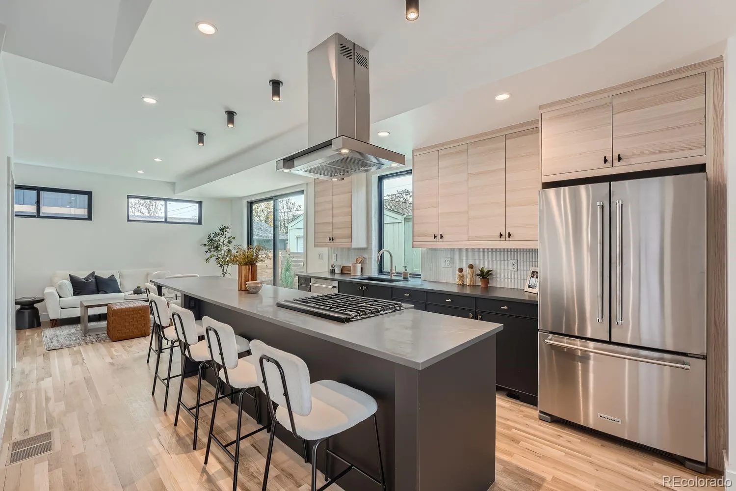 SINGLE FAMILY HOME WITH LOCKOFF BASEMENT IN SUNNYSIDE!! This beautifully crafted residence offers a perfect blend of modern amenities and classic charm. With 3 bedrooms, 4 bathrooms, an office, and a stunning rooftop deck, this property is designed to provide comfort and style. Exterior entrance to the basement has a second living room with bedroom and bath perfect to host a guest and a possibility of a lock off unit at the top of the stairs for the ability to rent the basement out for extra income. The kitchen is equipped with high-end appliances, quartz countertops, and ample storage space. Next to the kitchen is an open concept living area that creates a seamless flow throughout the main level. On the second level the primary bedroom is accompanied with an ensuite bathroom, a Juliet Balcony and walk in closet. The second bedroom is also paired with an en suite bathroom. An office/flex space on the 3rd floor provides great natural light and a roof deck with unobstructed views of downtown. The backyard patio has a gas hookup for a bbq grill or fireplace with an added space for yard activities. Fantastic location and a fantastic home!