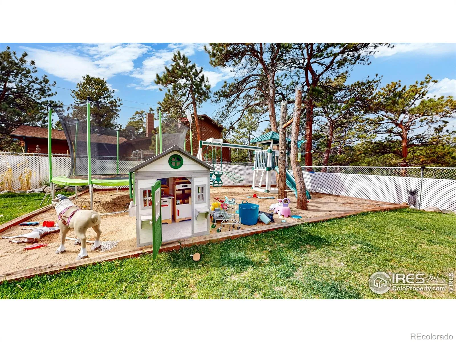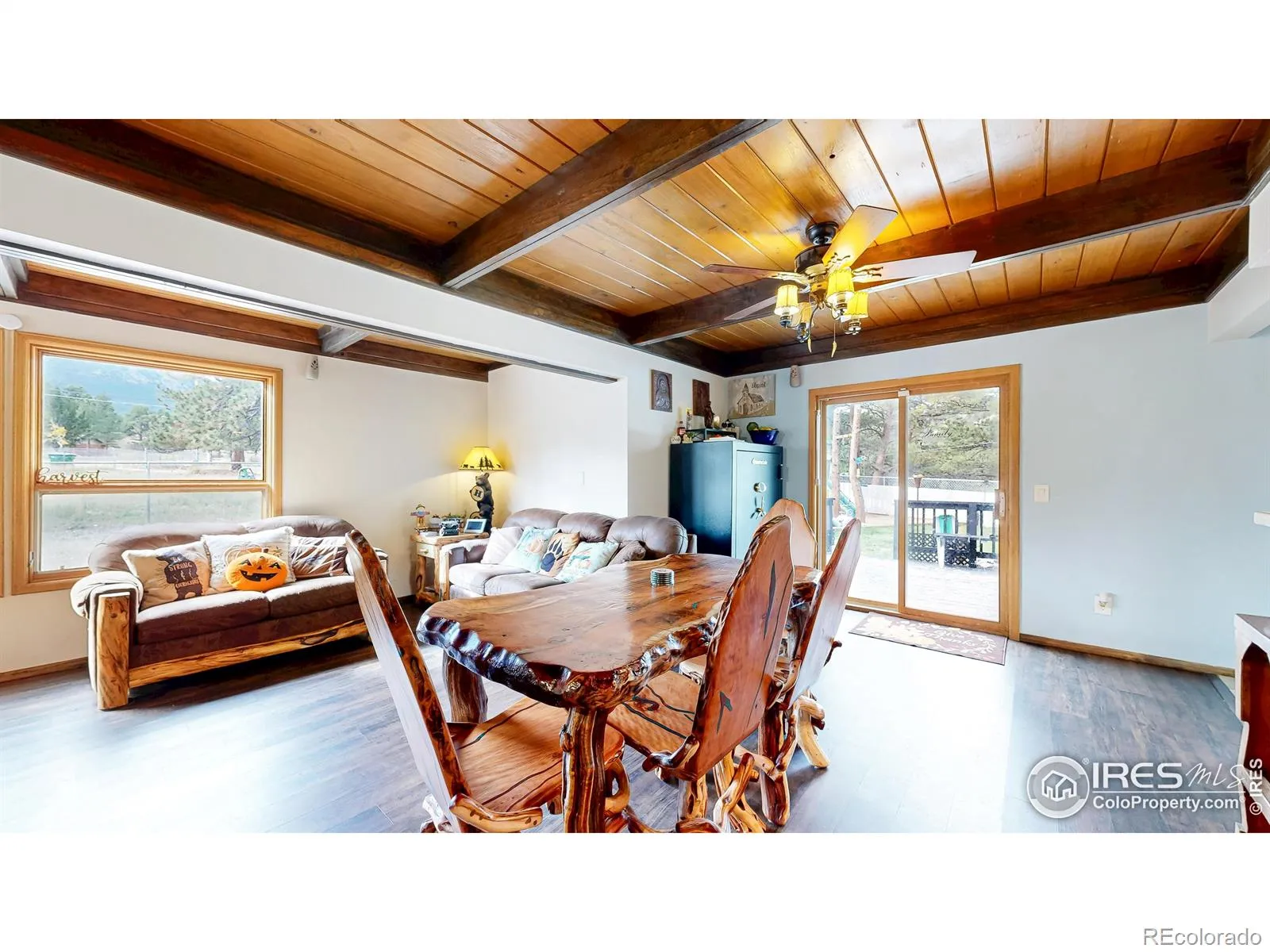 Horses allowed and property is bordered on the West by a seasonal stream. This 1-acre homestead-style property, perfectly situated with easy access to all Estes Park has to offer. This 4-bedroom, 2-bath home features a fully fenced backyard with chain link fencing, ideal for keeping little ones safe. The mini barn has been thoughtfully converted into a she-shed with running water and heat! A fully functional chicken coop is ready for your feathered friends, and the former horse pens, now adapted for “iron horses,” still accommodate equestrian needs. The primary bedroom is a true retreat, complete with a built-in sauna, skylights, walk-in closets, and private access to an updated upper-level bath. Main-level vaulted ceilings with exposed wood beams create a warm, inviting atmosphere, and the natural gas fireplace adds cozy charm. Step out to the spacious back deck and take in the serene mountain trees and striking rock outcroppings. A circular driveway provides ample parking and room to add a garage. With a seasonal stream running through the property, this home offers a rare chance to live life fully in a beautiful setting. Don’t miss the property video to truly appreciate everything this unique homestead has to offer.