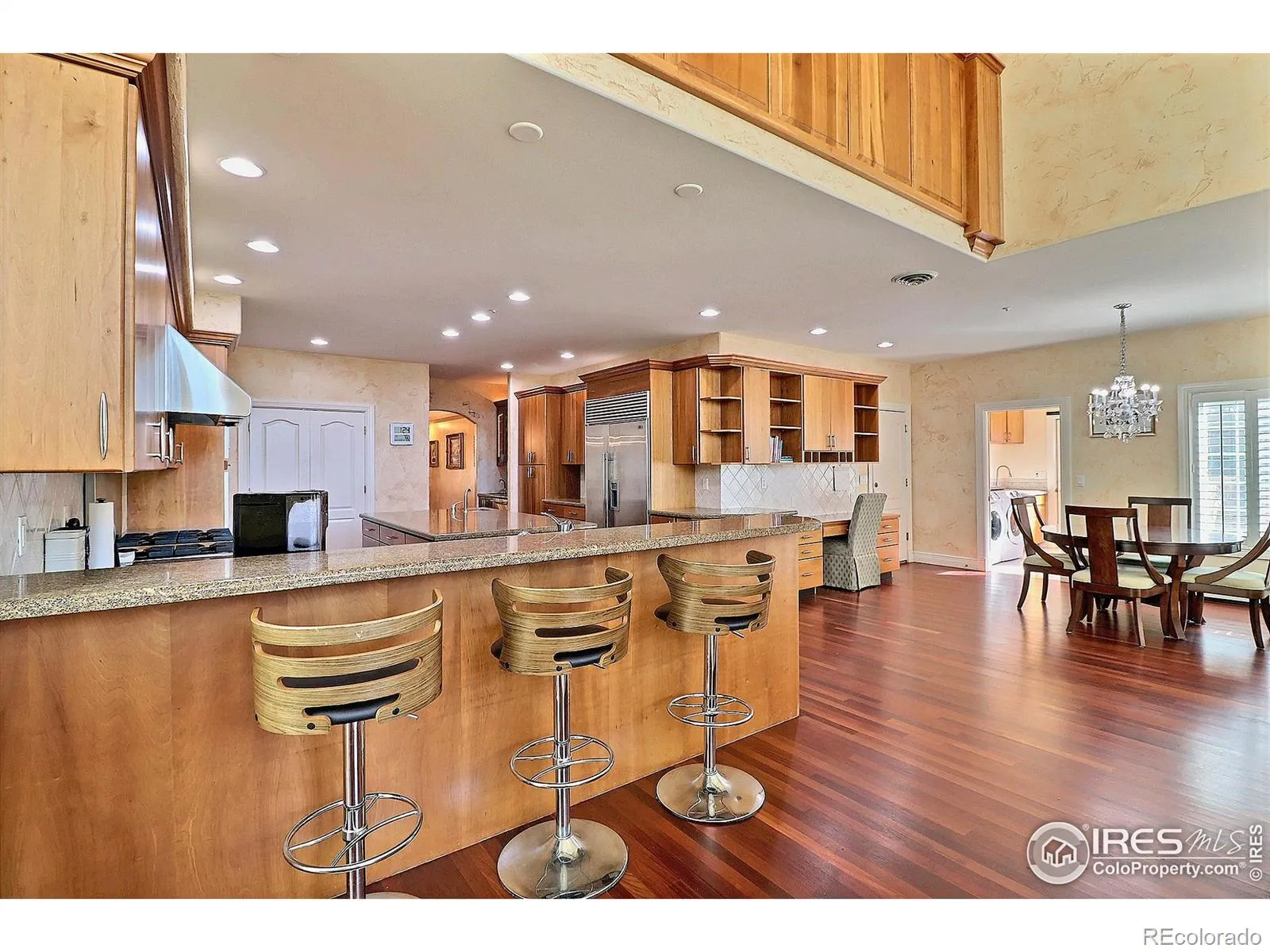Magnificent this home is! Nearly 8000 Sq. Ft., 6 bedrooms, 6 bathrooms and 6 car garage (4 car attached and 2 car detached) resting on over 1 acre. Features an incredible kitchen with granite countertops, a large island and huge pantry, 2 dishwashers, 2 microwaves, 6 burner Viking gas range, sub zero refrigerator, butlers pantry, Brazilian cherry floors throughout the main level, a splendid primary suite with dual walk-in closets, 5-piece primary bath with heated floors, 3 bedrooms, 2 baths on the upper level and a library/loft area, 4 fireplaces. Finished basement with a state of the art theater room and wine cellar. Fantastic 1 acre lot with large patio and built in BBQ Grill. This home is a true masterpiece