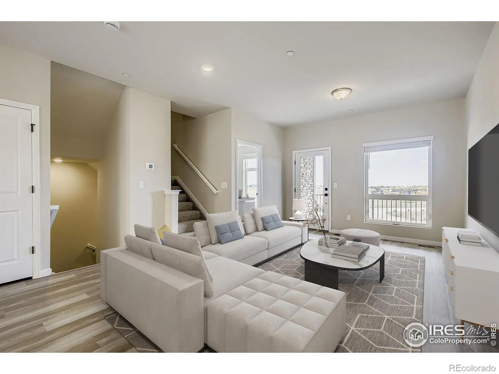 Welcome to a home where light, space, and thoughtful design come together beautifully. On the ground level, a versatile area awaits your imagination – perfect as an exercise room, home office, oversized mudroom, or cozy reading nook – complete with access to a covered patio for peaceful outdoor moments. The heart of the home lives on the second level, where purposefully placed windows flood the open living and dining spaces with natural light year-round. The designer kitchen features a 30″ gas range with a stainless steel hood vent and a generous island that invites conversation and creativity. Step out onto the balcony to enjoy fresh air and sunset views, or settle into the adjacent office for a quiet moment of focus. Oversized windows overlooking the grassy field add a touch of luxury to this office space. Upstairs, the serene primary suite offers a private bath and walk-in closet, joined by two additional bedrooms and a large laundry room. Every inch of this home blends modern design with warmth and intention-a place where everyday life feels effortlessly elevated.