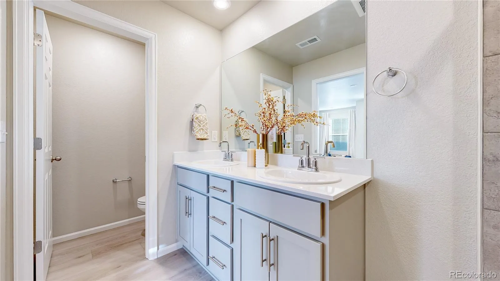 This beautiful 3-bedroom, 3-bath home feels brand new—barely lived in and loaded with thoughtful upgrades. Designed with energy efficiency in mind, this home features the “Fresh New” modern finishes, LED lighting, and kitchen cabinet pullouts that make everyday living a breeze. Step inside to an inviting open floorplan with 9′ ceilings, an eat-in kitchen showcasing Quartz countertops, stainless steel appliances, gas range, and sleek finishes throughout. A bonus office space offers flexibility for remote work or creative projects. Upstairs, the spacious master suite impresses with a giant walk-in closet and a luxurious private bath. The second-floor laundry room adds convenience for today’s modern lifestyle. Enjoy true turn-key living—all window coverings, landscaping, garage storage, and a radon mitigation system are already in place. The unfinished basement with plumbing rough-ins is ready for your personal design. An advanced SafeStreet home security system adds peace of mind. Perfectly situated just one block from Pioneer Park with a lake and walking trail, and a short stroll to charming Old Town Berthoud. A new community pool opens next year, and you’re only minutes from Carter Lake and the PGA-level TPC Golf Course. Transferable Meritage warranties included—move right in and enjoy modern comfort, convenience, and community from day one.