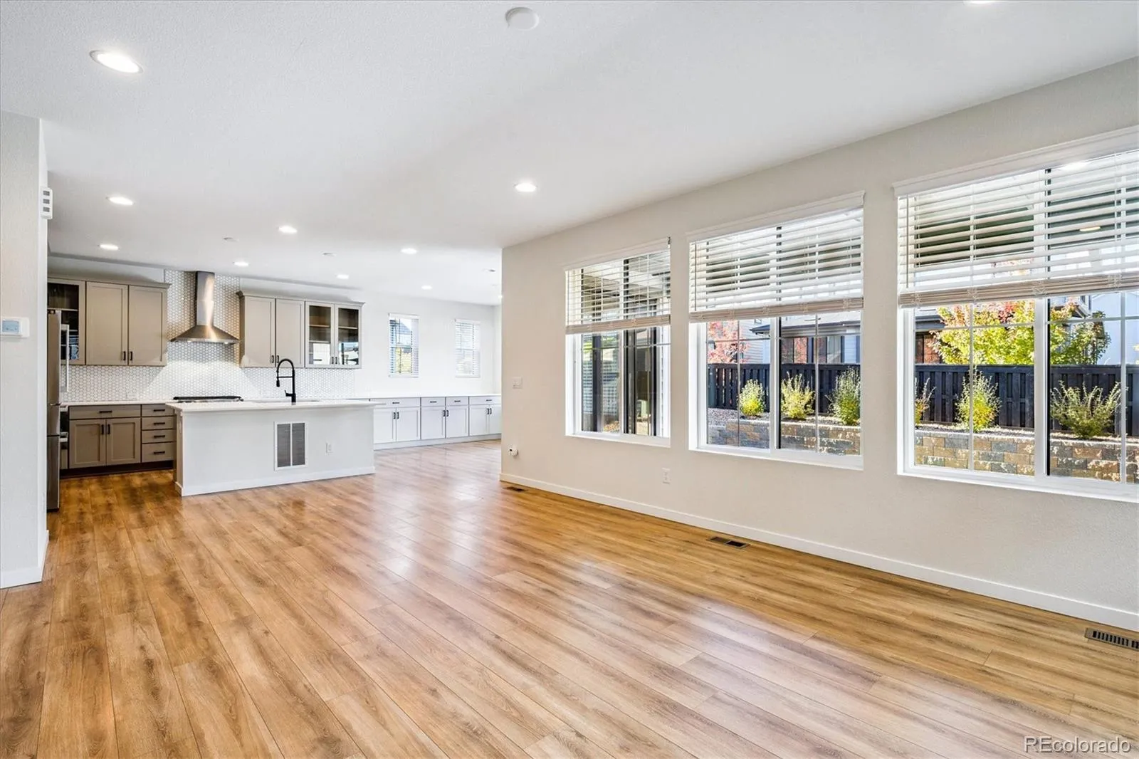 Lovely three year old home in Solstice, A Shea Parade of Homes community. This is one of the most popular areas off Titan Road with easy access to Littleton and the greater Denver area. Within walking distance to Chatfield Reservoir- excellent outdoor trails, hiking, easy access to parks and a prominent biking community. Enjoy the popular Melody model – with 4 bedrooms and 4 bathrooms on the upper level. Updated, brand new carpeting on the upper level and staircase. The upper level features a bonus loft area for additional space with high ceilings and space in-between the bedrooms. The guest suite includes its own bathroom, A second full bathroom is in-between the third and fourth bedrooms. The primary suite has a five piece bath, plantation shutters and generous walk in closet with double sinks. The upper level laundry room includes a Whirlpool washer and dryer with utility sink and cabinets. You will love the main level open floor plan. Enter through the front door to a handy coat closet and half guest bathroom. Down the entrance hall is the formal dining room with custom barn door. The great room invites you to enjoy the large living room space with fully tiled fireplace. Lower level flooring is upgraded vinyl flooring. Enjoy your large kitchen space , quartz kitchen counters and backsplash. The lower kitchen cabinets feature soft close doors and roll out shelving. The kitchen includes a pantry, Stainless GAS Kitchen Aid Stove ,Stainless Steel Bosch refrigerator. under cabinet Microwave, heavy duty range hood, sink disposal and updated faucet The breakfast nook area features built in cabinets for extra storage- an added upgrade. The large patio doors connect to the private backyard. Additional updates include a fully finished garage, a covered back patio and finished yard with retaining wall and fences. Sprinklers front and back. Enjoy the best of Solstice. Wonderful community with excellent amenities. Pet friendly!