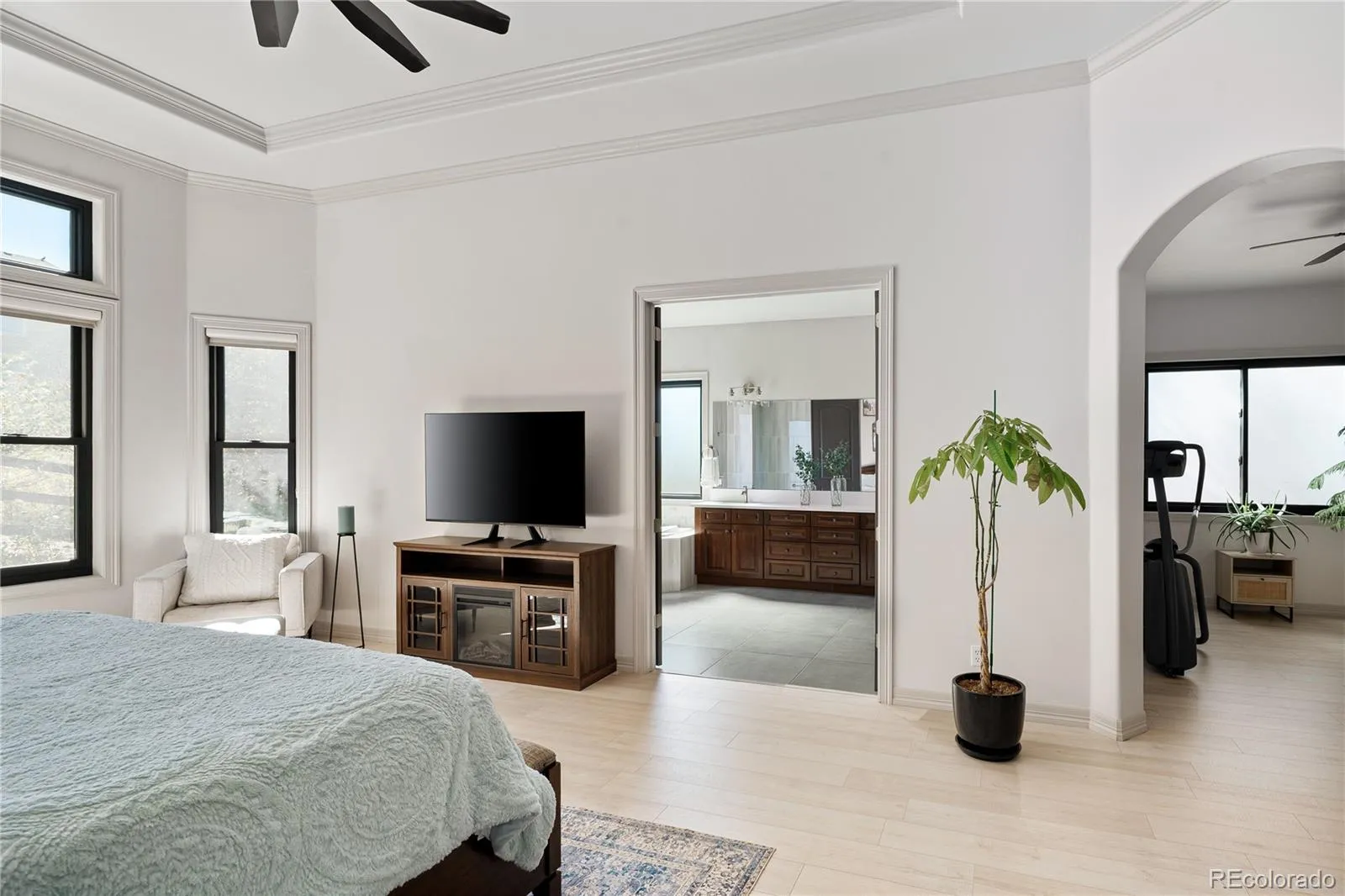 A third main-level bedroom also offers a private ensuite bath. The finished basement expands your living space with a fourth bedroom, game room, custom wet bar (with refrigerator, dishwasher, and microwave), home gym, and a spa-inspired bath featuring a massive steam shower with natural stone detailing.