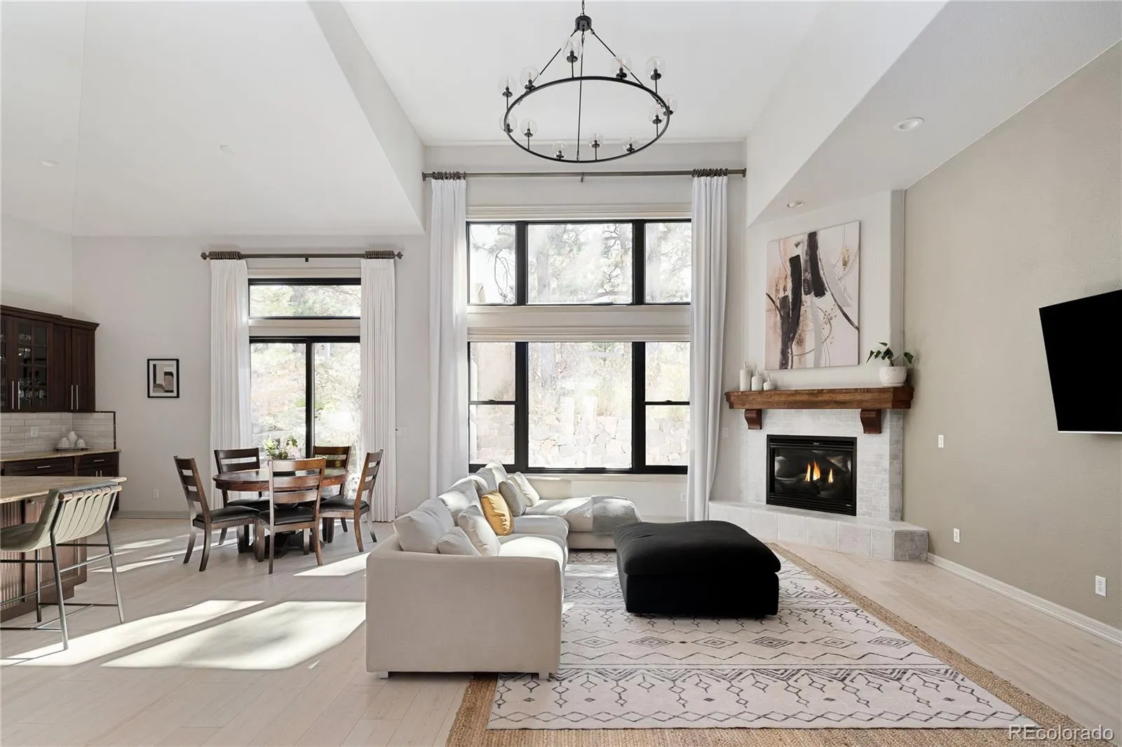 Step inside to soaring ceilings accented with rich stained wood, creating an immediate sense of grandeur. Surrounded by majestic pine trees and backing to a serene greenbelt, this property offers both privacy and convenience—just minutes from shopping, dining, and downtown Parker.